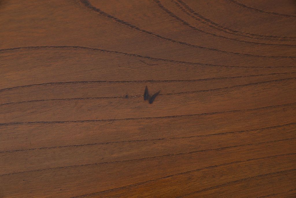 ラフジュ工房> テーブル> サイドテーブル > アンティーク家具 和製アンティーク 天板一枚板 ケヤキ材の木目が魅力的な鉄脚ローテーブル(サイドテーブル、カフェテーブル)