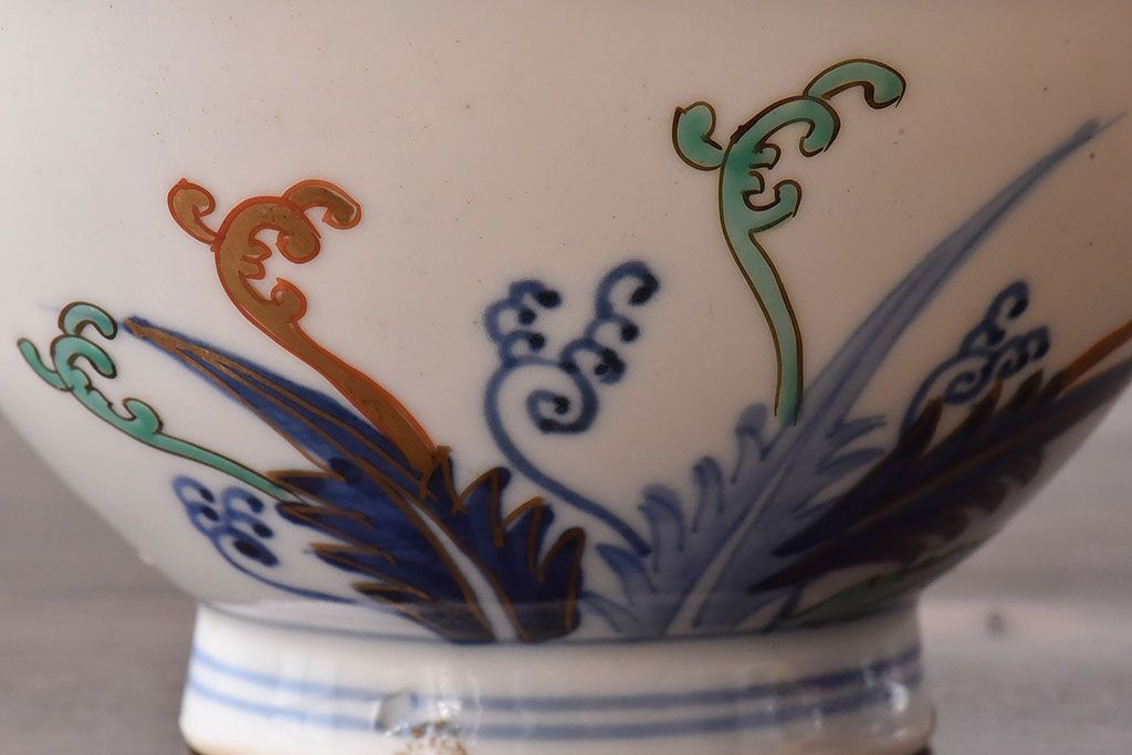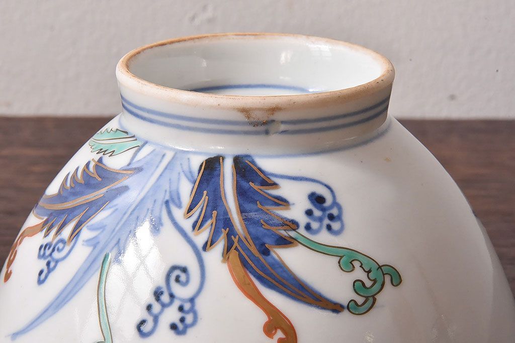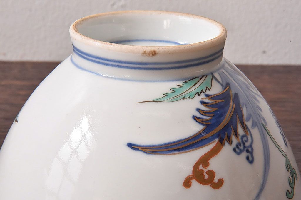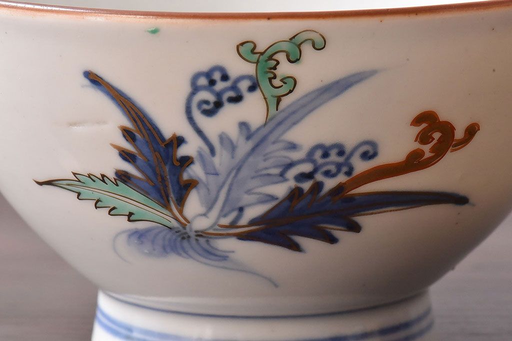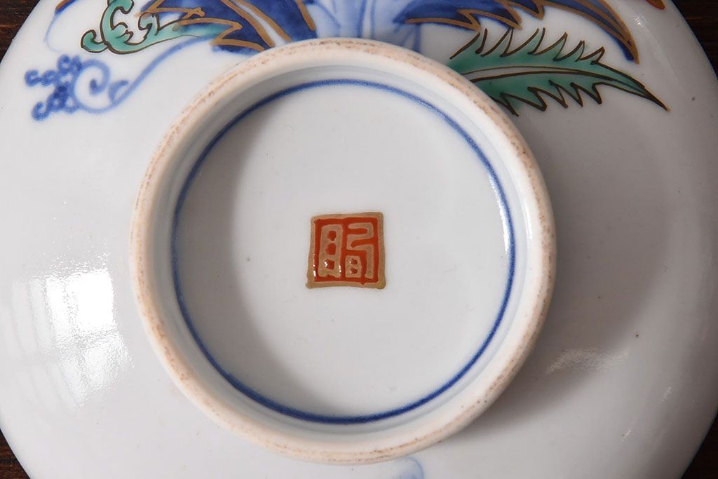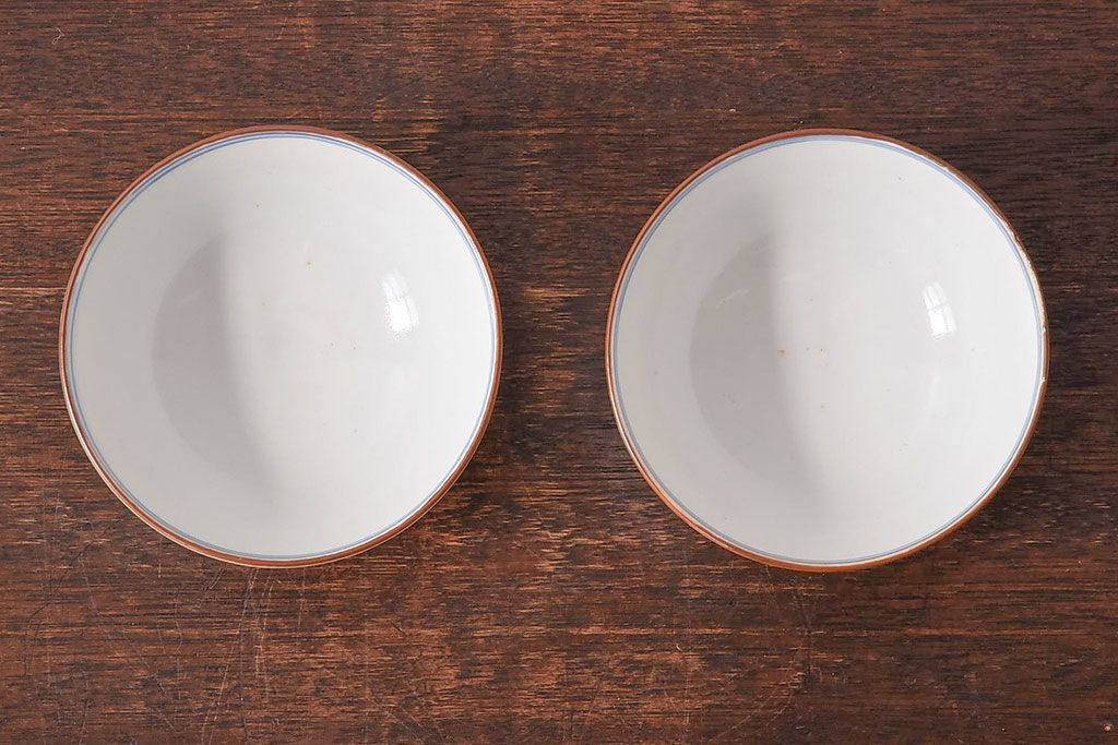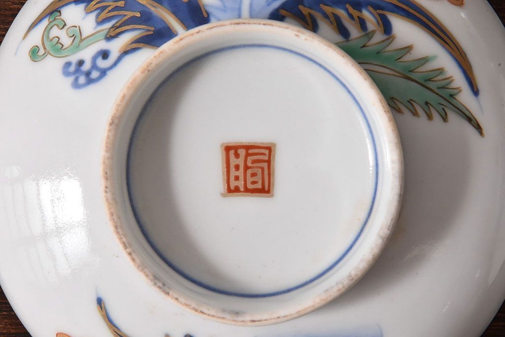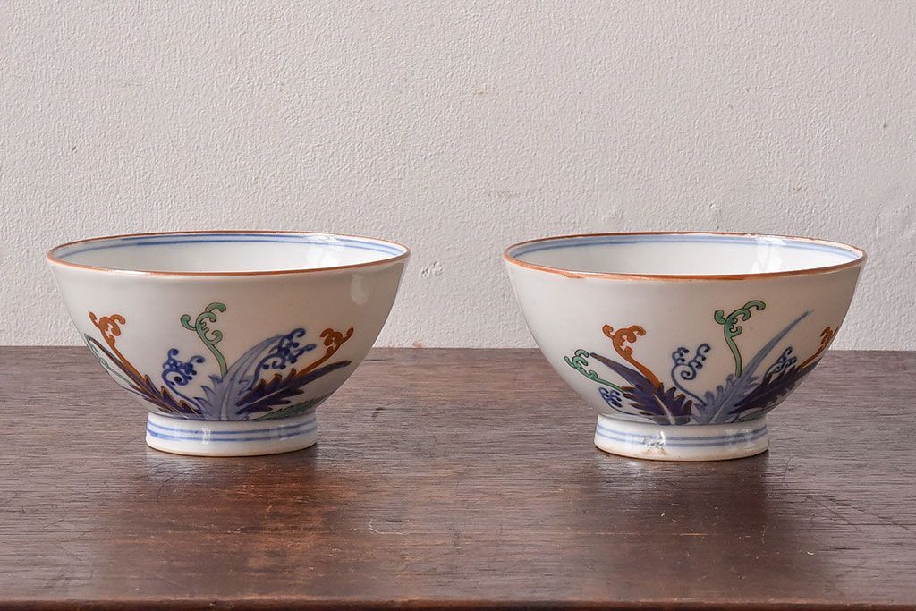 アンティーク雑貨 和製アンティーク 色絵 蓋付き茶碗2客セット(1)