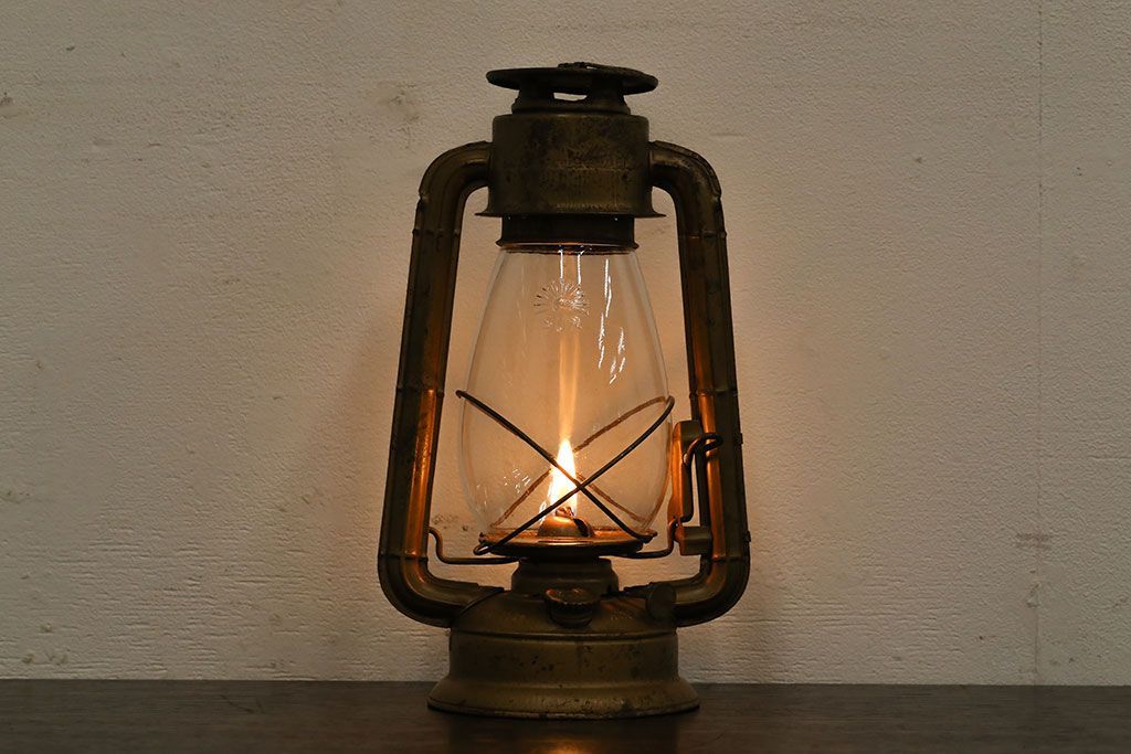 アンティーク雑貨 昭和レトロ 日本製 味わい深い風合いのオイルランプ(照明、ディスプレイ雑貨)