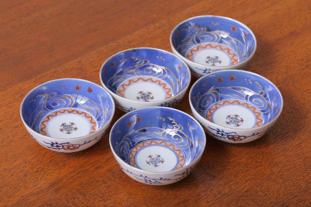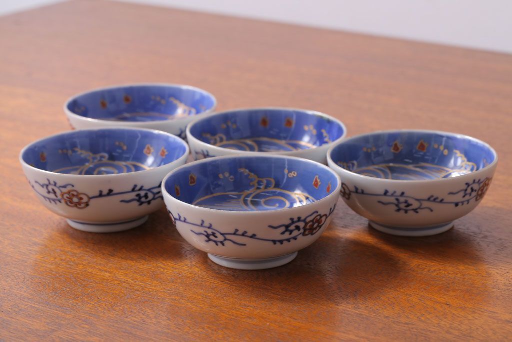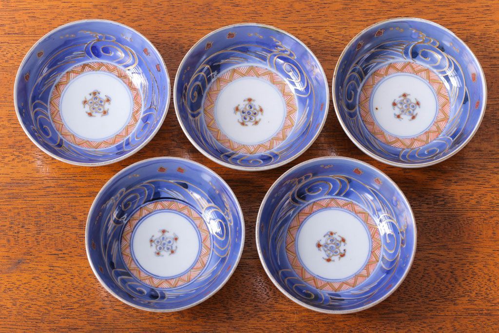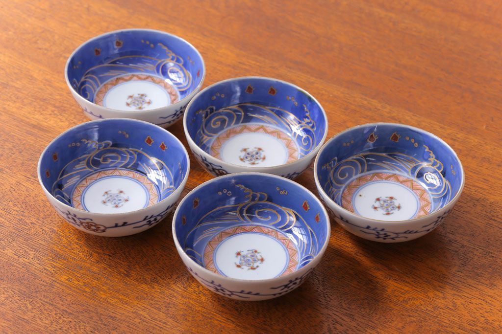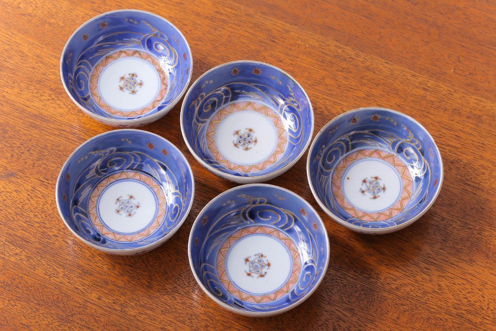 アンティーク雑貨 アンティーク 江戸明治 波千鳥の図・向付5客(伊万里)(1)