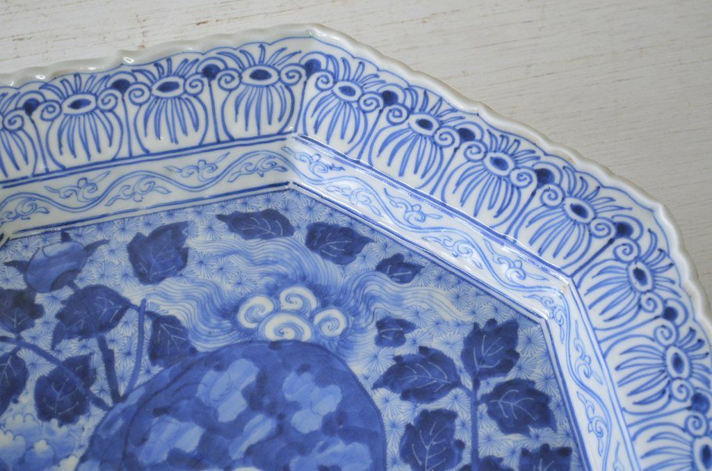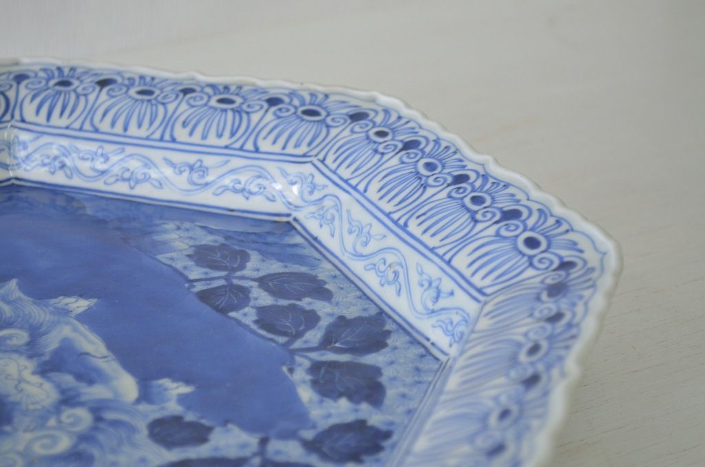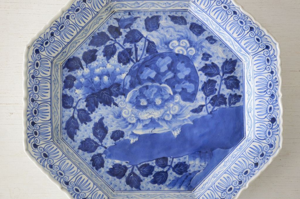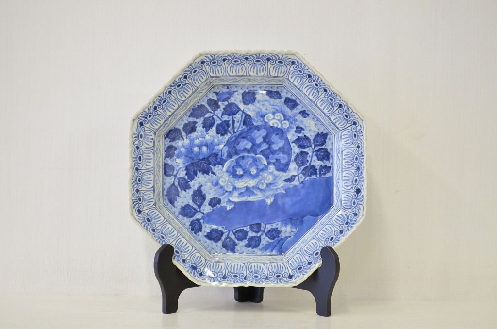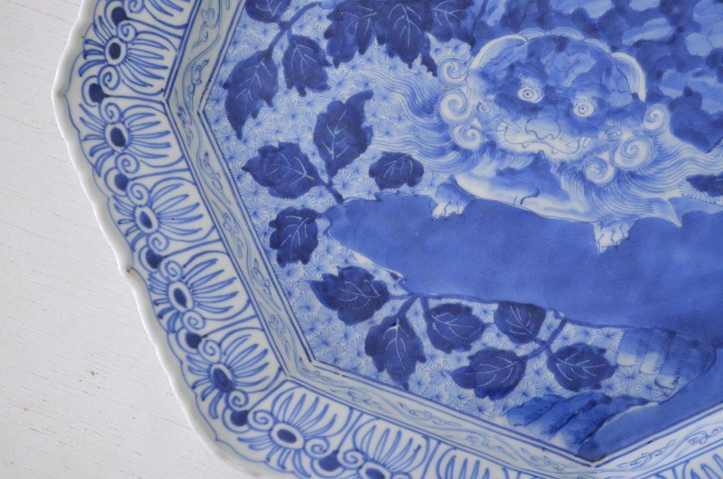 幕末明治期!獅子の図 八角 アンティーク大皿(和食器)