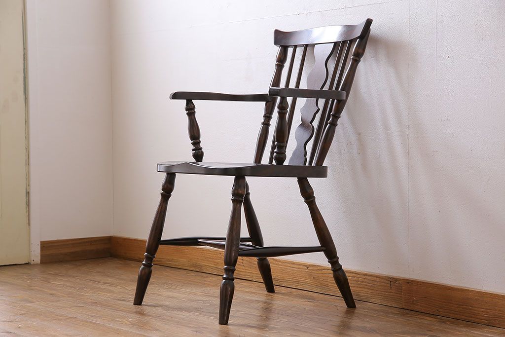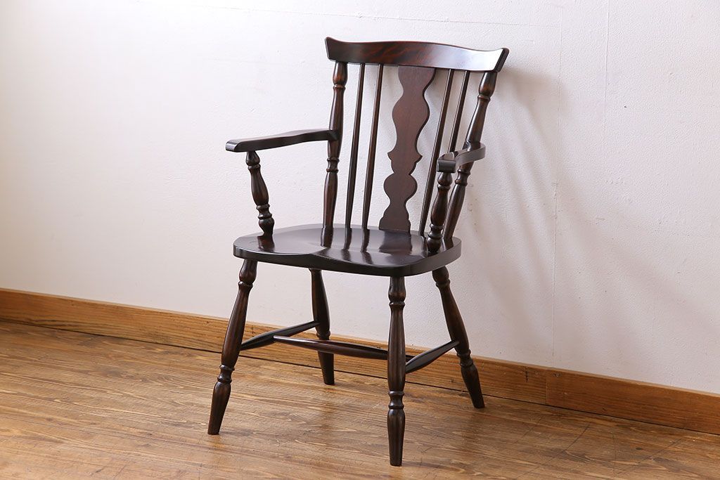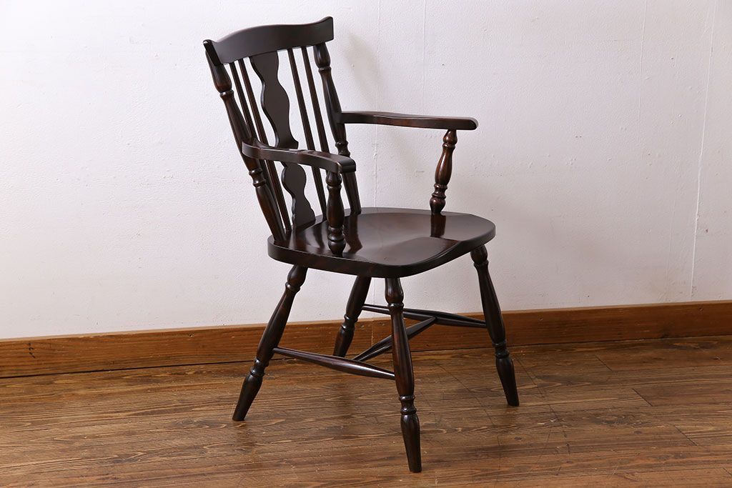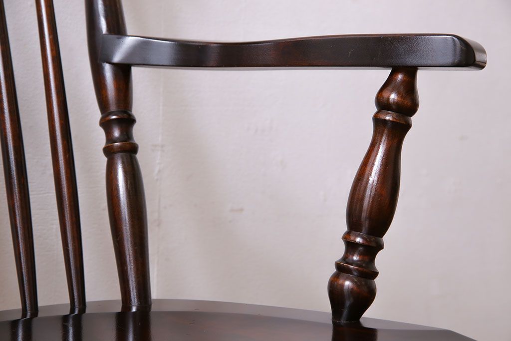 中古 北海道民芸家具 絶版品 シックで品のあるデザインのアームチェア(椅子、ダイニングチェア)です。