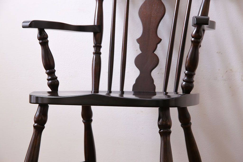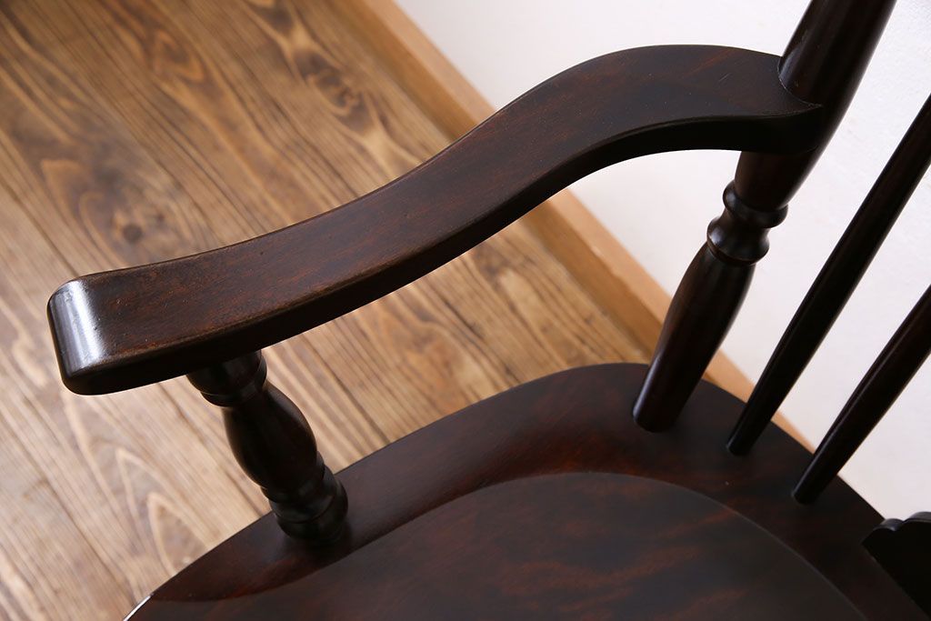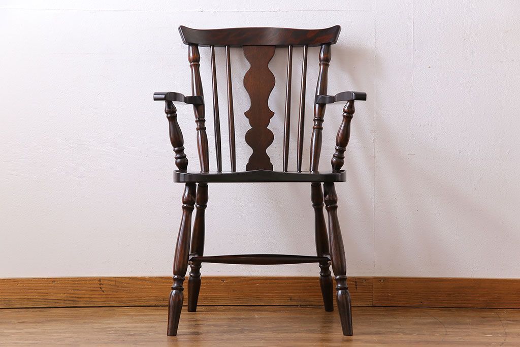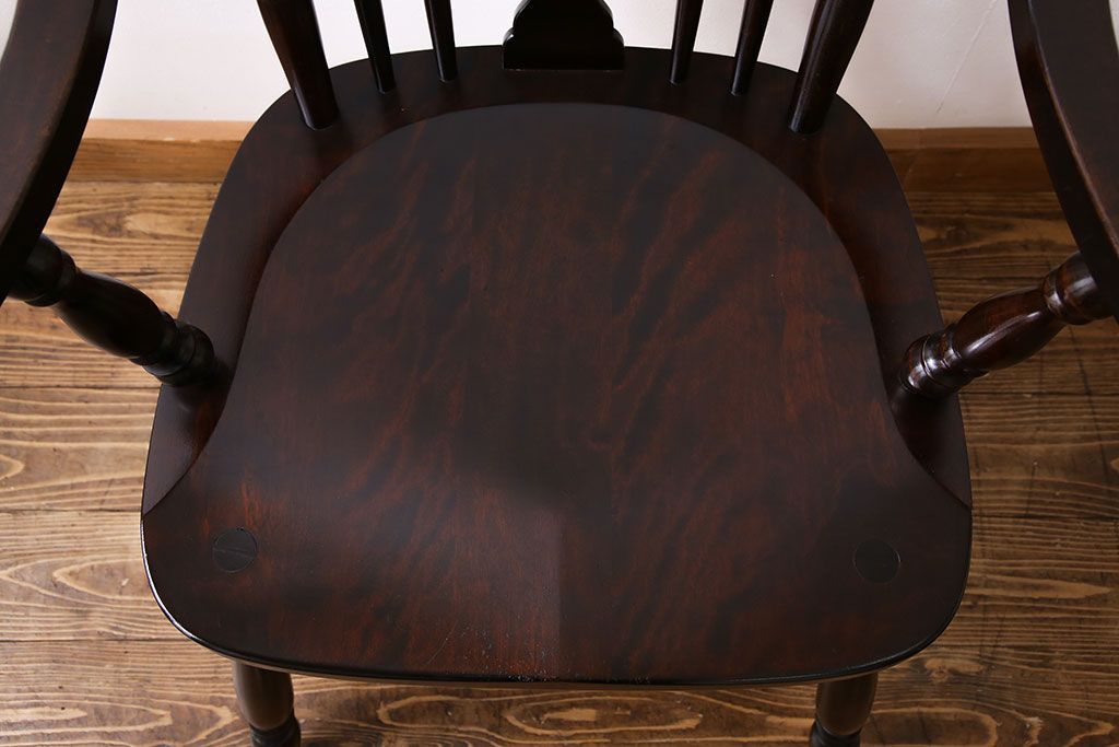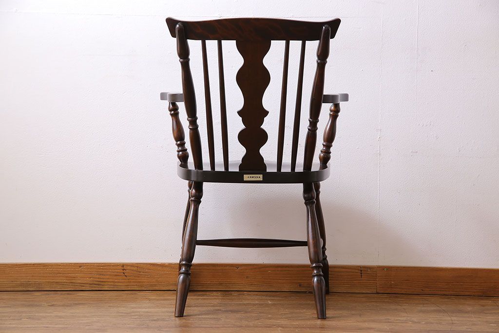 中古 北海道民芸家具 絶版品 シックで品のあるデザインのアームチェア(椅子、ダイニングチェア)です。