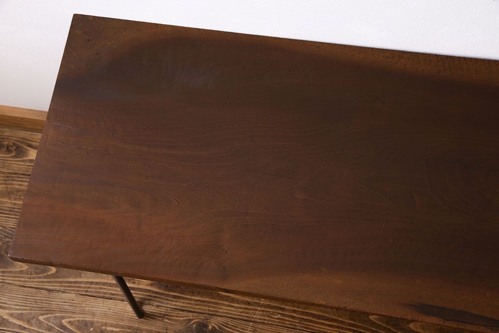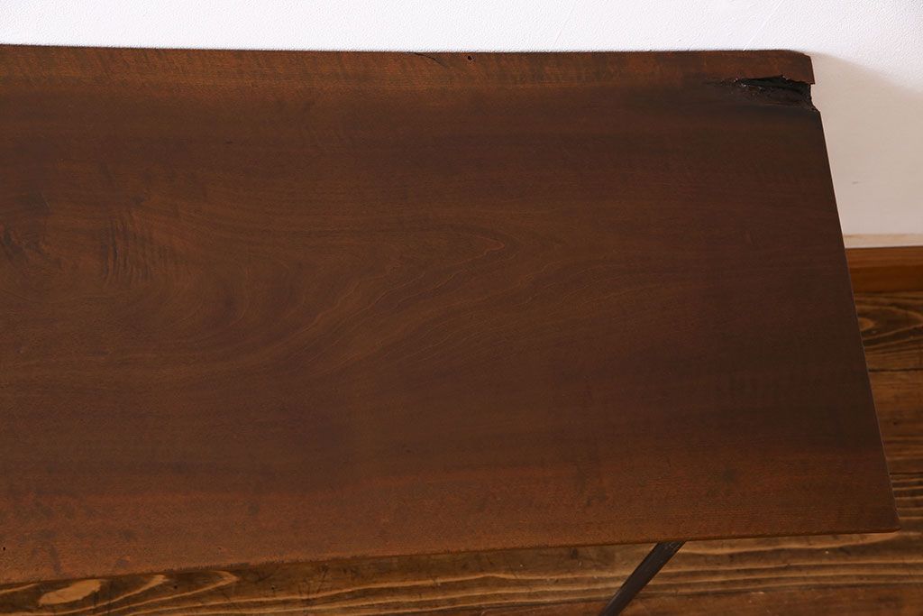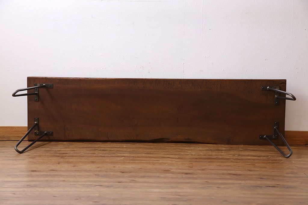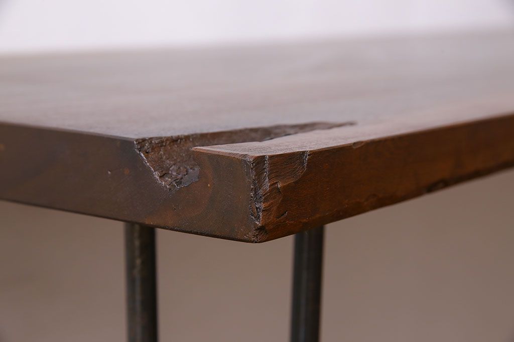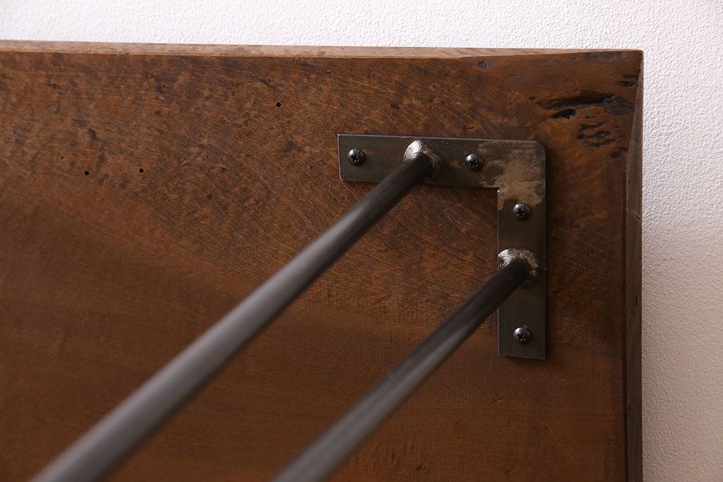 アンティーク家具 和製アンティーク 古い朴ノ木材の鉄脚ローテーブル(飾り台)