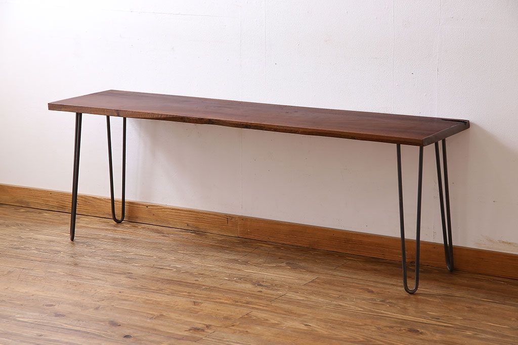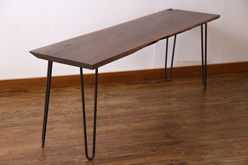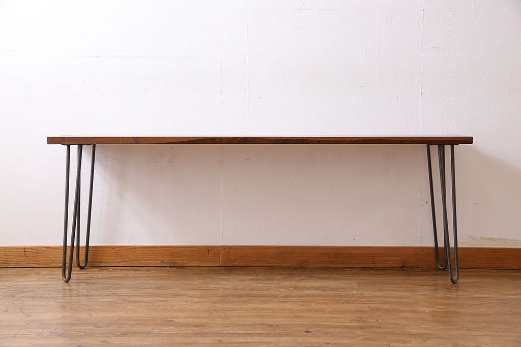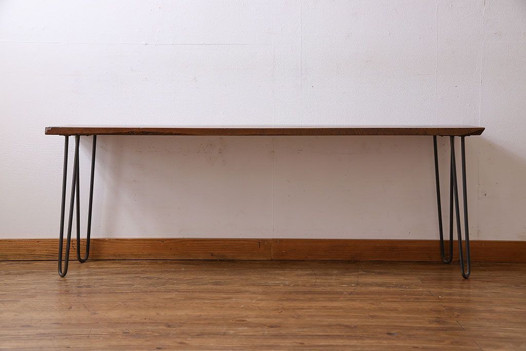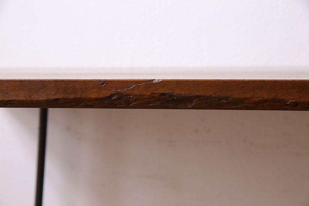 アンティーク家具 和製アンティーク 古い朴ノ木材の鉄脚ローテーブル(飾り台)