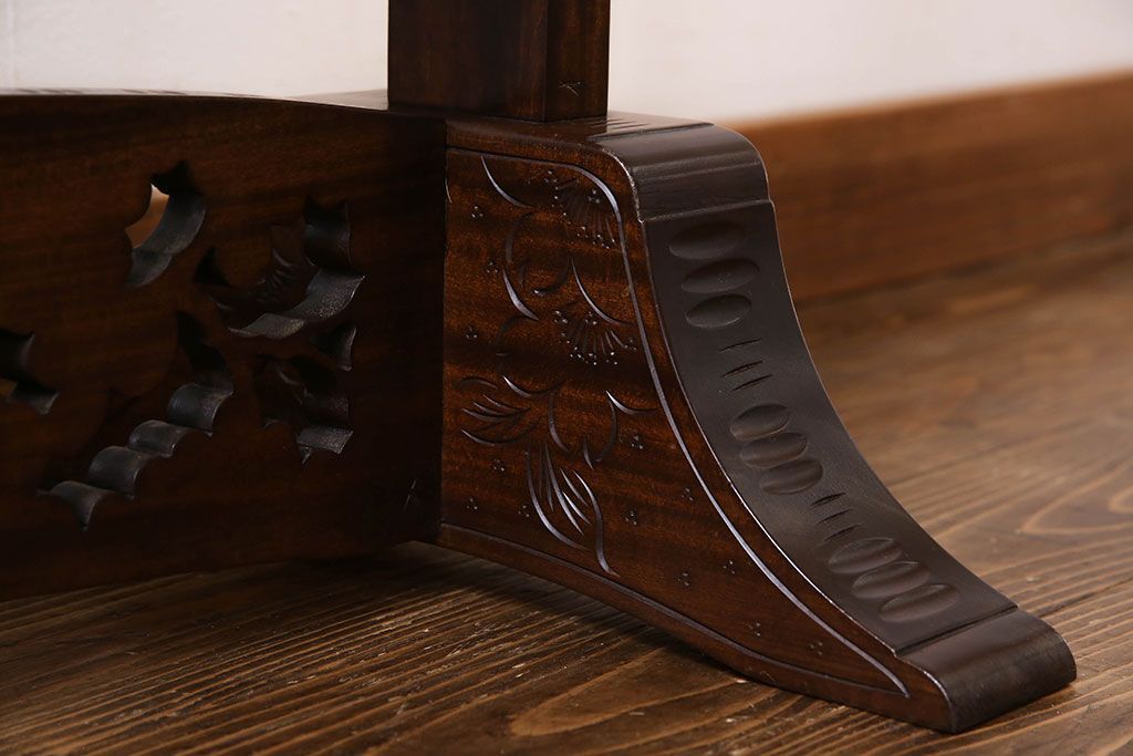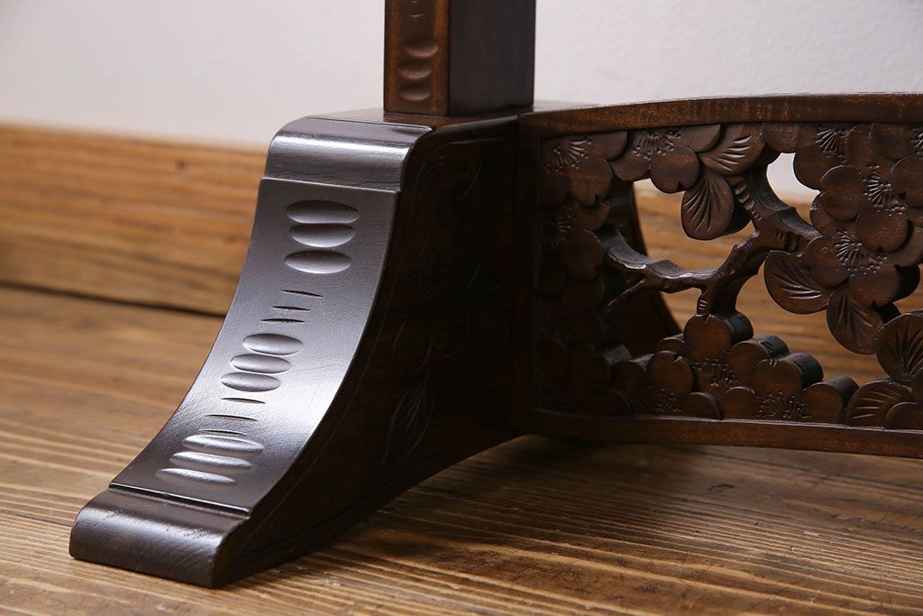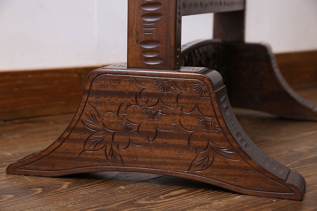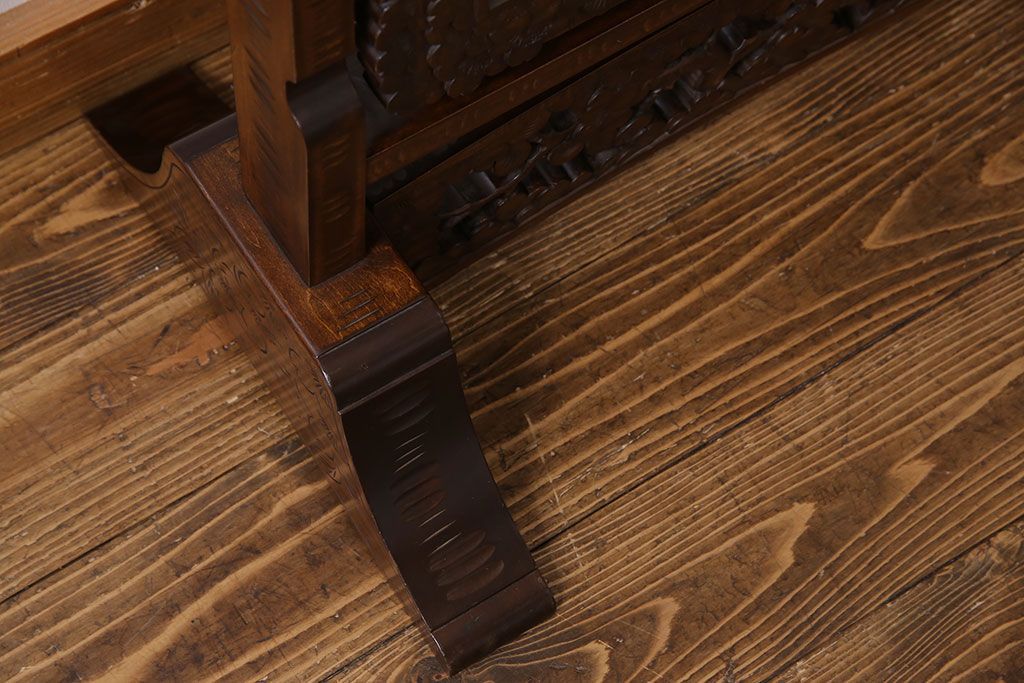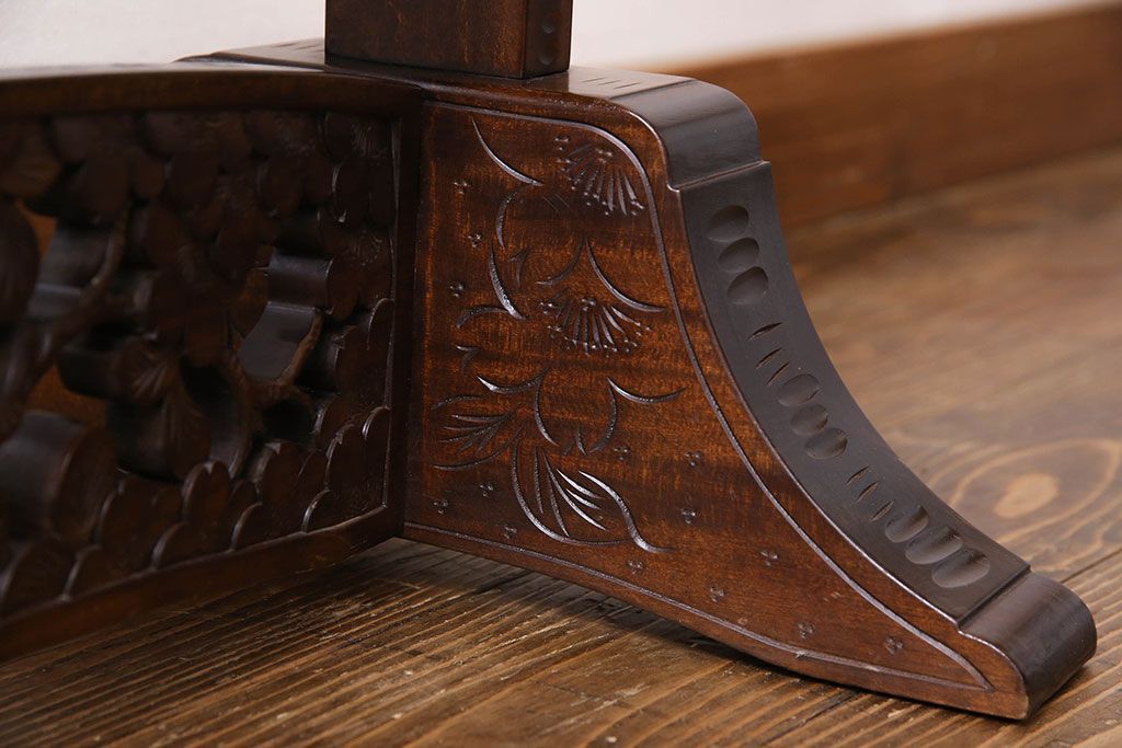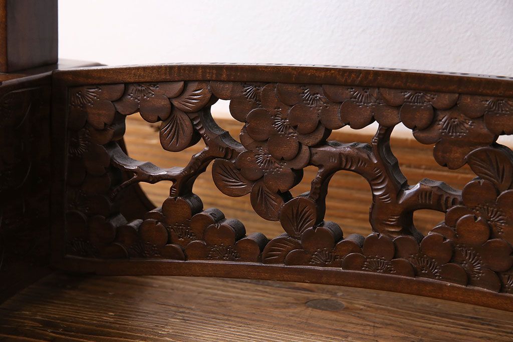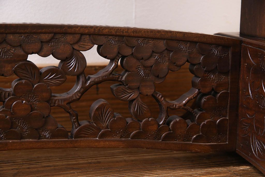 民芸家具 > アンティーク雑貨 中古 伝統工芸 軽井沢彫り 桜 彫刻が目を引く姿見(鏡、ミラー)
