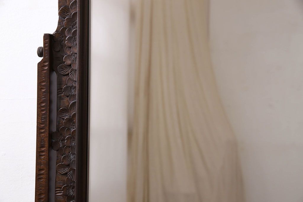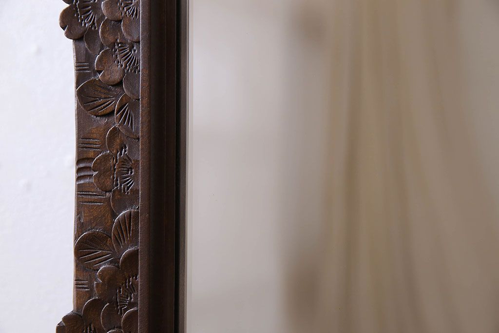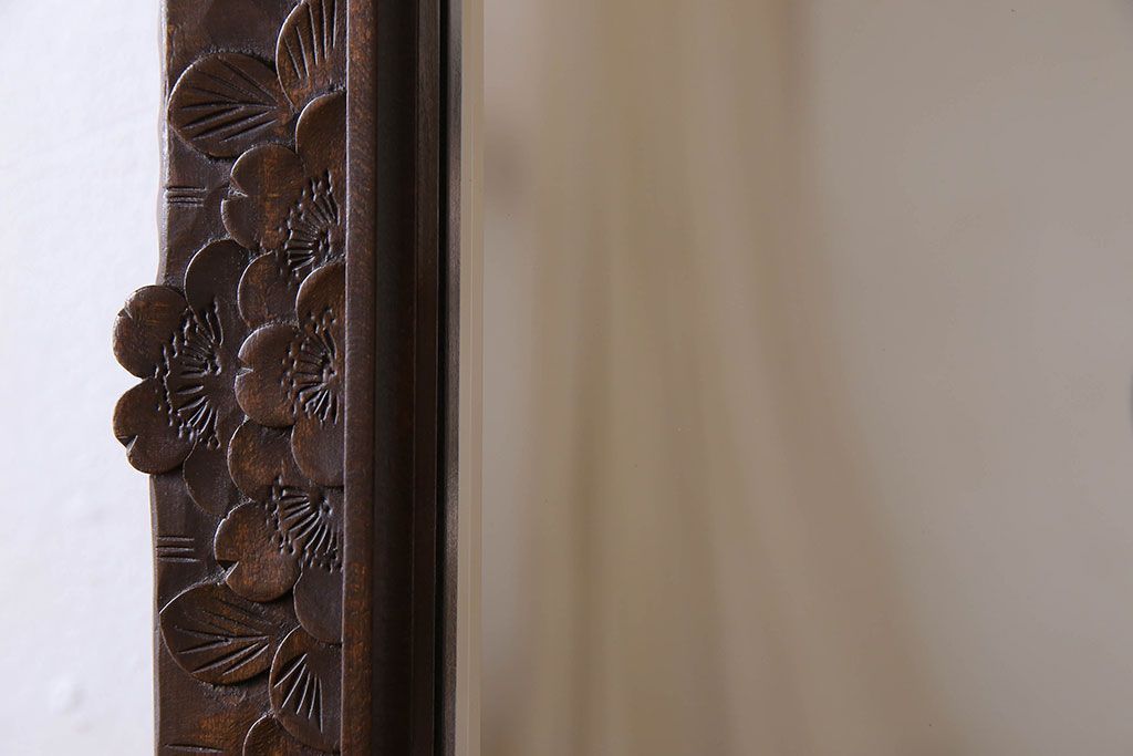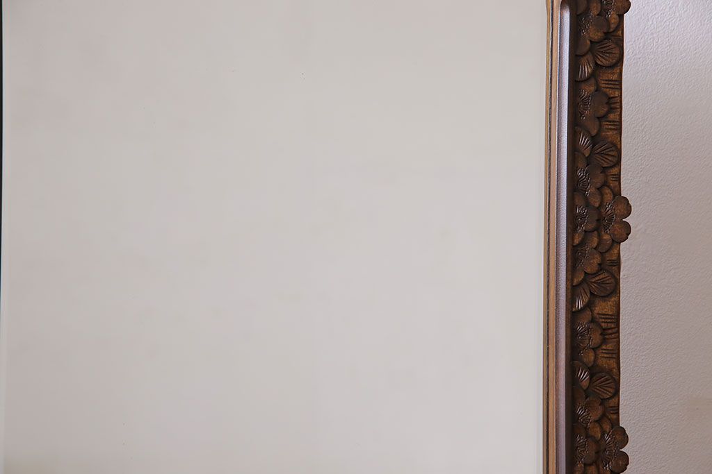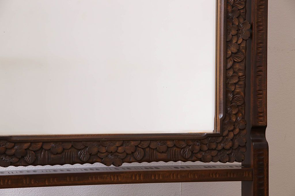鏡> 姿見 > アンティーク雑貨 中古 伝統工芸 軽井沢彫り 桜 彫刻が目を引く姿見(鏡、ミラー)