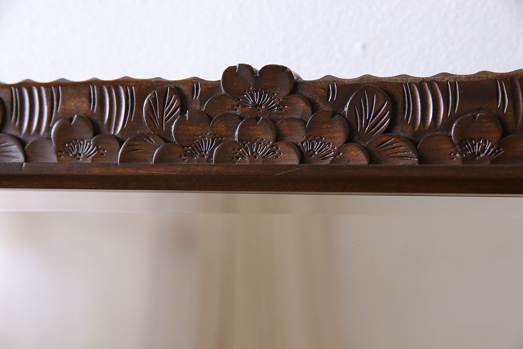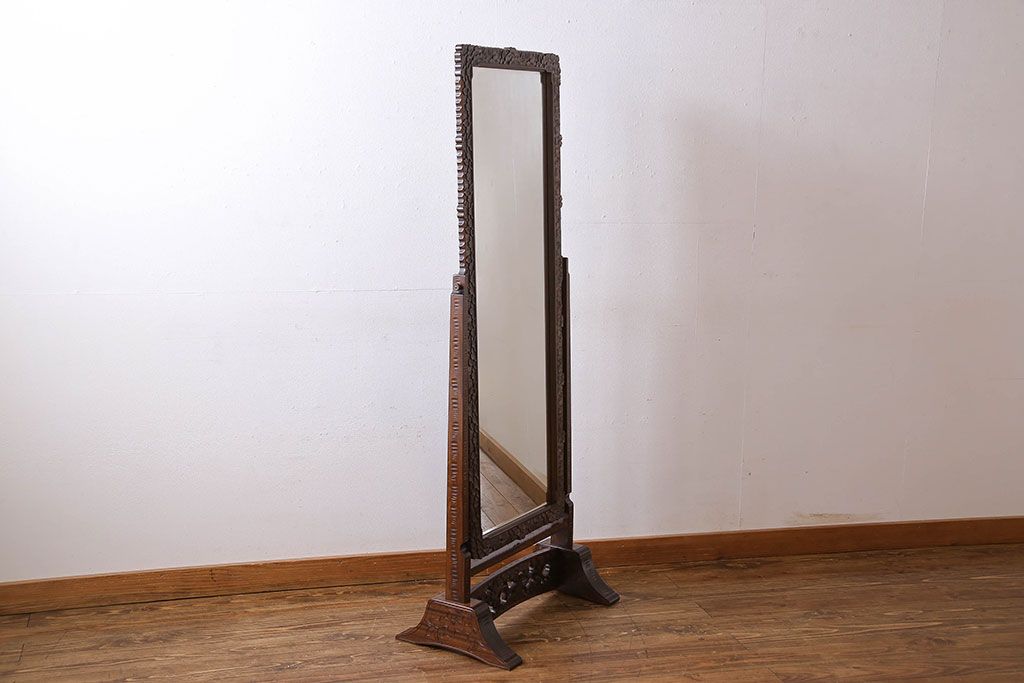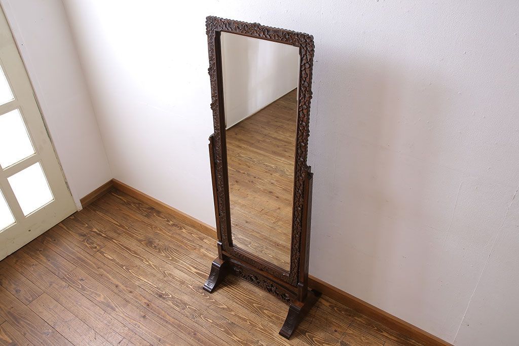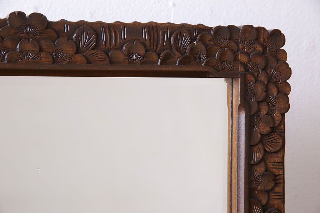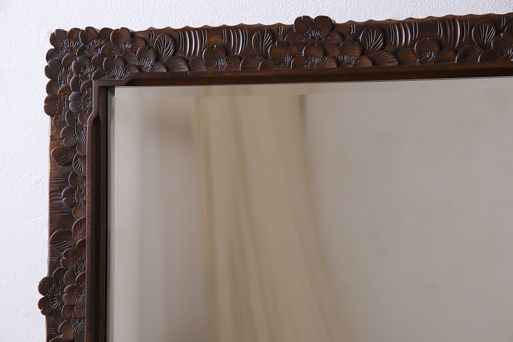鏡> 姿見 > アンティーク雑貨 中古 伝統工芸 軽井沢彫り 桜 彫刻が目を引く姿見(鏡、ミラー)