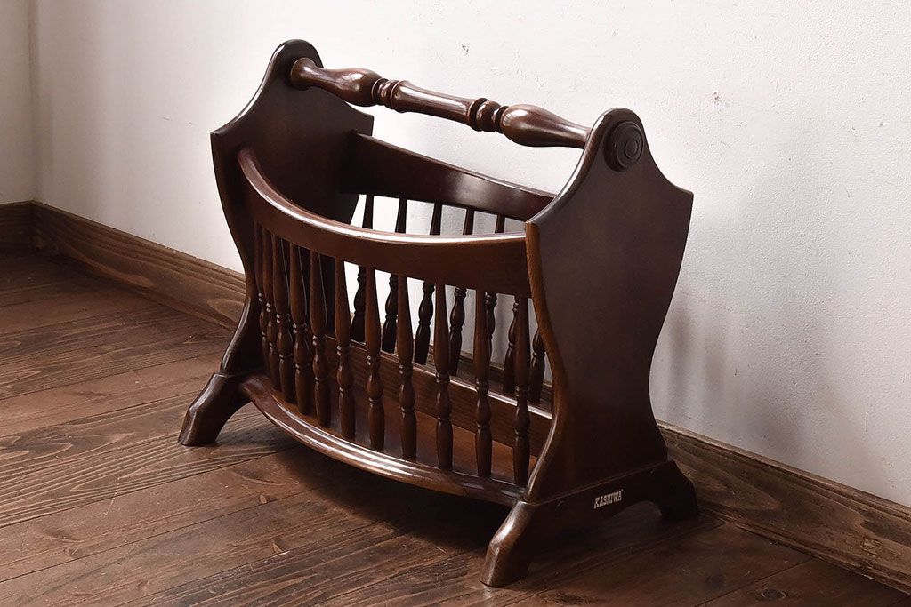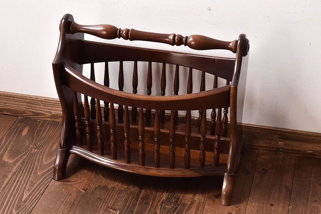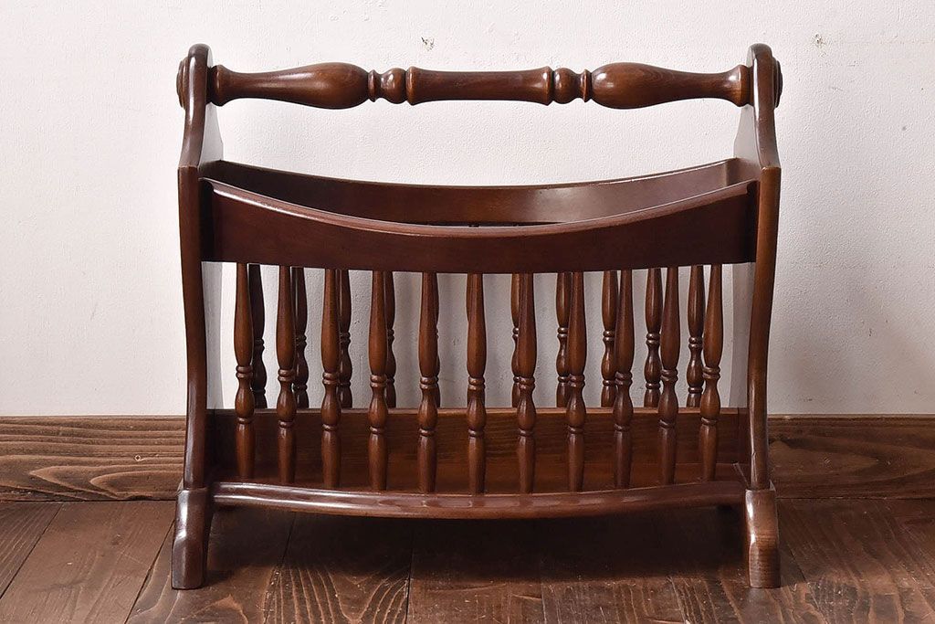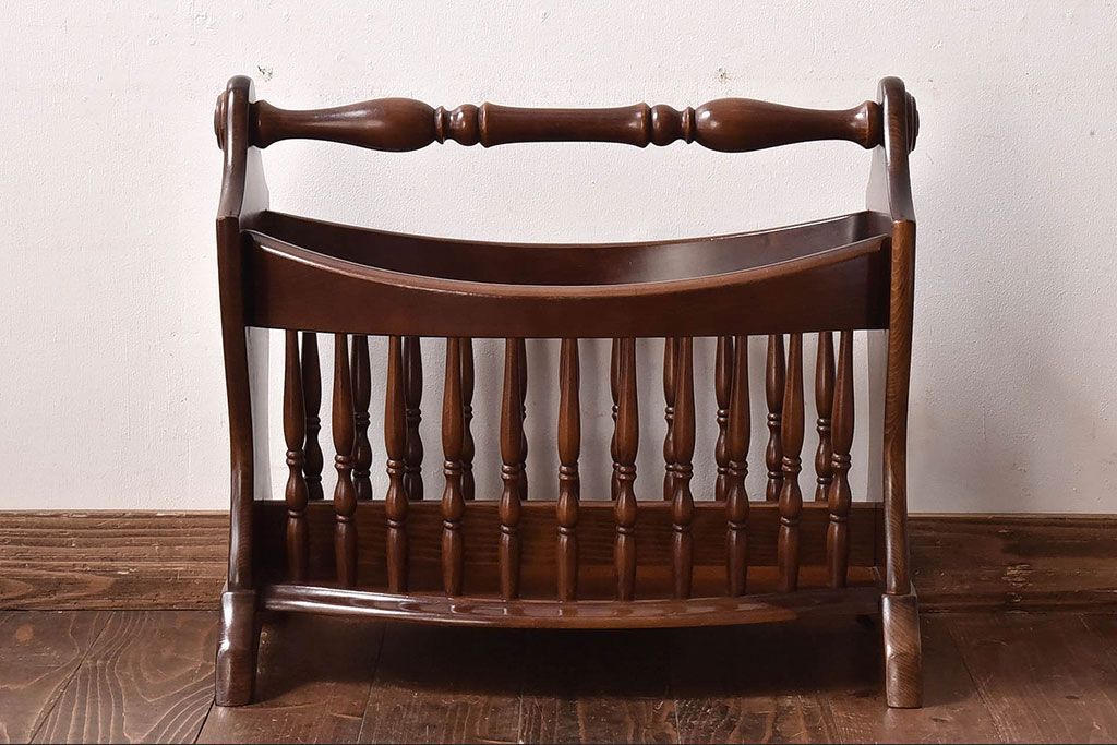 ラフジュ工房> 小物収納・トランク > アンティーク雑貨 中古 柏木工(KASHIWA) 凝ったデザインが印象的なマガジンラック