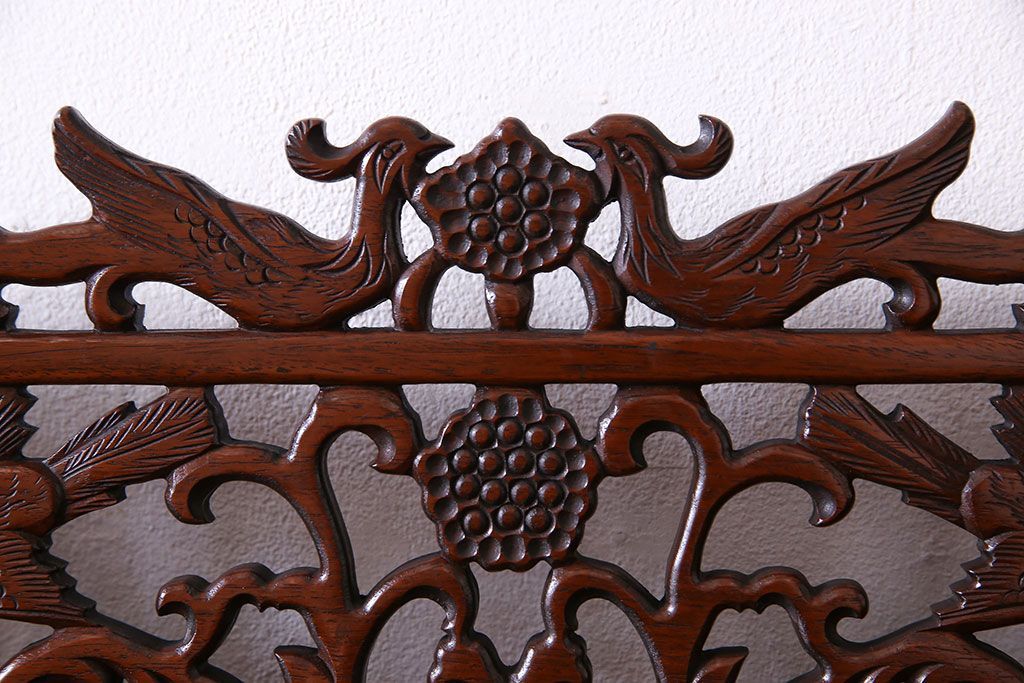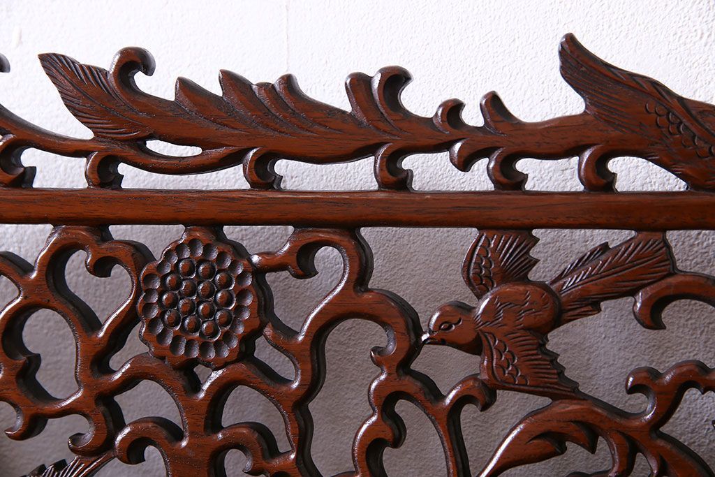 ラフジュ工房> キャビネット・戸棚> サイドキャビネット > 中古 民芸家具 唐木材(花梨材・カリン材)使用!美しい彫刻が目を惹く大振りなサイドボード(キャビネット、飾り棚)(定価約160万円)