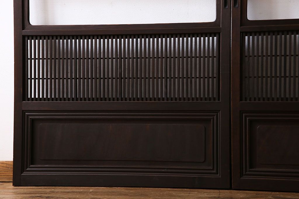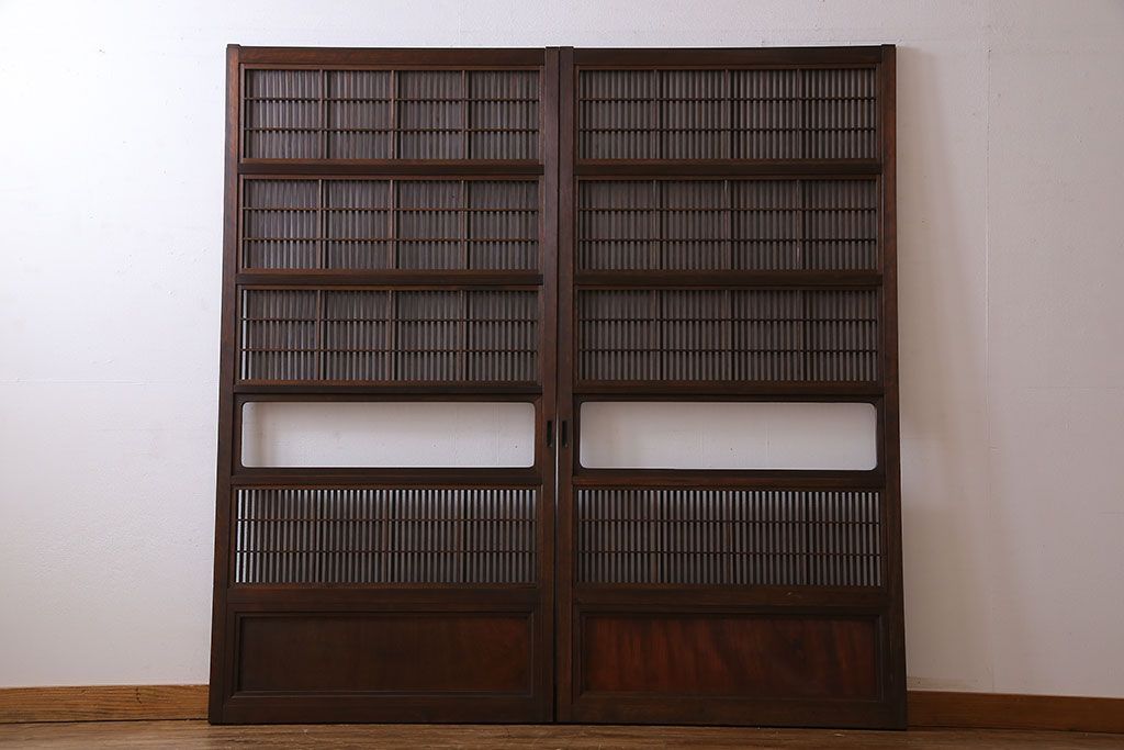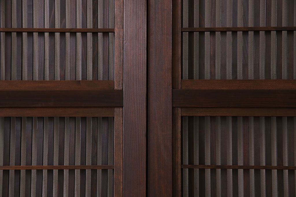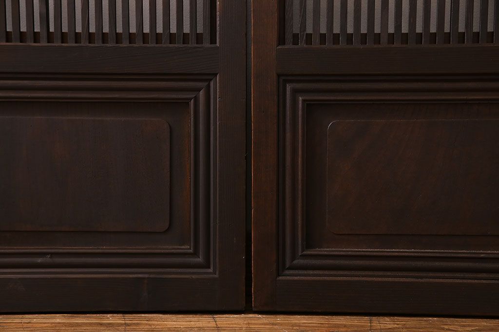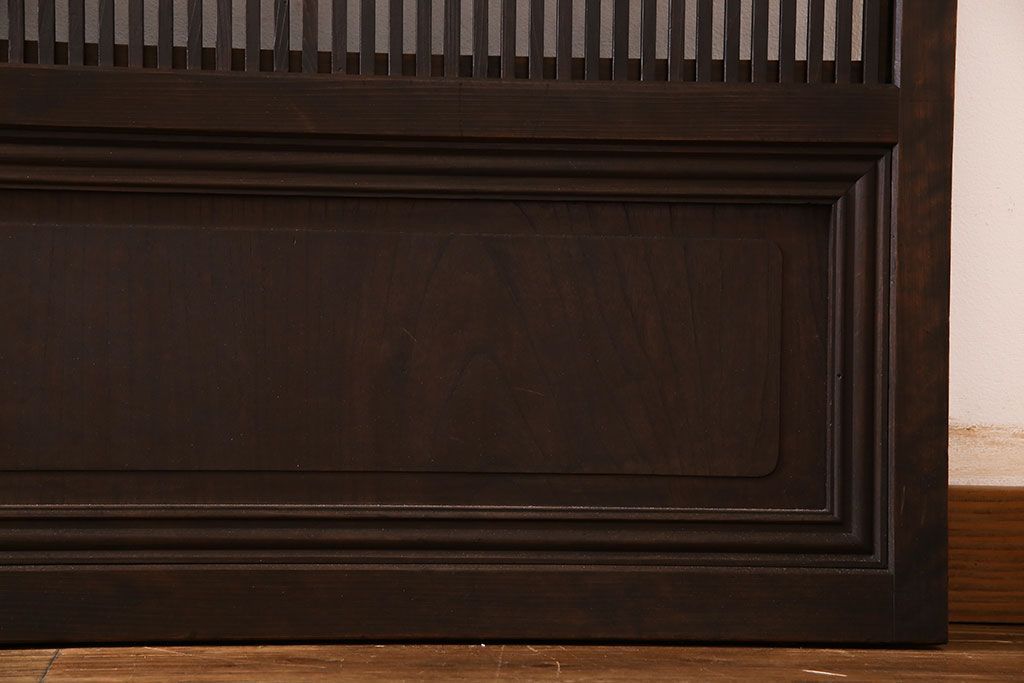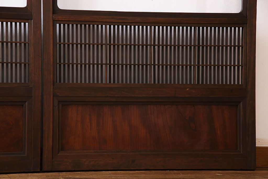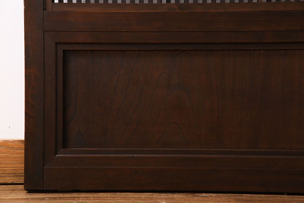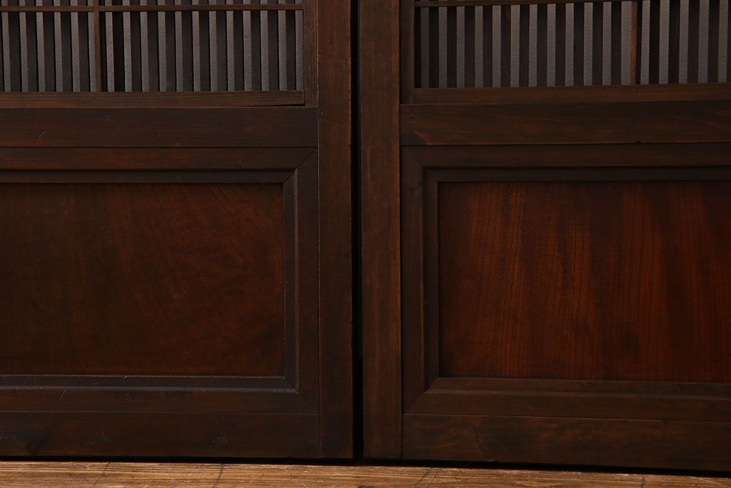 昭和期 腰板ケヤキ材 上品な雰囲気漂う裏障子付き格子戸(引き戸、建具)2枚セット(1)