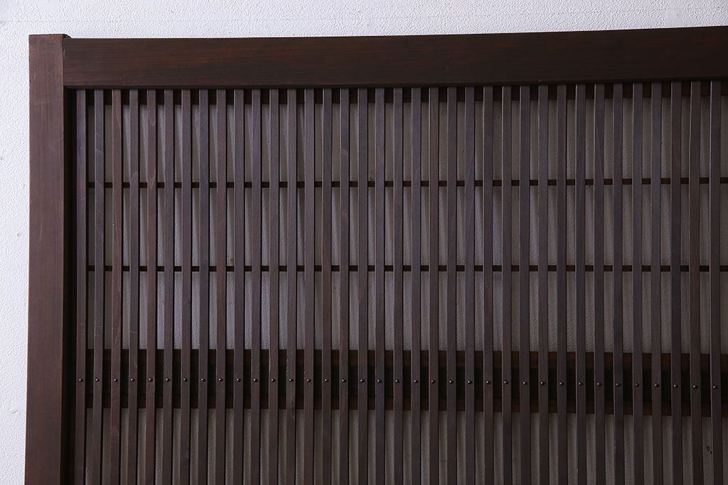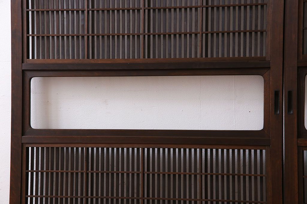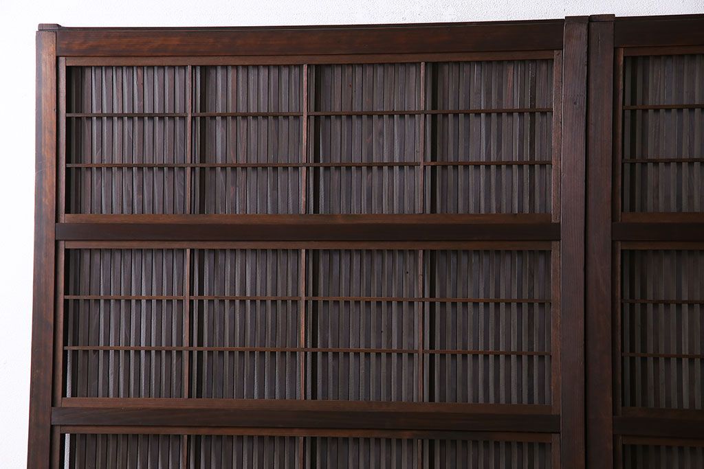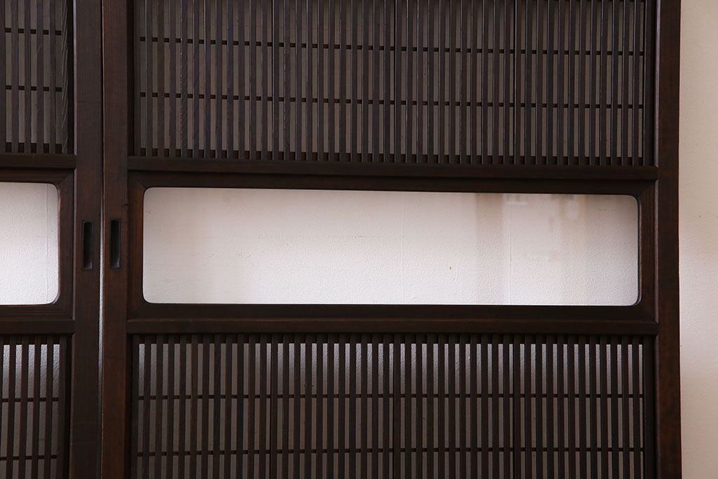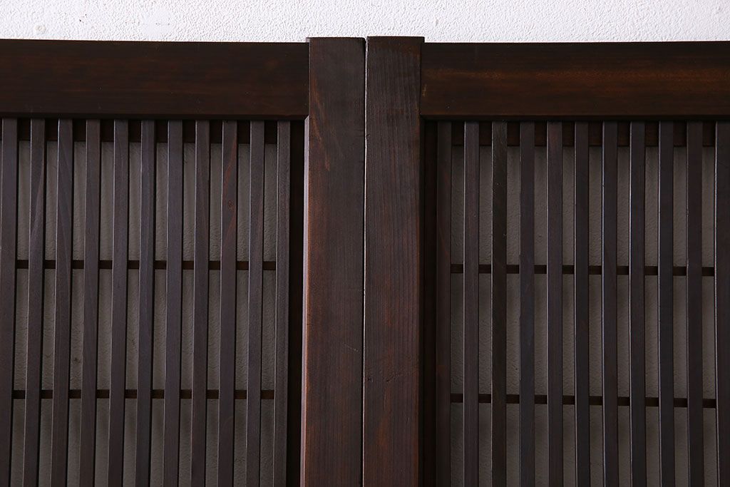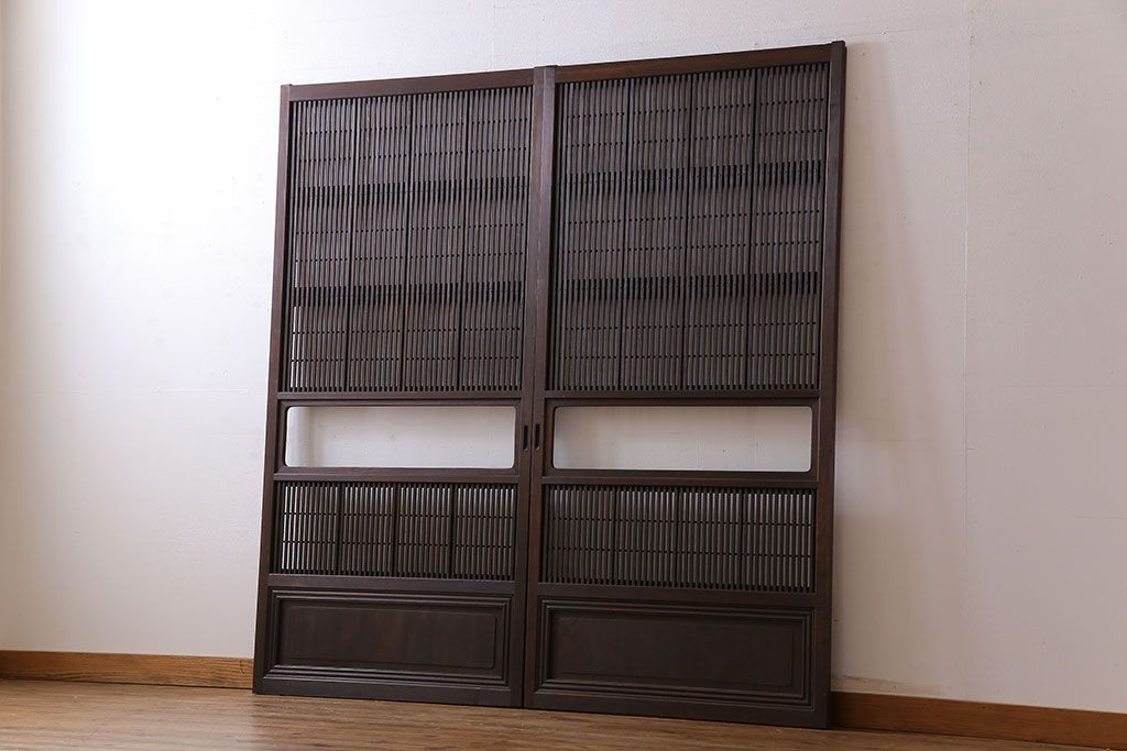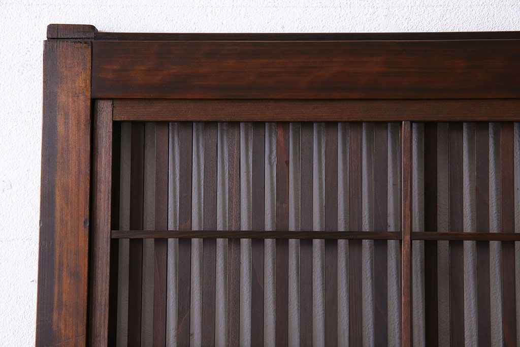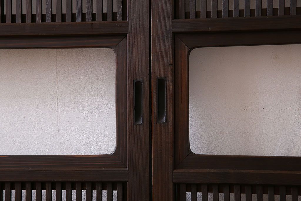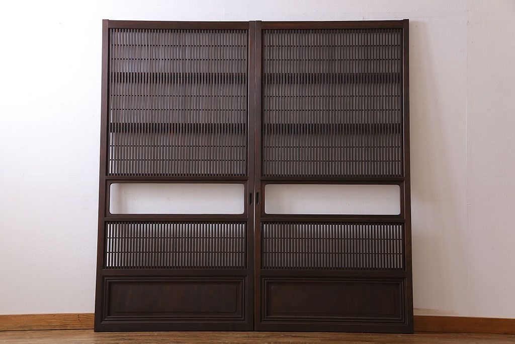 昭和期 腰板ケヤキ材 上品な雰囲気漂う裏障子付き格子戸(引き戸、建具)2枚セット(1)