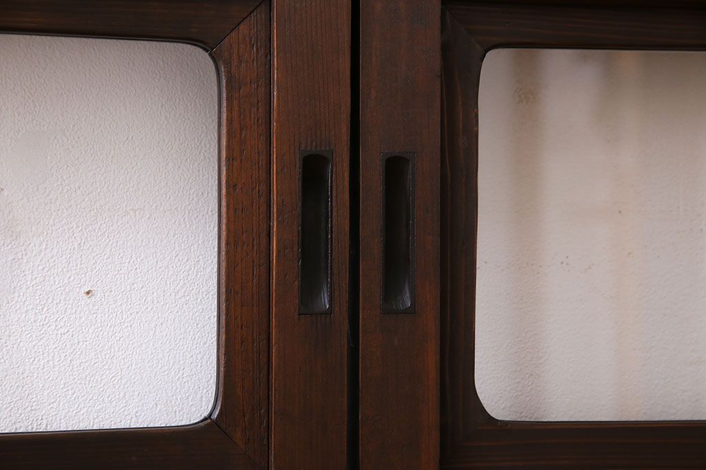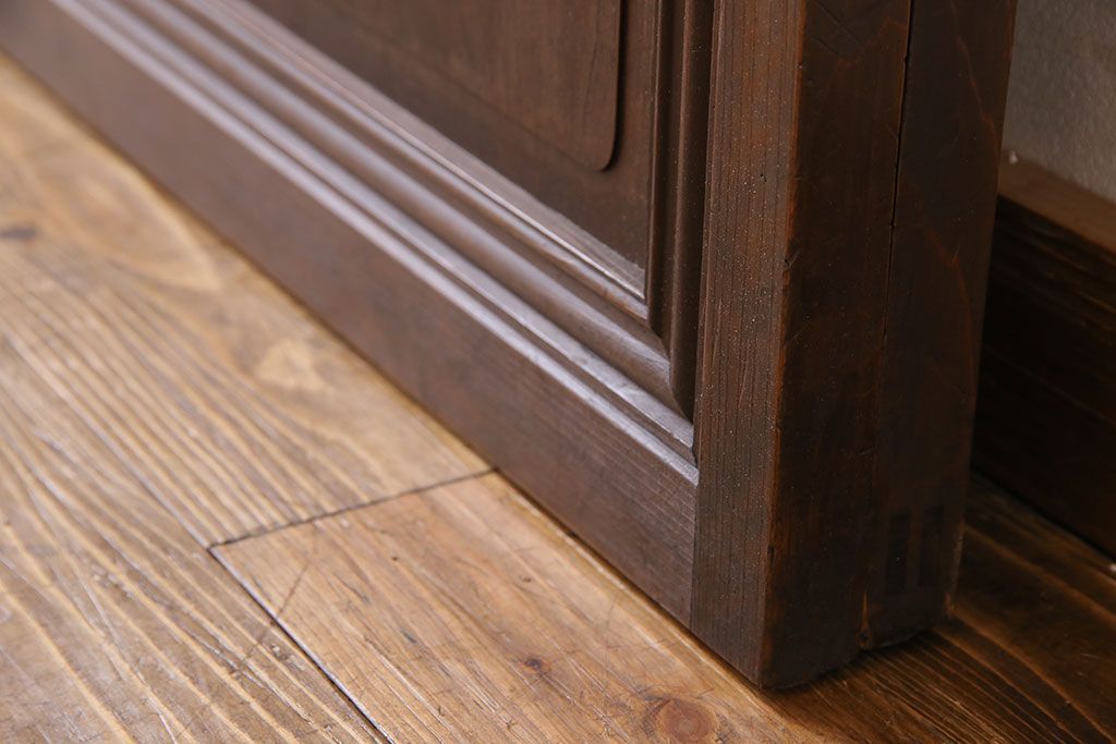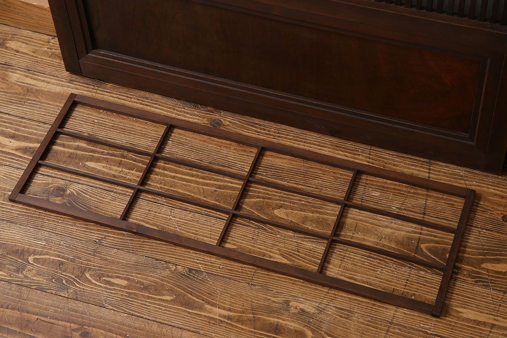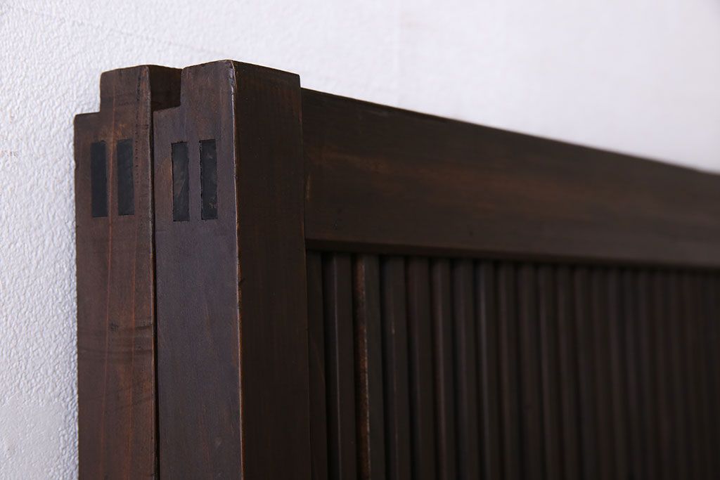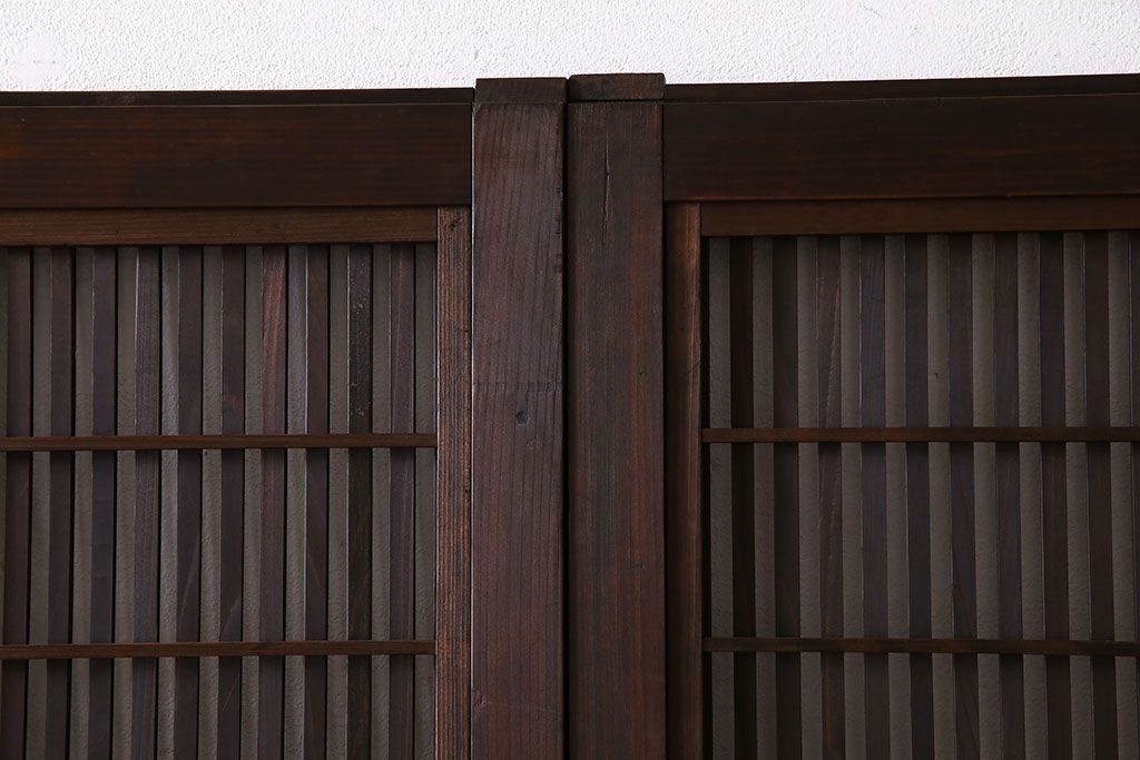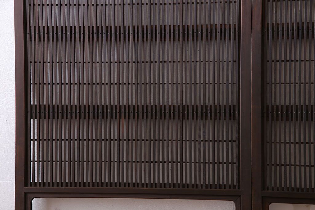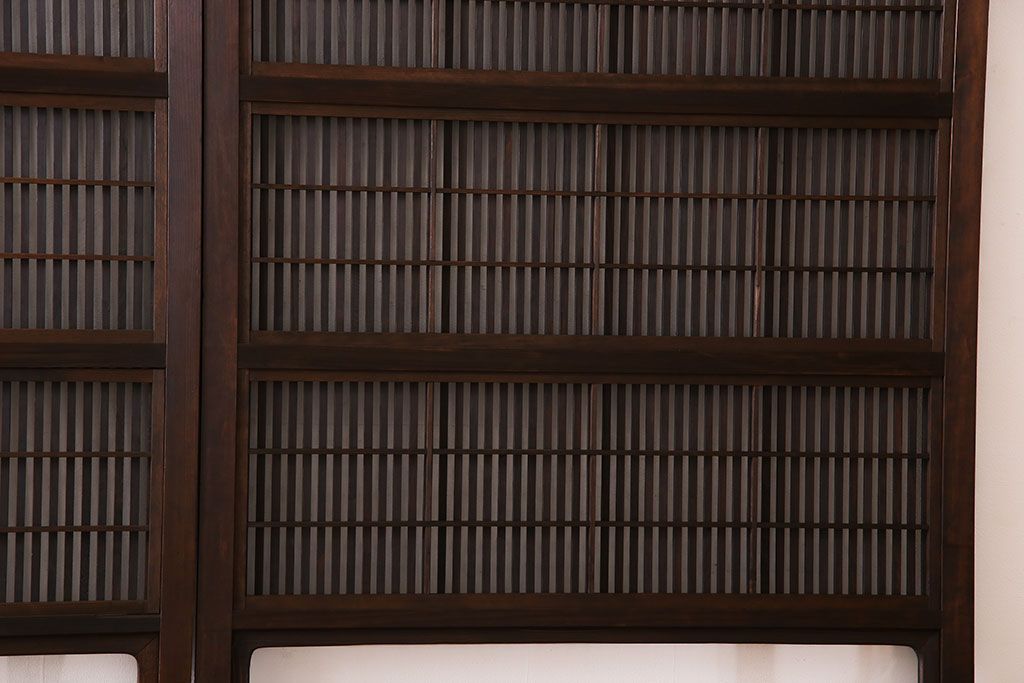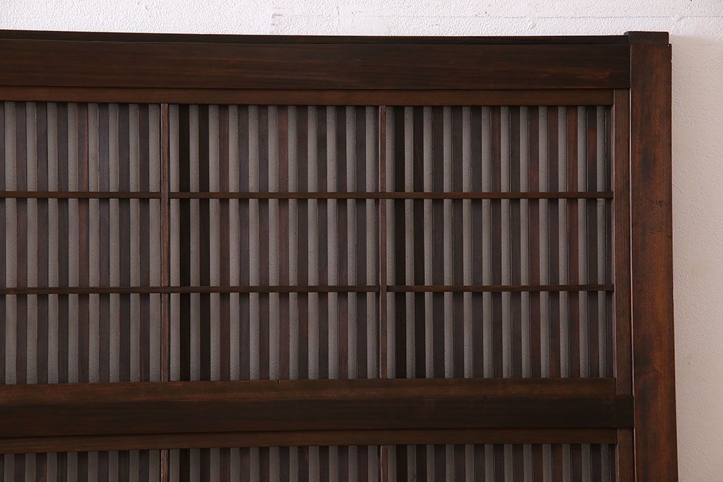 昭和期 腰板ケヤキ材 上品な雰囲気漂う裏障子付き格子戸(引き戸、建具)2枚セット(1)