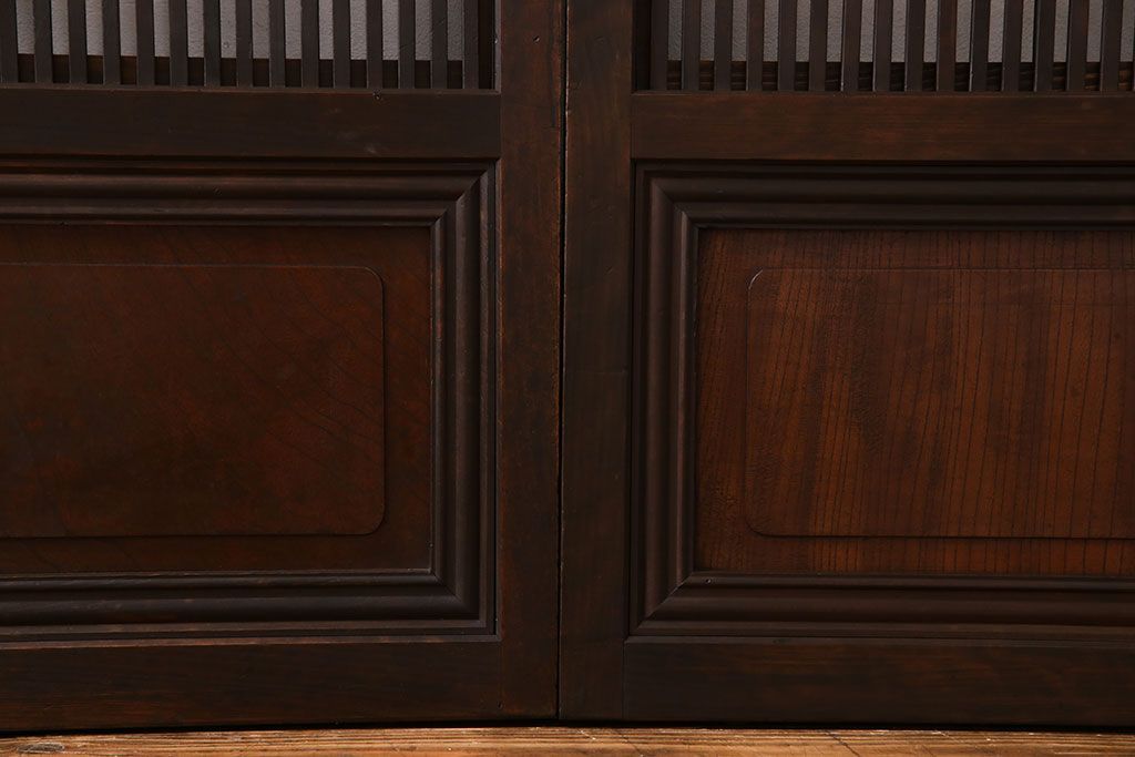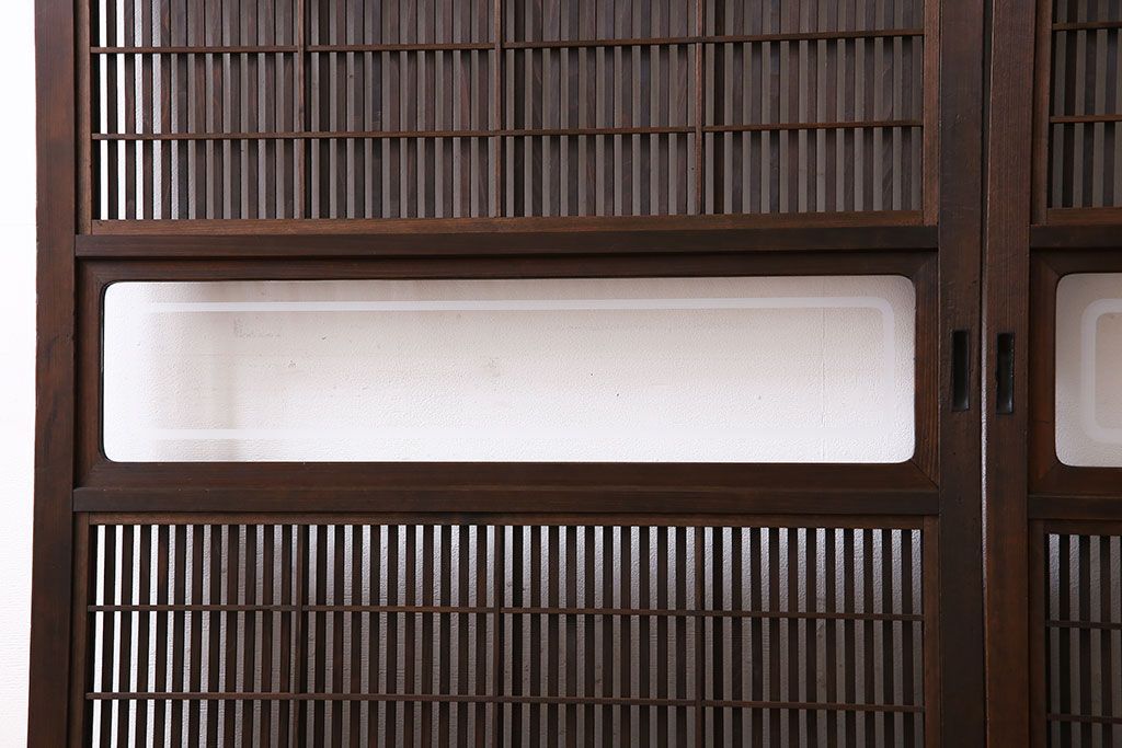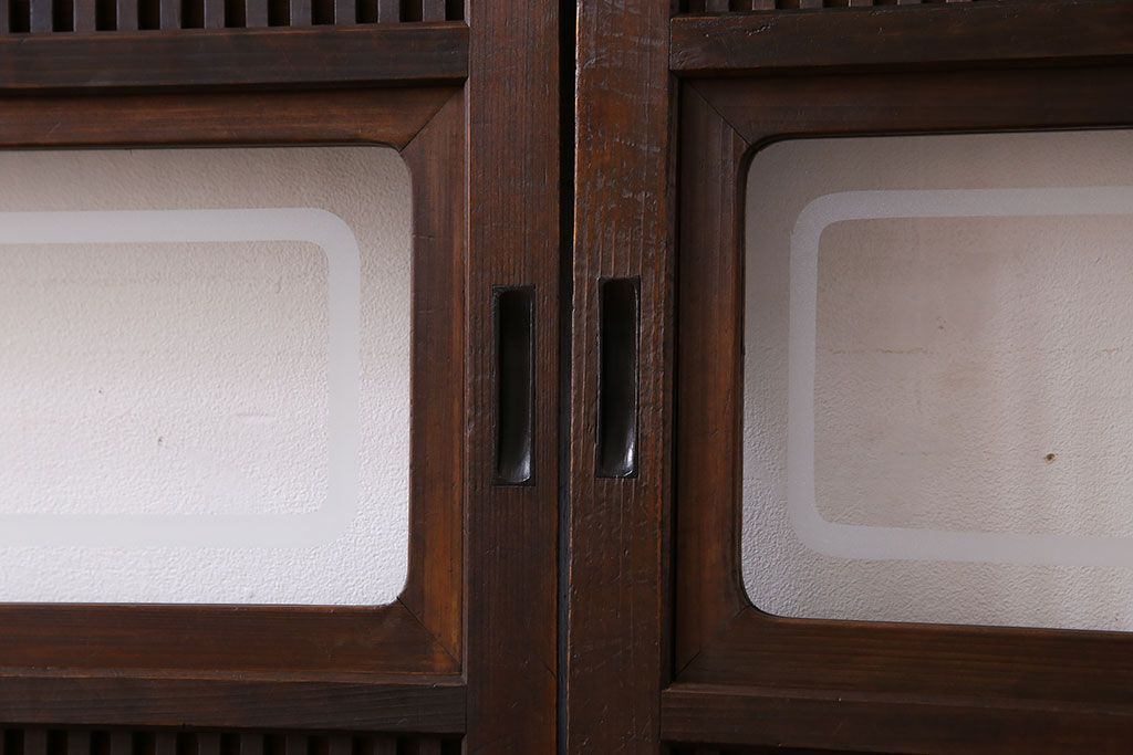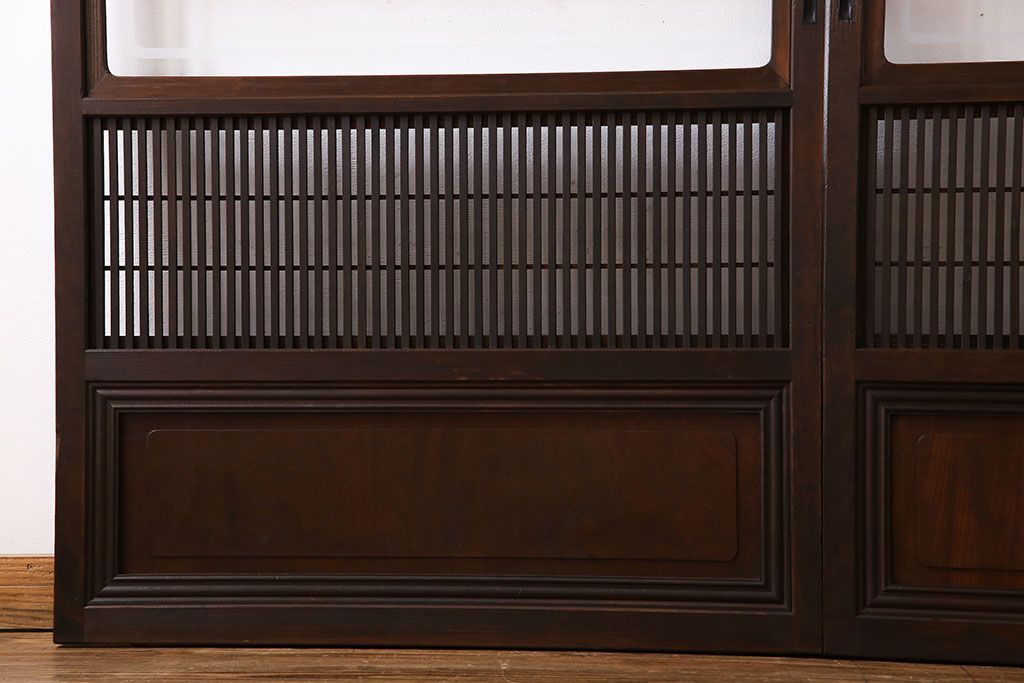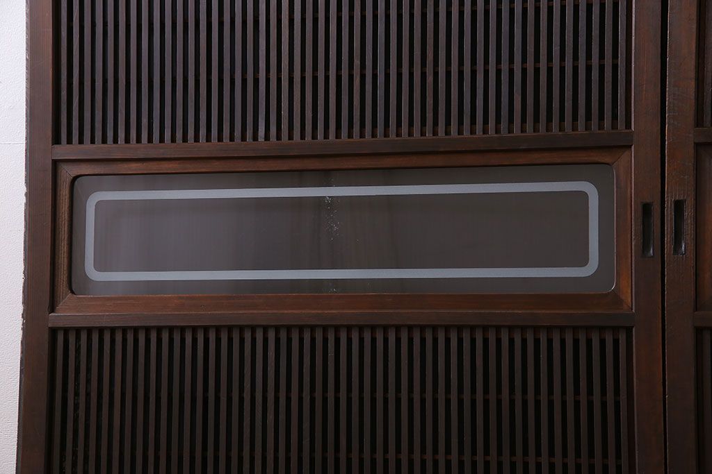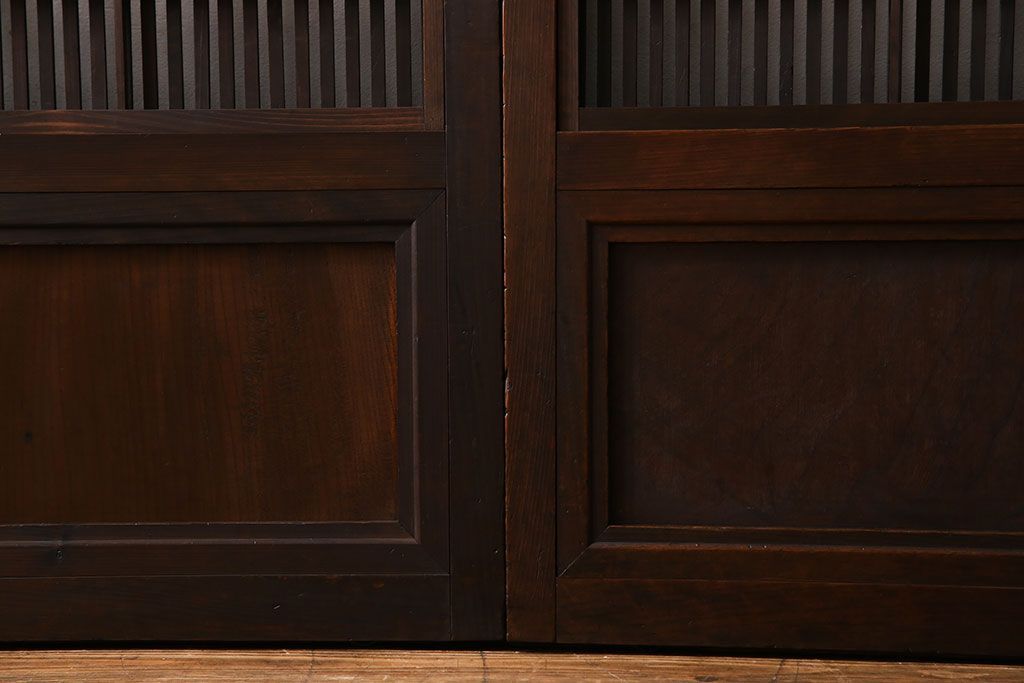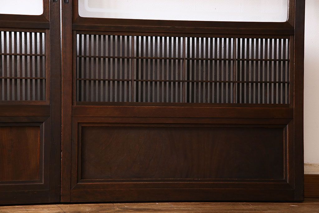昭和期 腰板ケヤキ材 裏障子付き 上品な雰囲気漂うガラス帯格子戸(引き戸、建具)2枚セット(2)