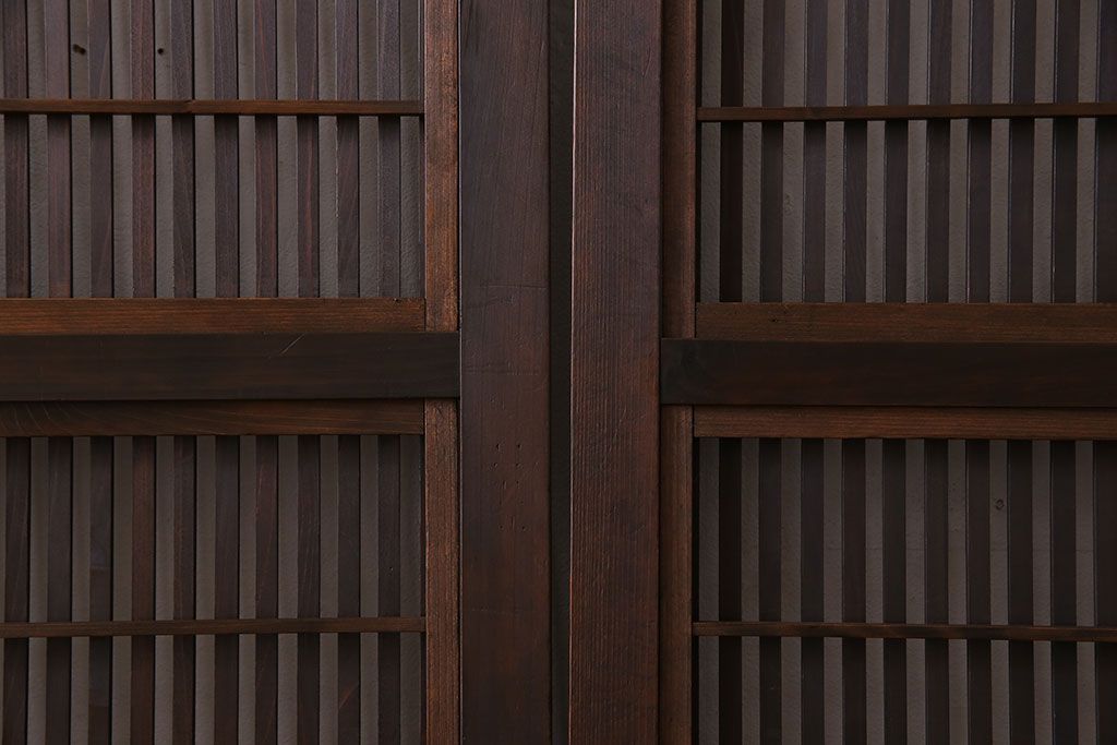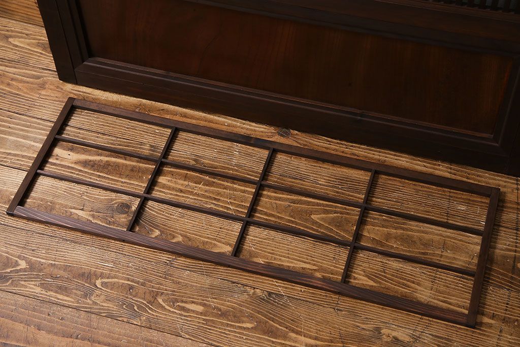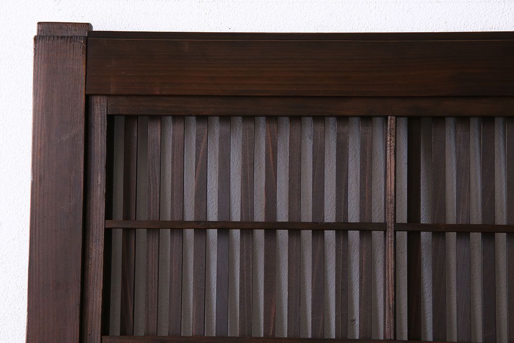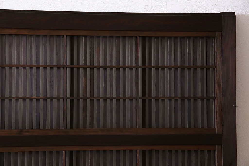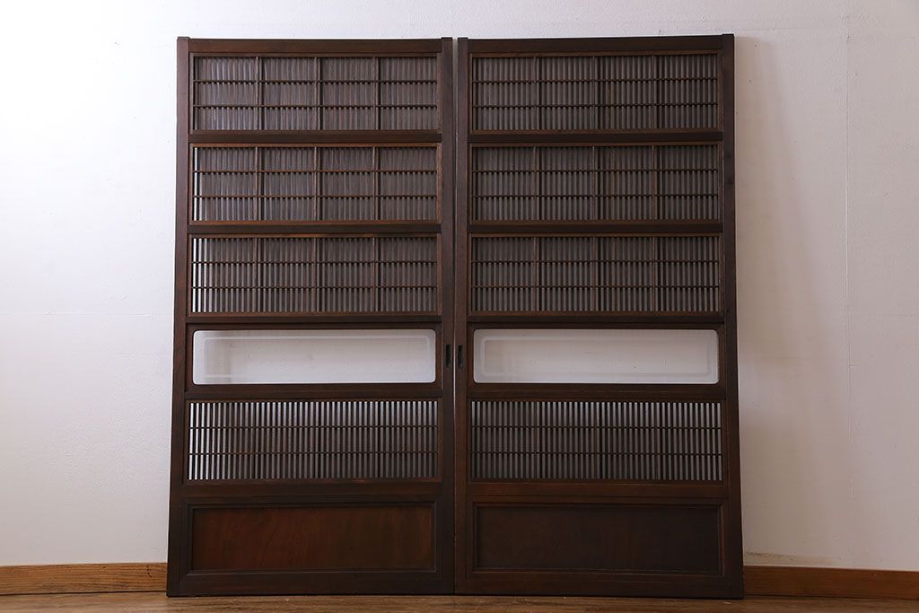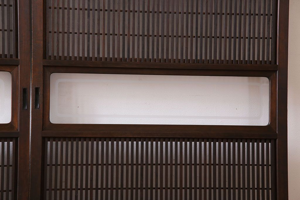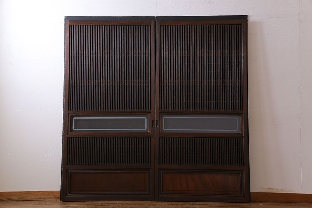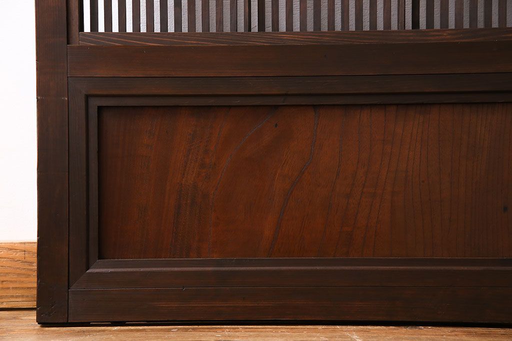 昭和期 腰板ケヤキ材 裏障子付き 上品な雰囲気漂うガラス帯格子戸(引き戸、建具)2枚セット(2)