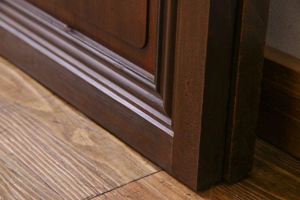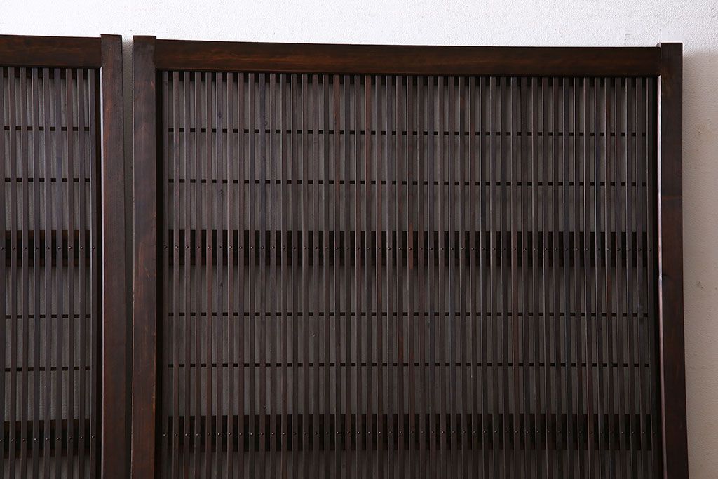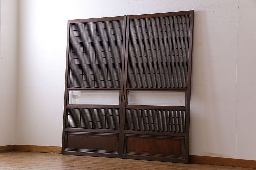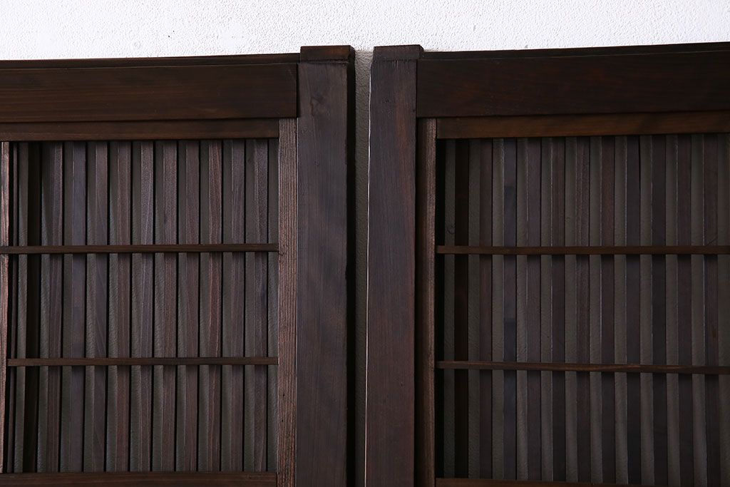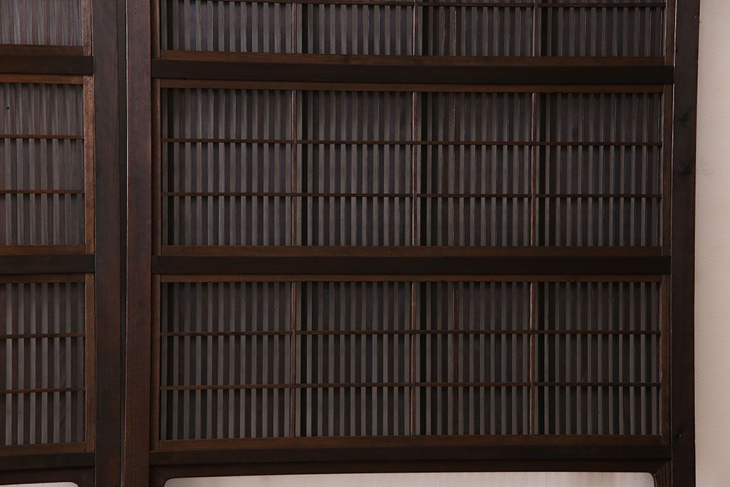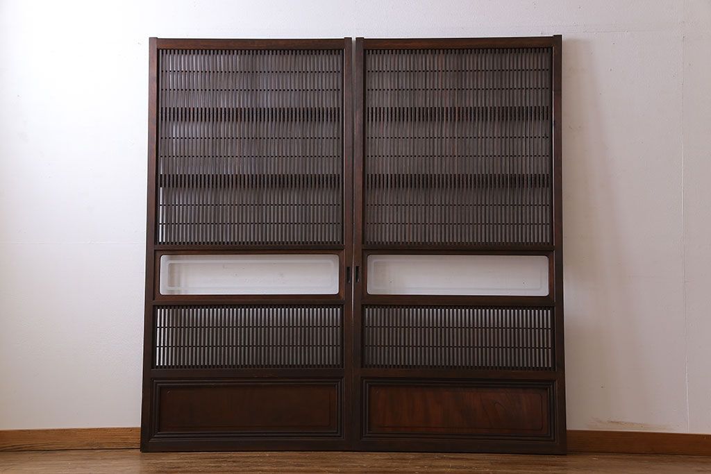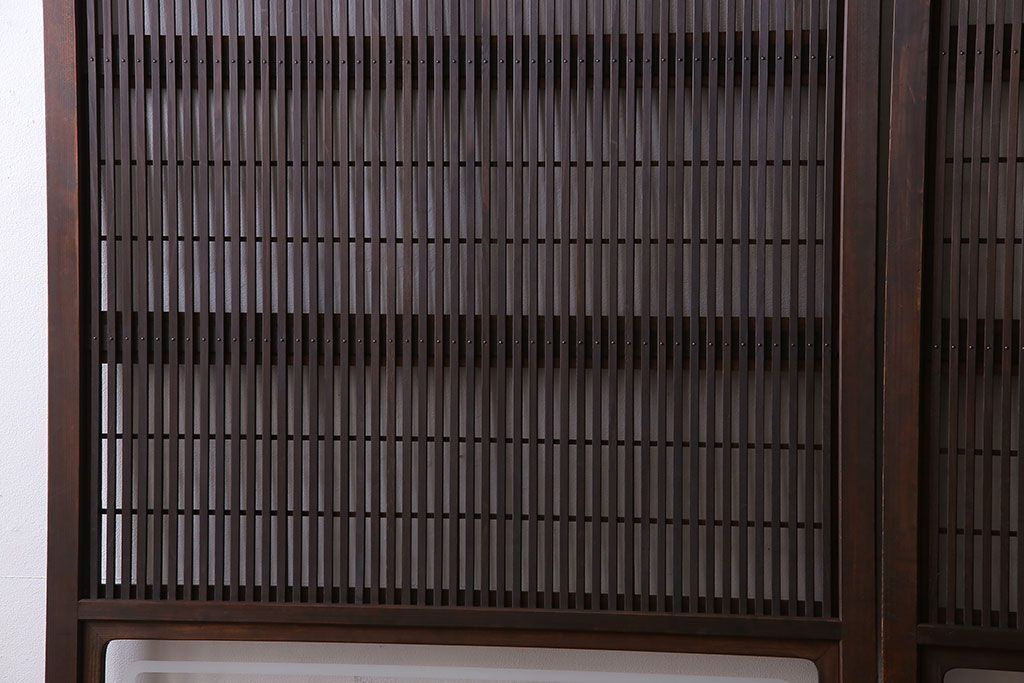 昭和期 腰板ケヤキ材 裏障子付き 上品な雰囲気漂うガラス帯格子戸(引き戸、建具)2枚セット(2)