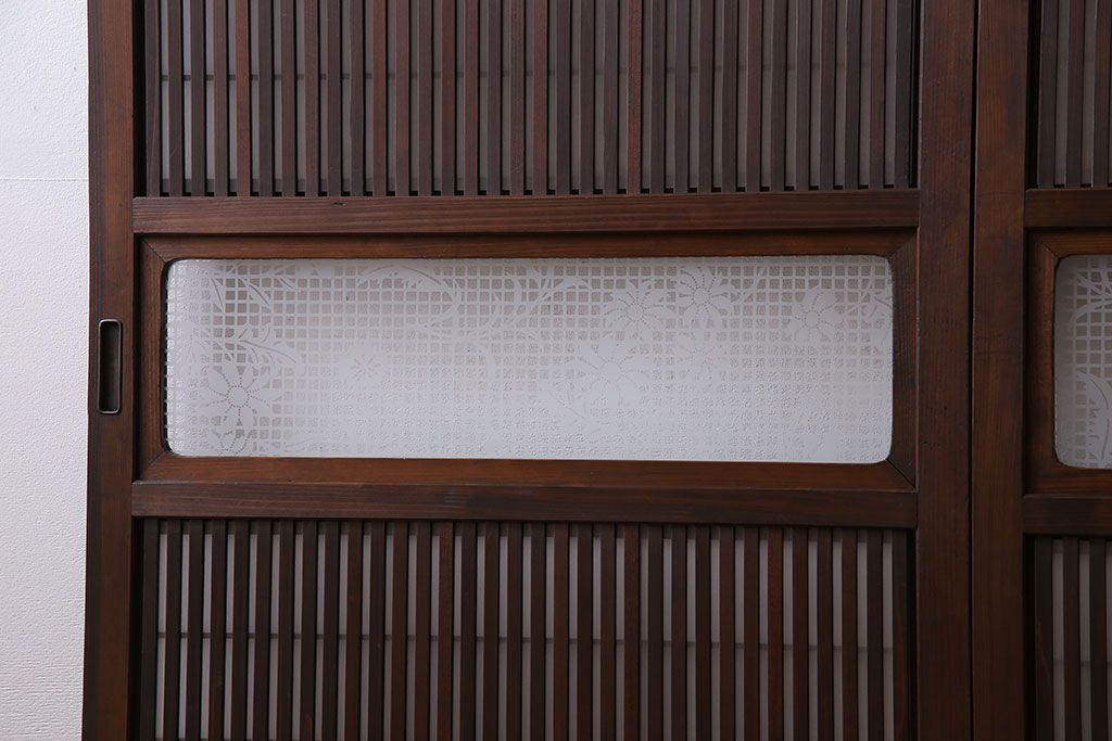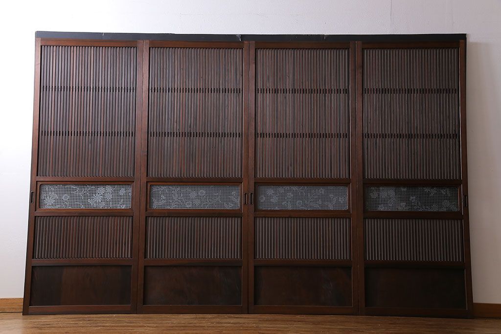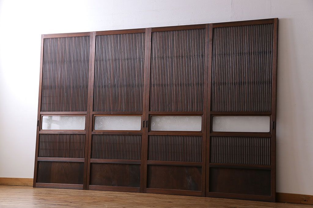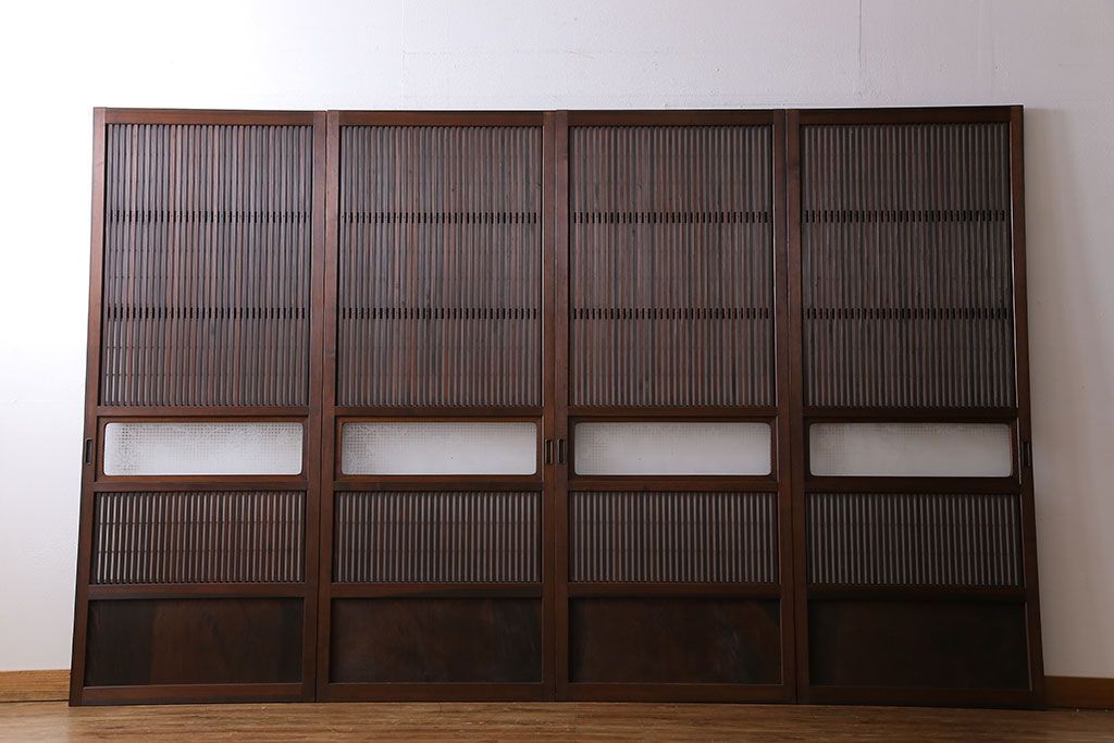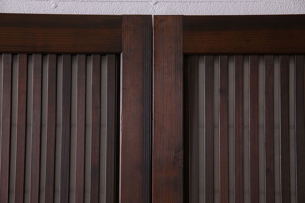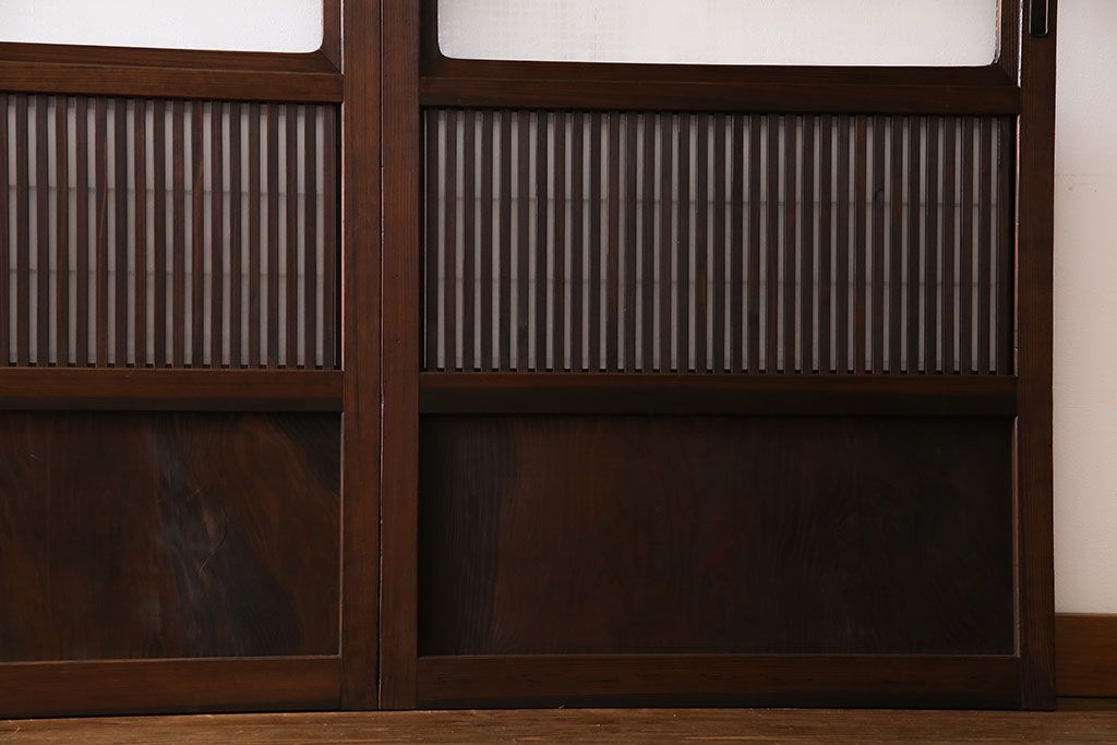 和製アンティーク レトロな雰囲気漂う幅の狭い帯格子戸(引き戸、障子戸、建具)4枚セット