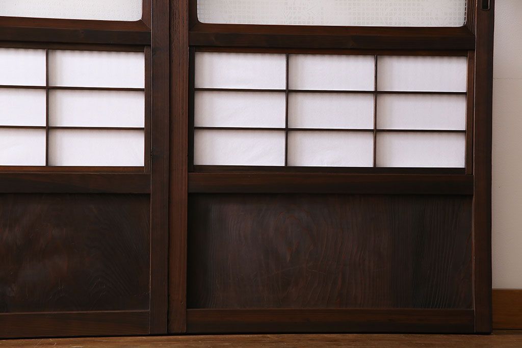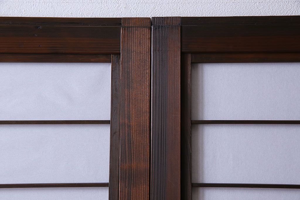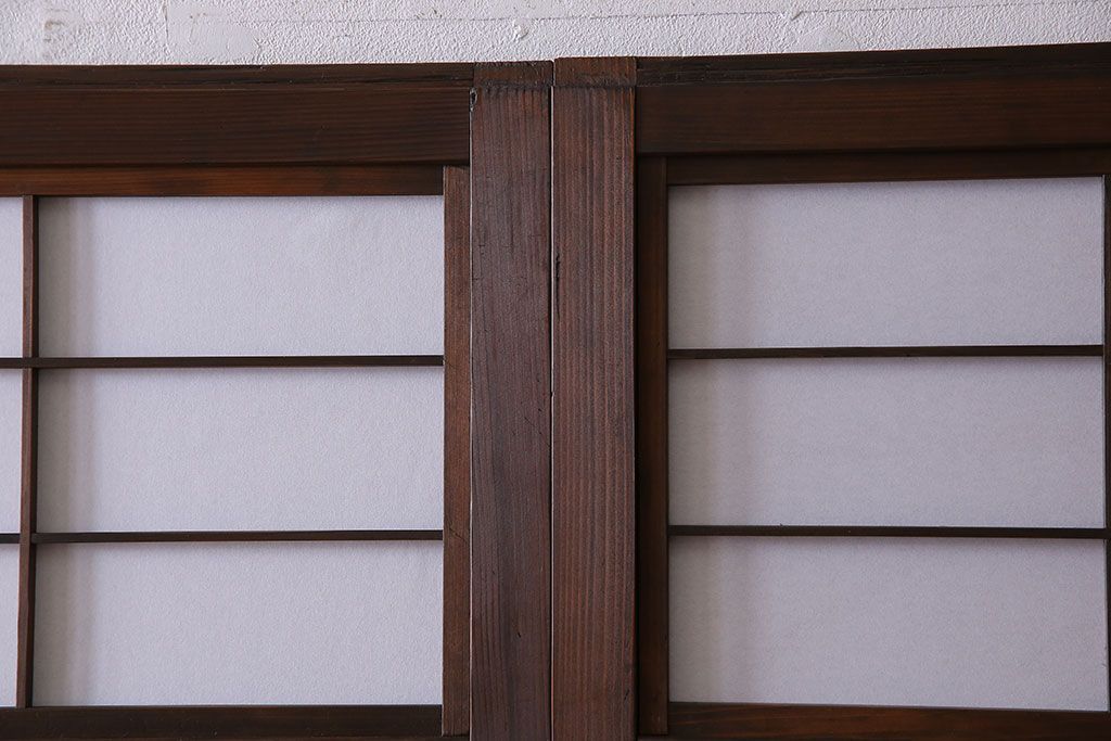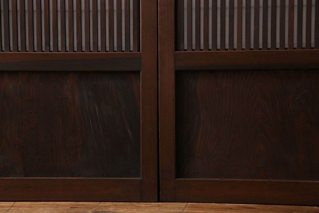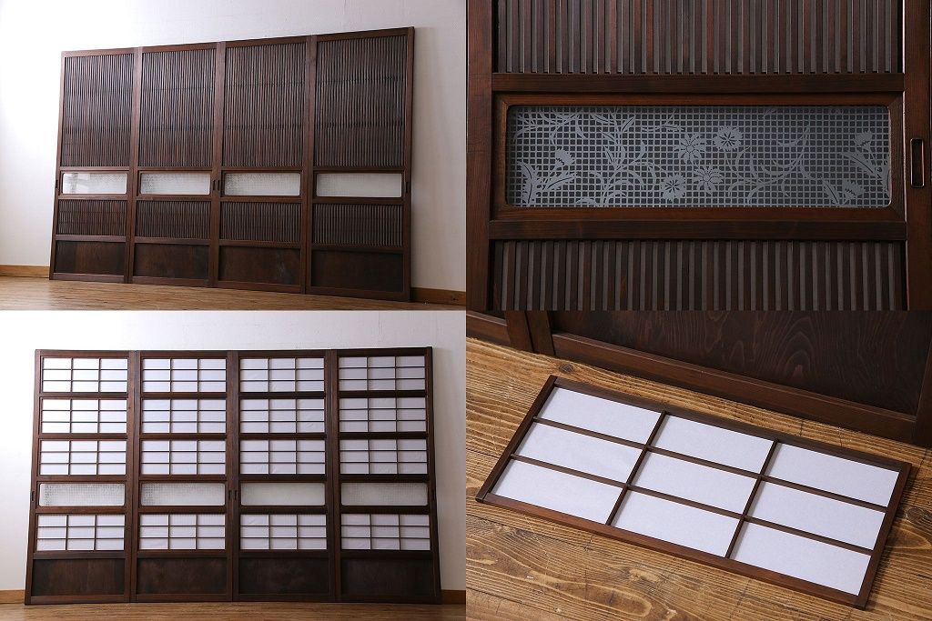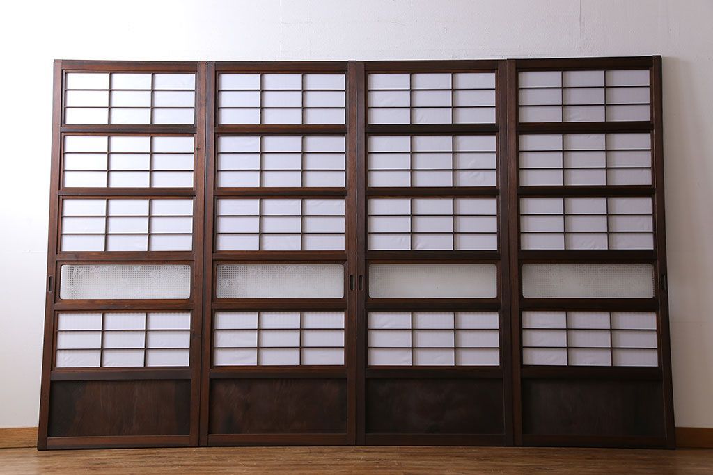 和製アンティーク レトロな雰囲気漂う幅の狭い帯格子戸(引き戸、障子戸、建具)4枚セット