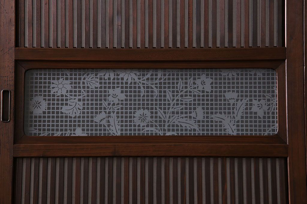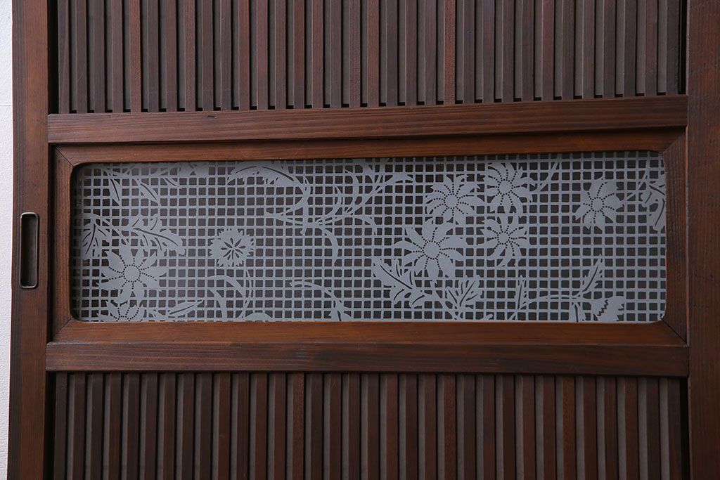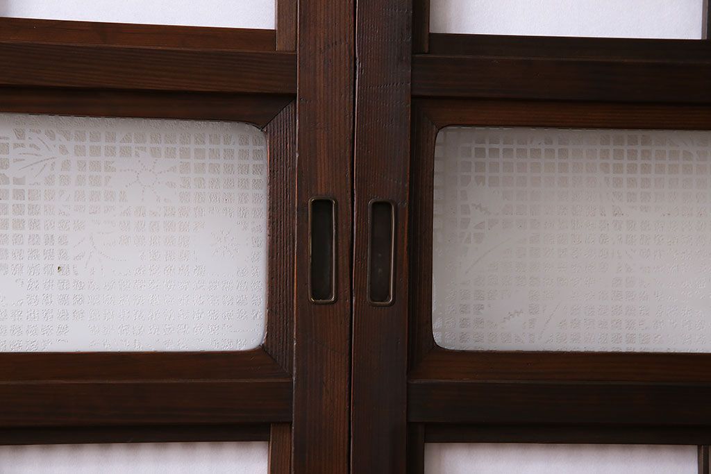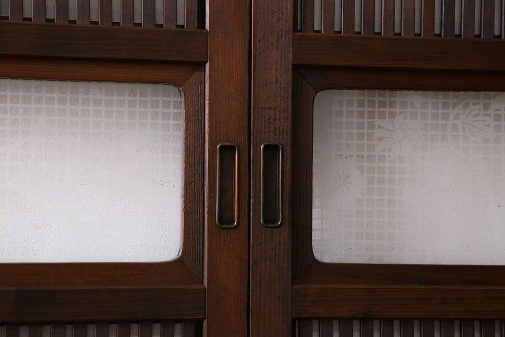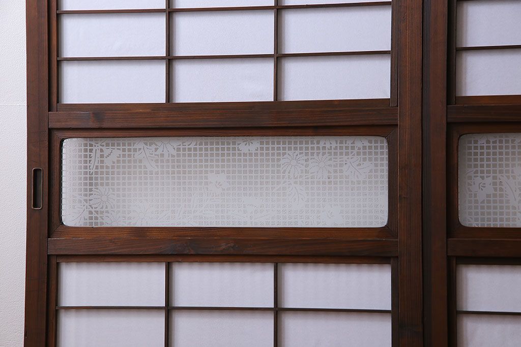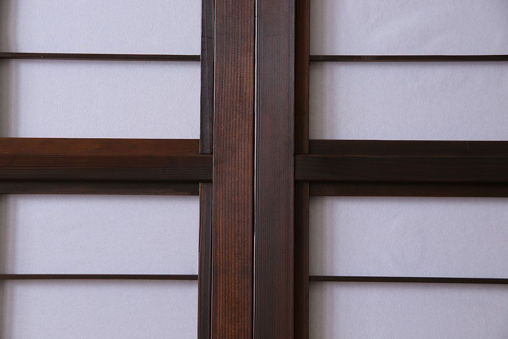 和製アンティーク レトロな雰囲気漂う幅の狭い帯格子戸(引き戸、障子戸、建具)4枚セット