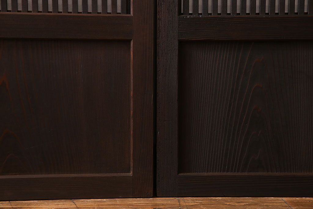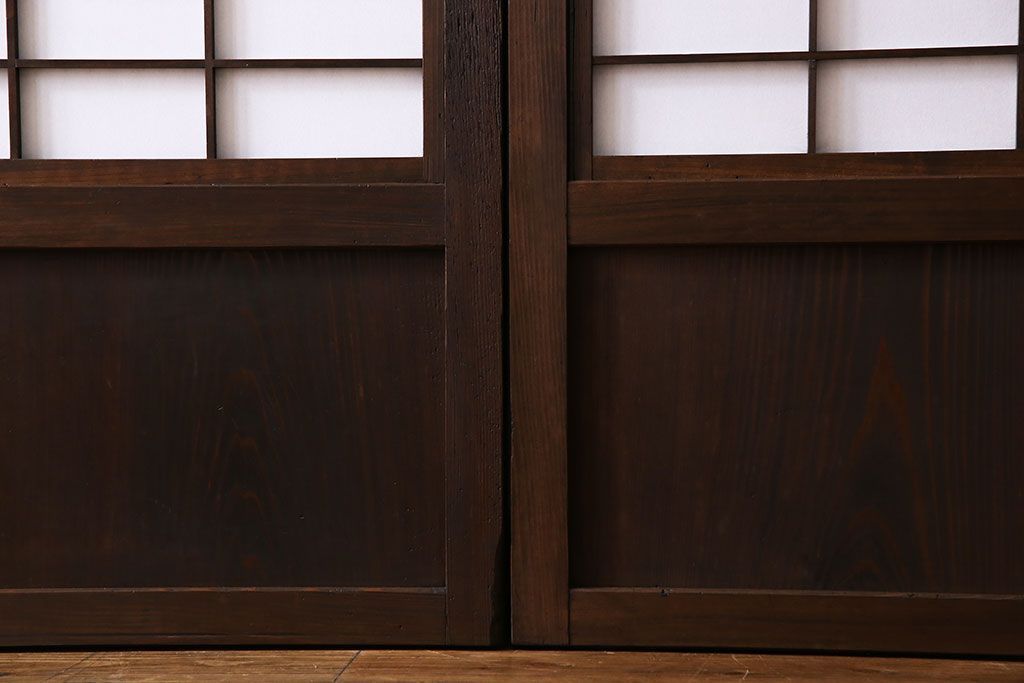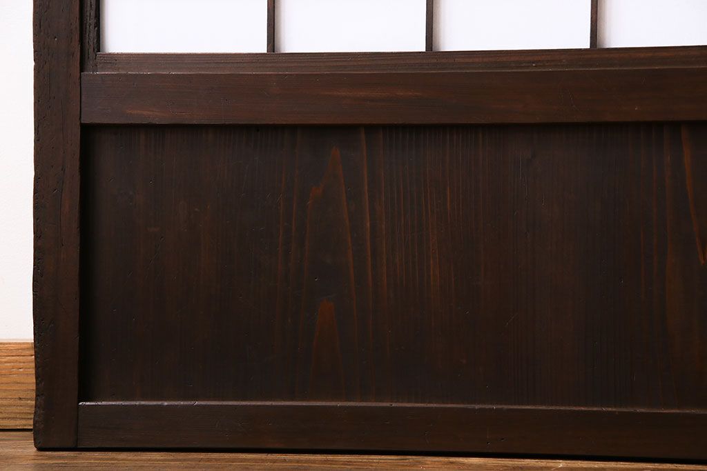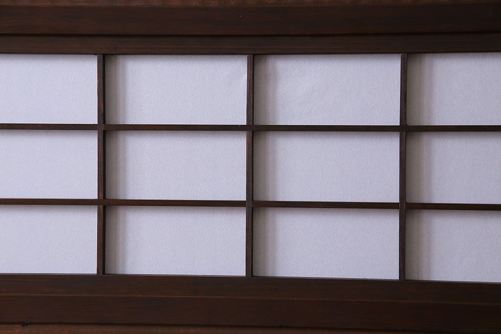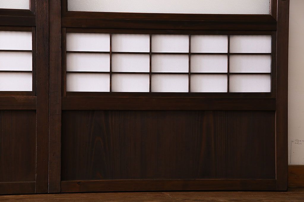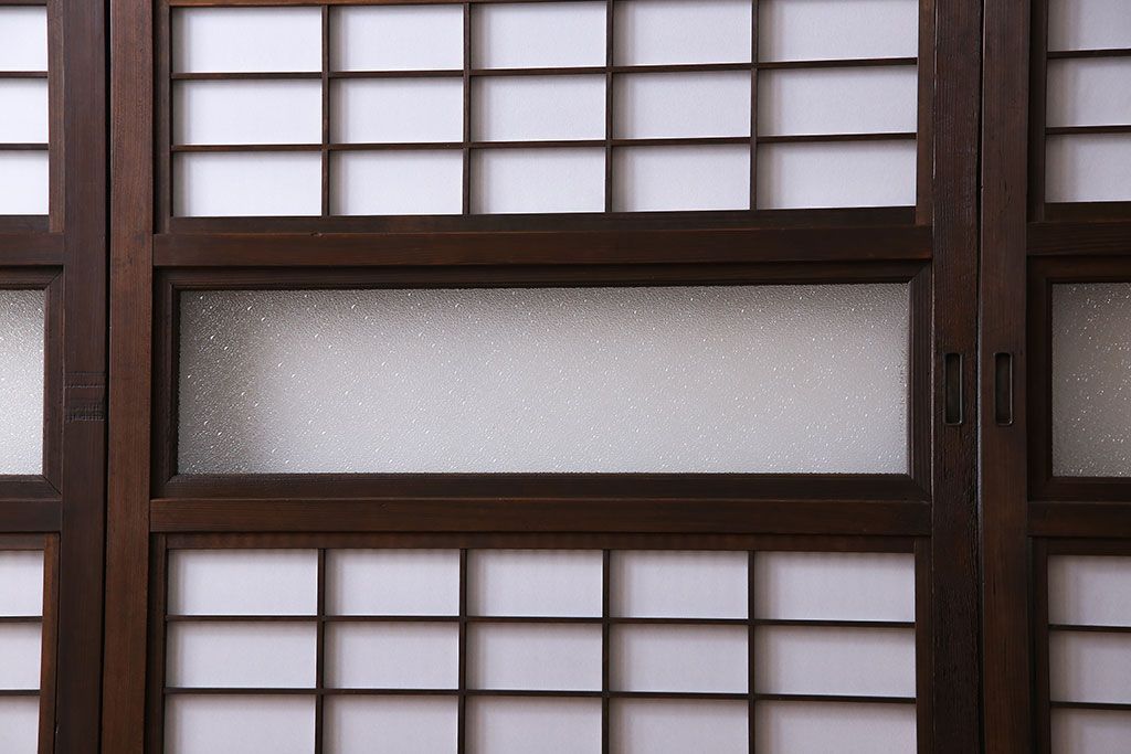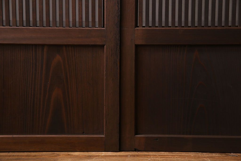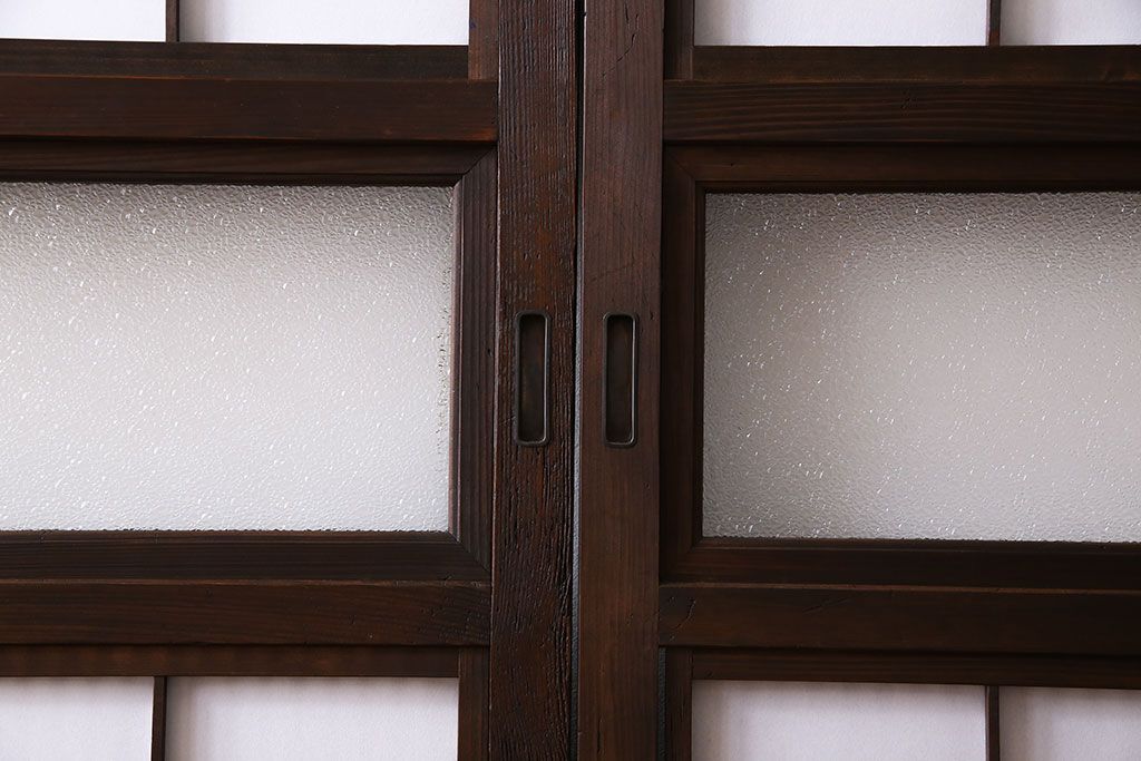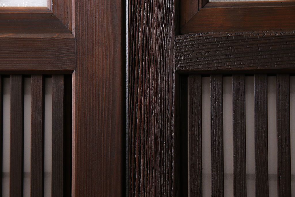 和製アンティーク 裏障子付き 上品な雰囲気漂うガラス帯格子戸(引き戸、障子戸、建具)4枚セット