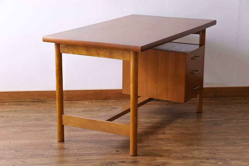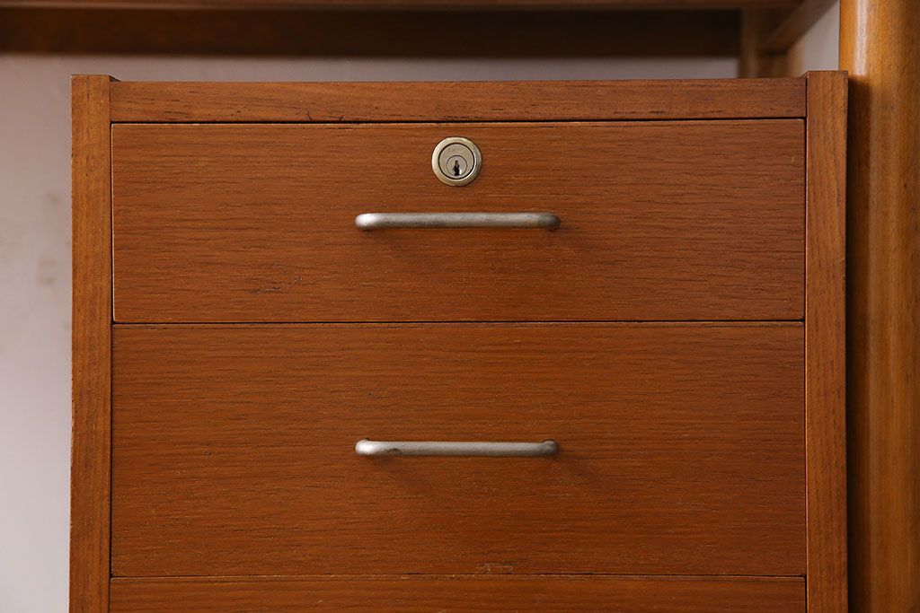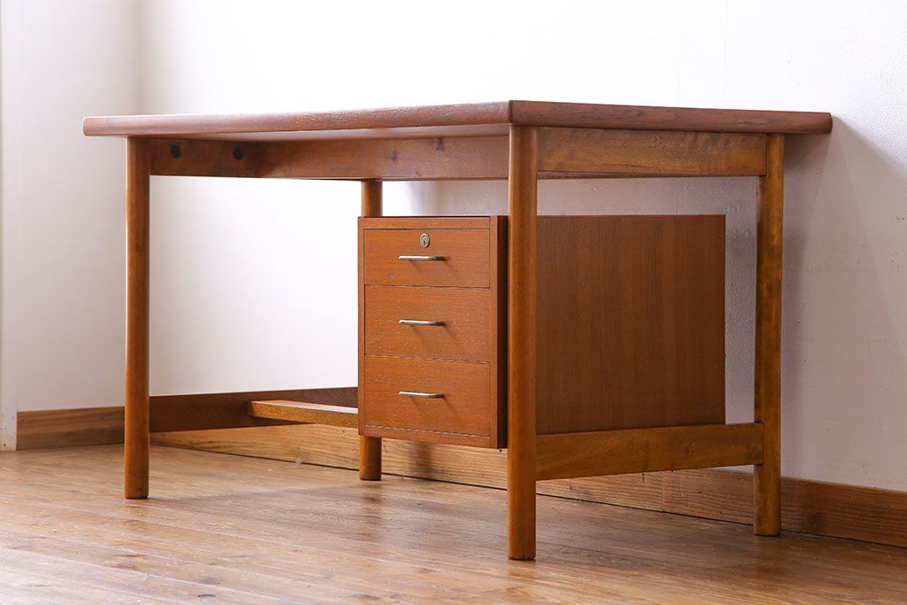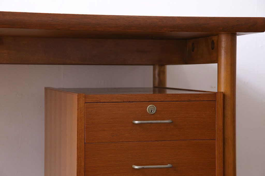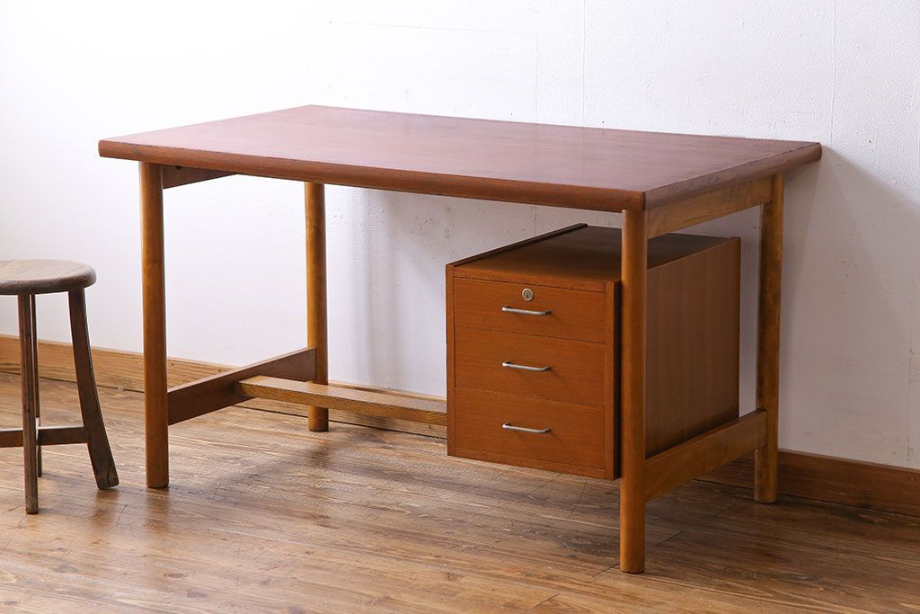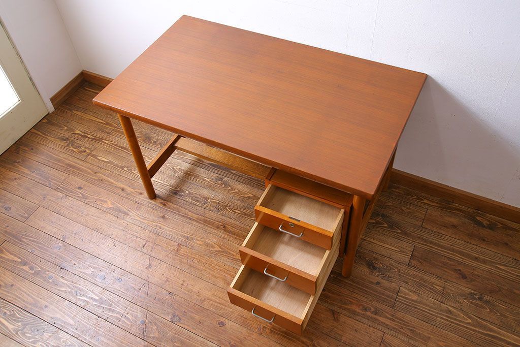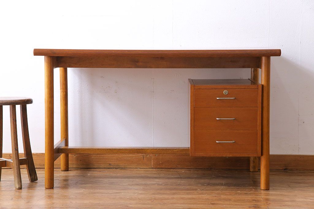 ヴィンテージ家具 日本製 チーク材 温かな色合いのビンテージデスク(片袖机)