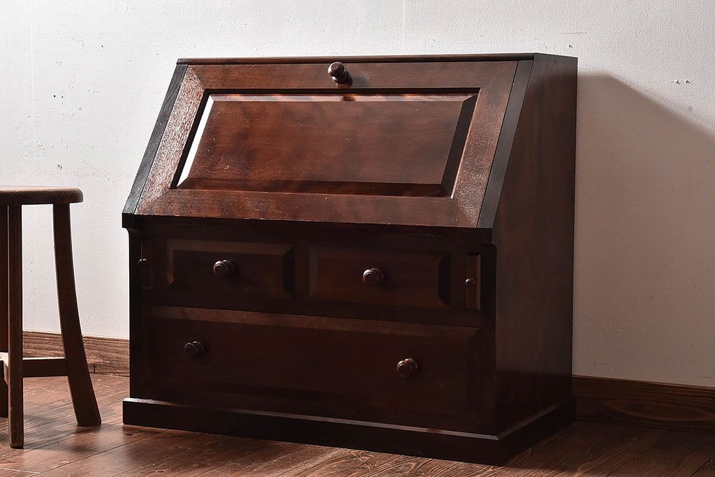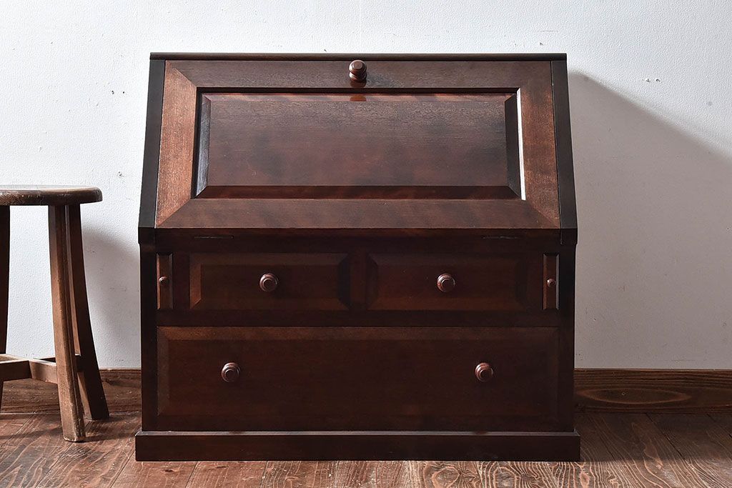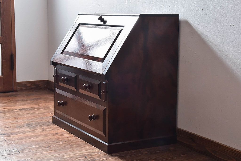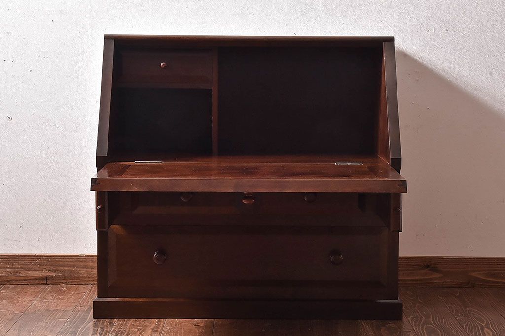 ラフジュ工房> デスク> ワークデスク > 中古 松本民芸家具 和モダンなライティングビューロー(デスク、書斎机、在宅ワーク、在宅用簿記机)(定価21万)