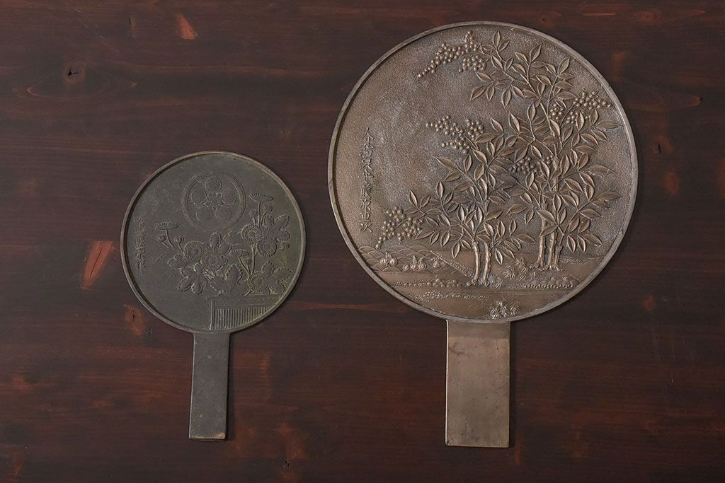 アンティーク雑貨 和製アンティーク 藤原重次 明治大正期 古い銅鏡(古鏡)2点