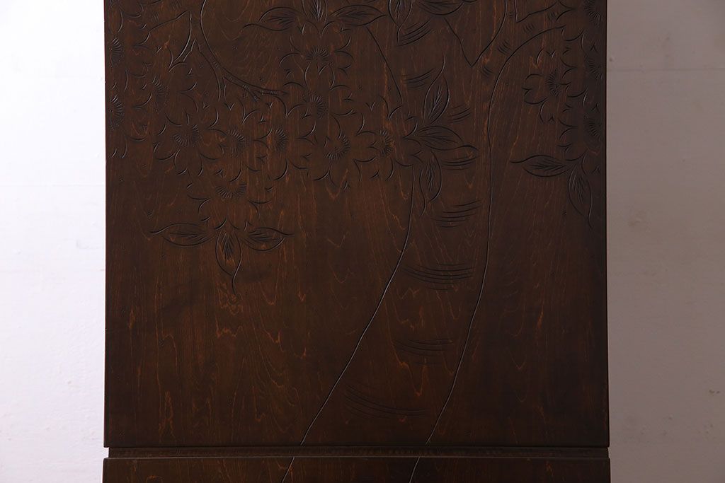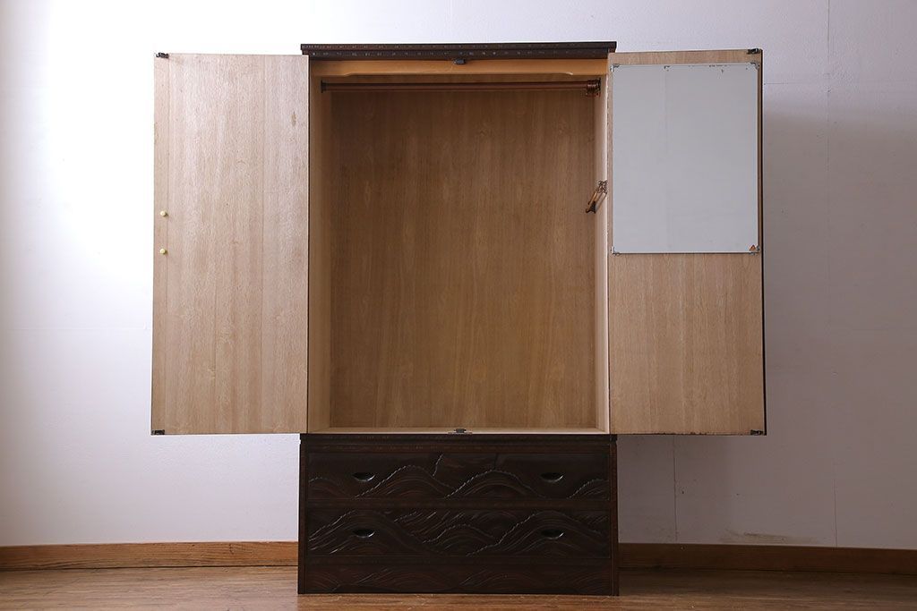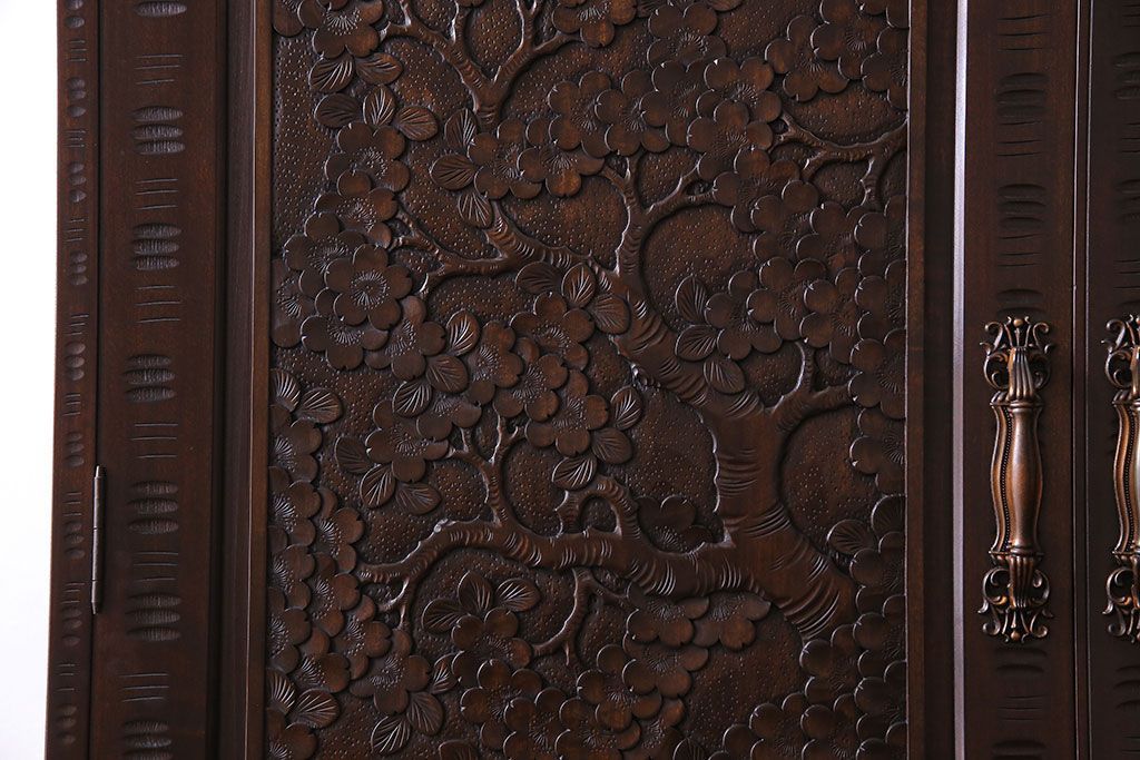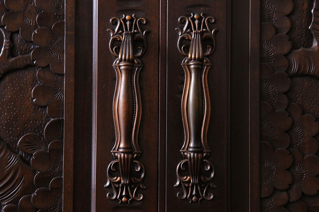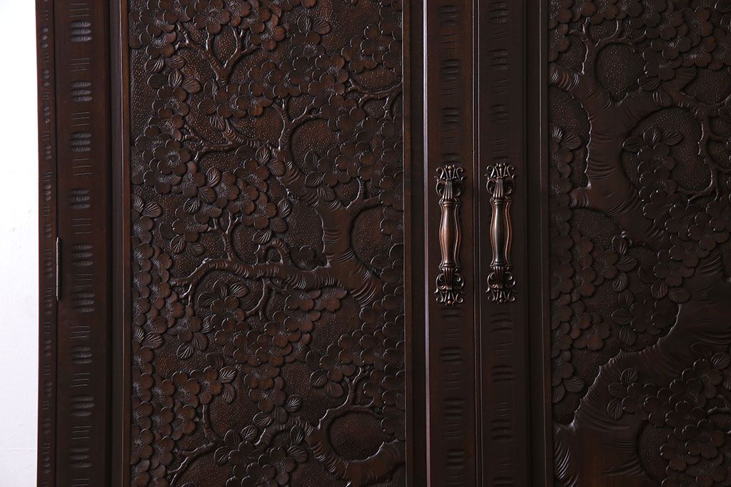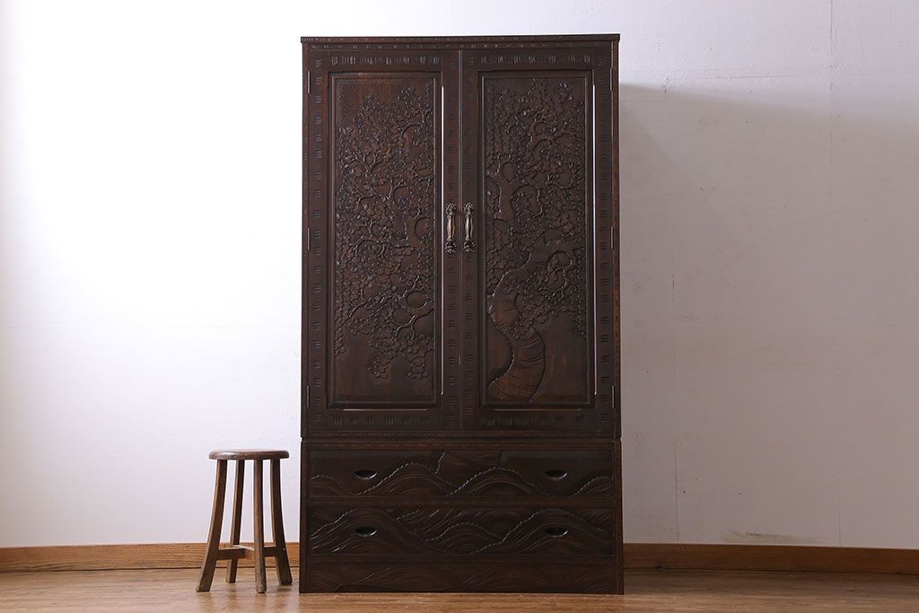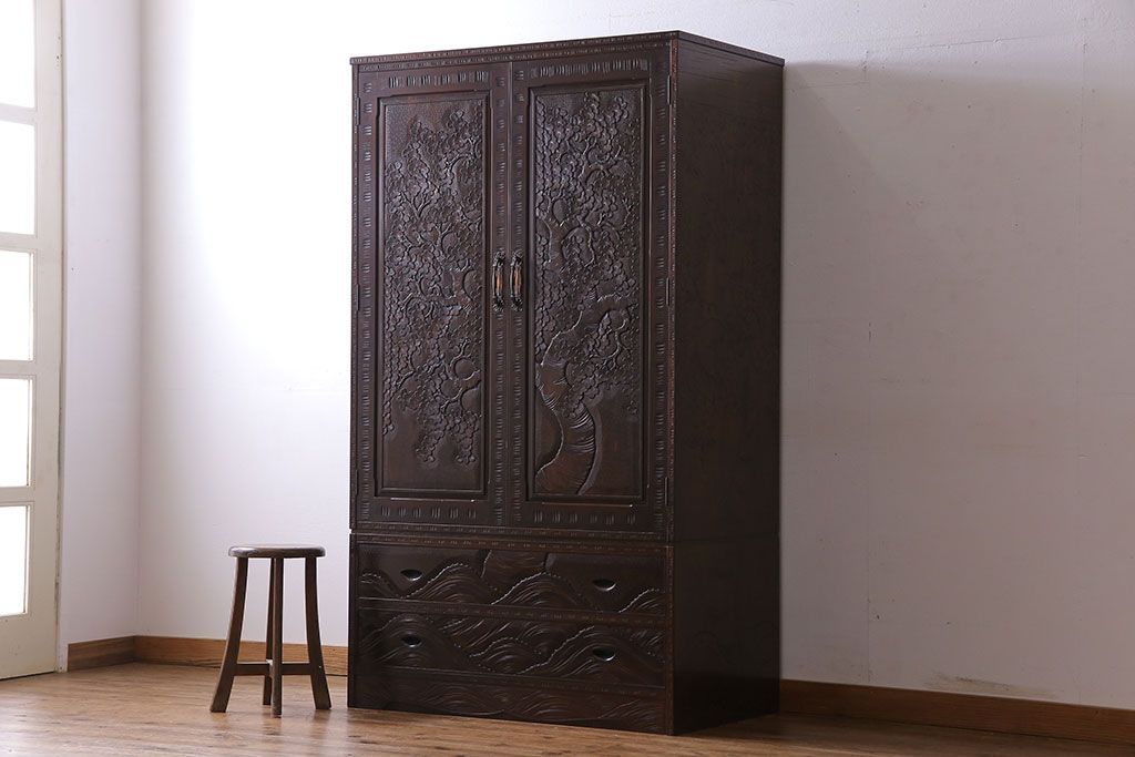 中古 伝統工芸 軽井沢彫りが施された上質なワードローブ(収納棚、洋服タンス、キャビネット)
