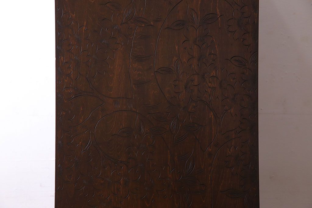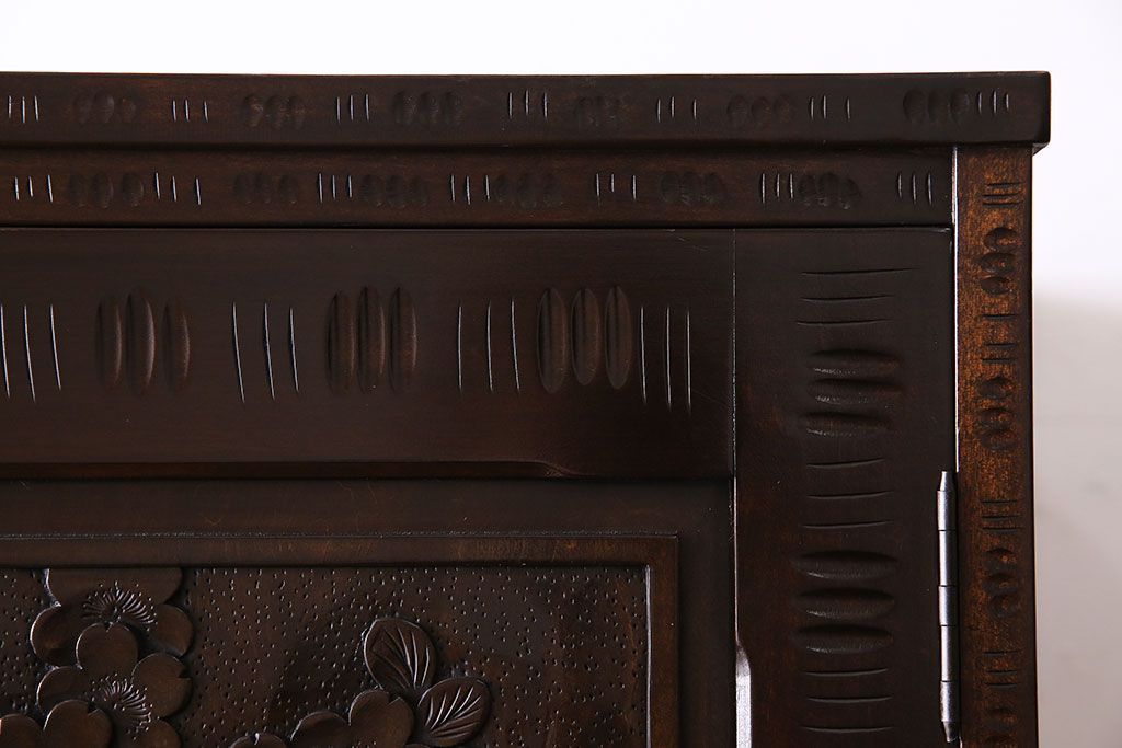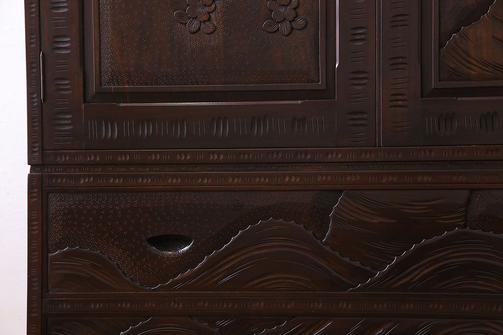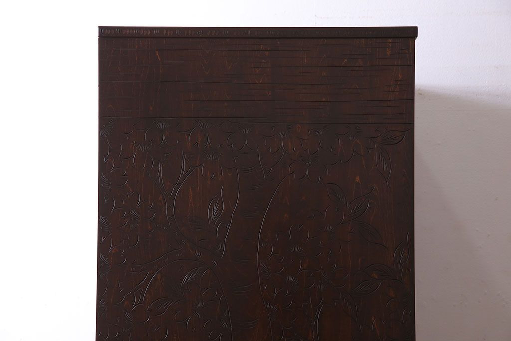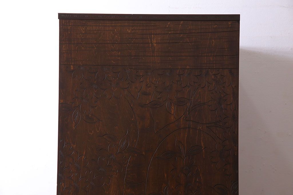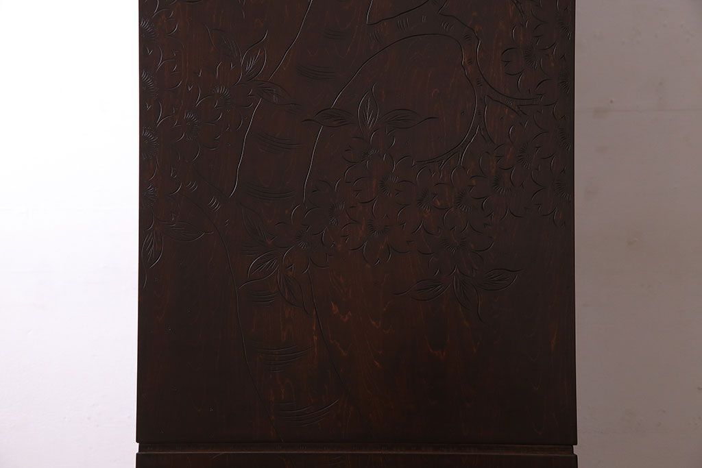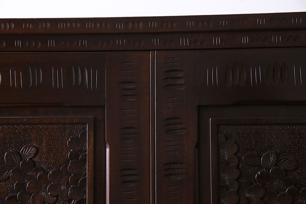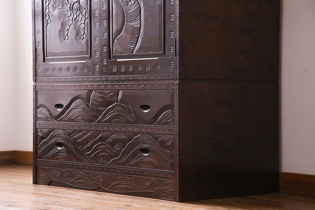 中古 伝統工芸 軽井沢彫りが施された上質なワードローブ(収納棚、洋服タンス、キャビネット)