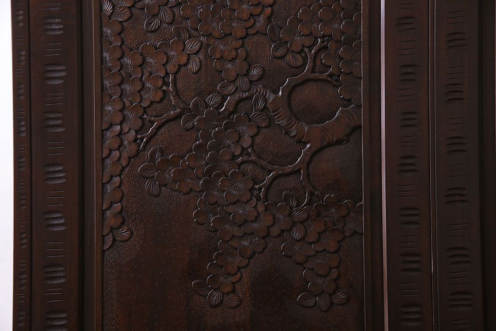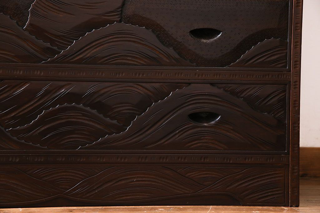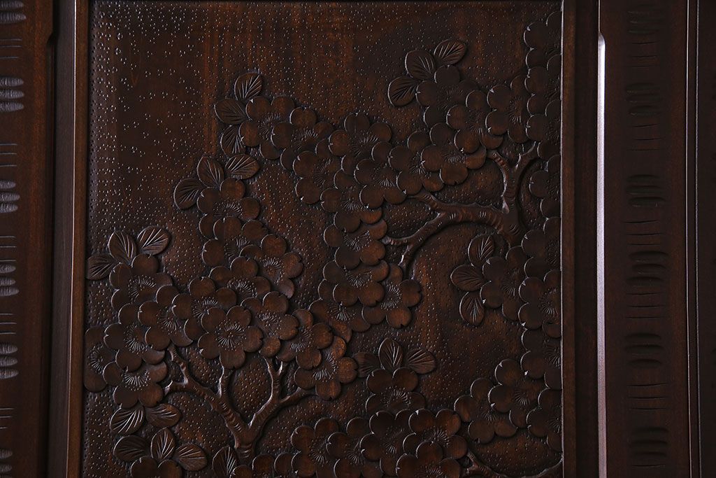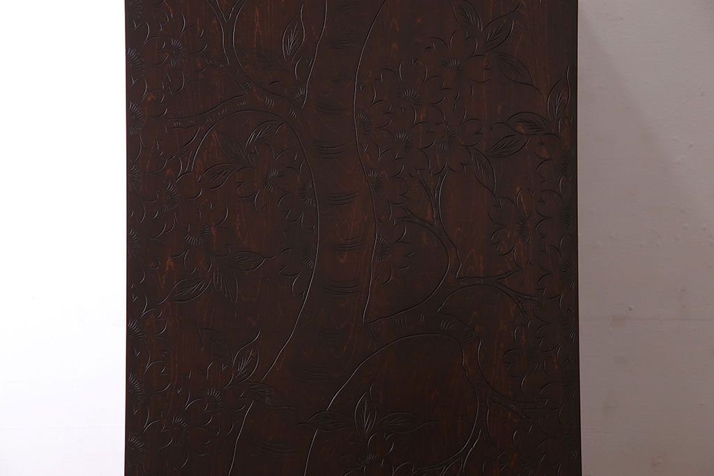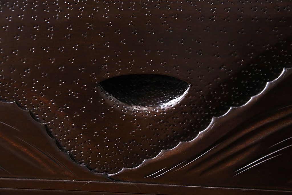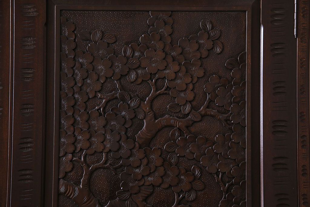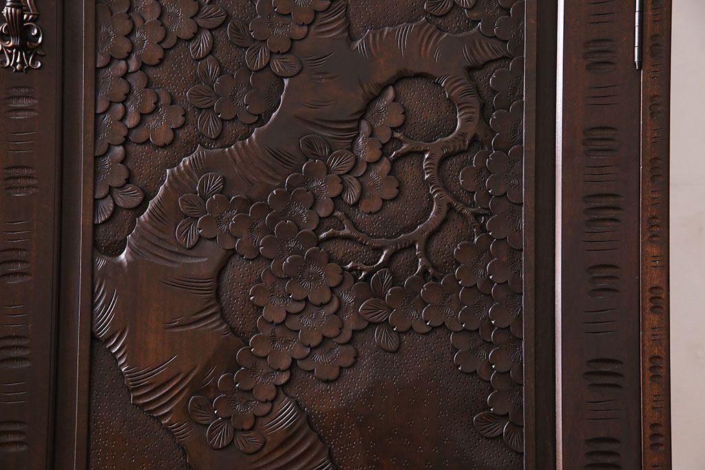 中古 伝統工芸 軽井沢彫りが施された上質なワードローブ(収納棚、洋服タンス、キャビネット)