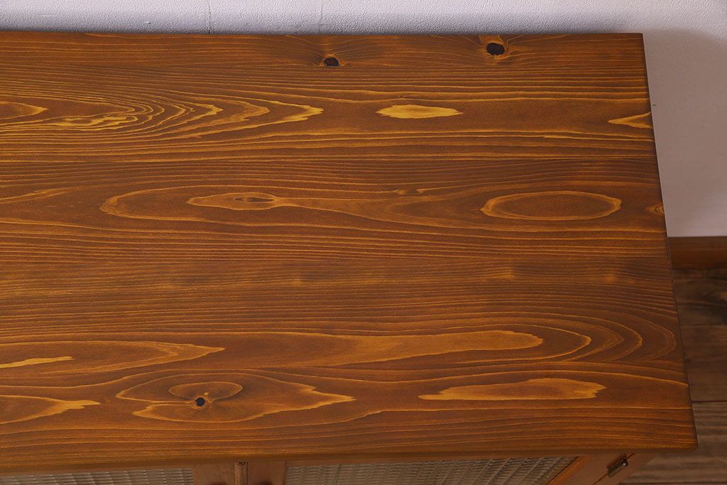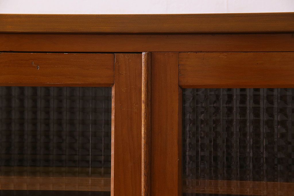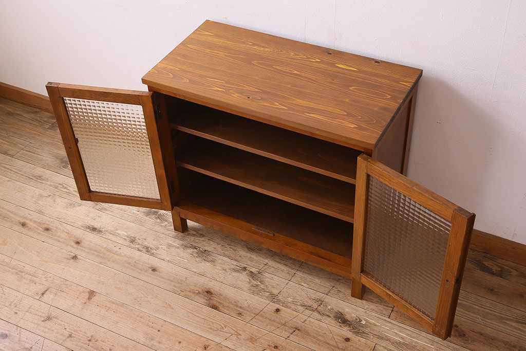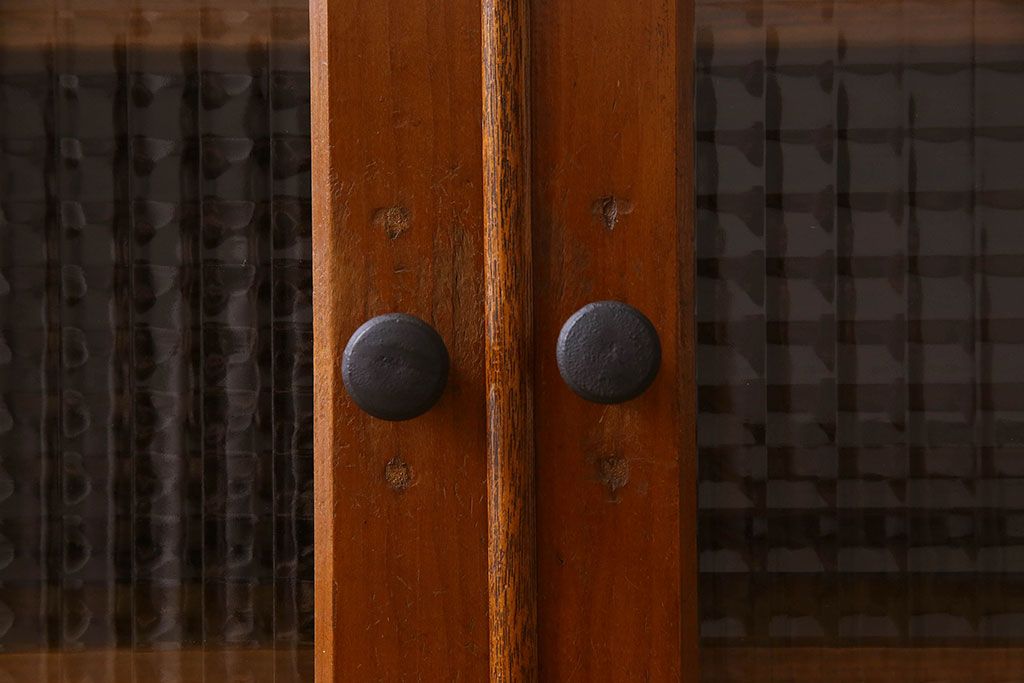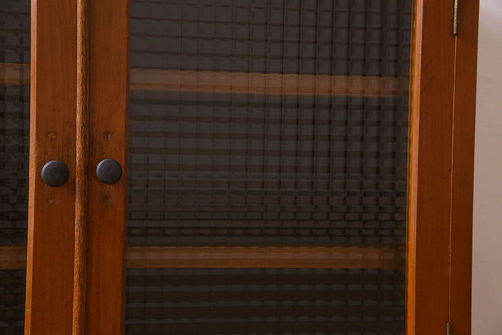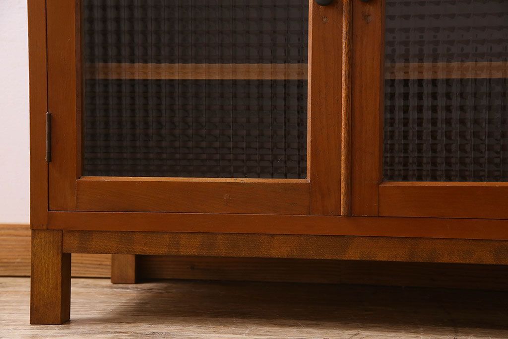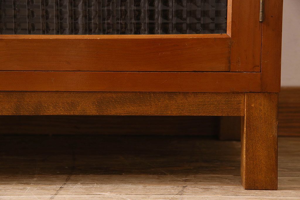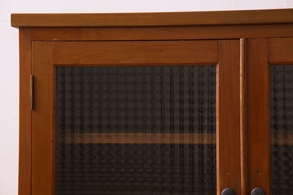 レトロ家具 昭和レトロ チェッカーガラス入りの小振りな収納棚(戸棚、キャビネット)