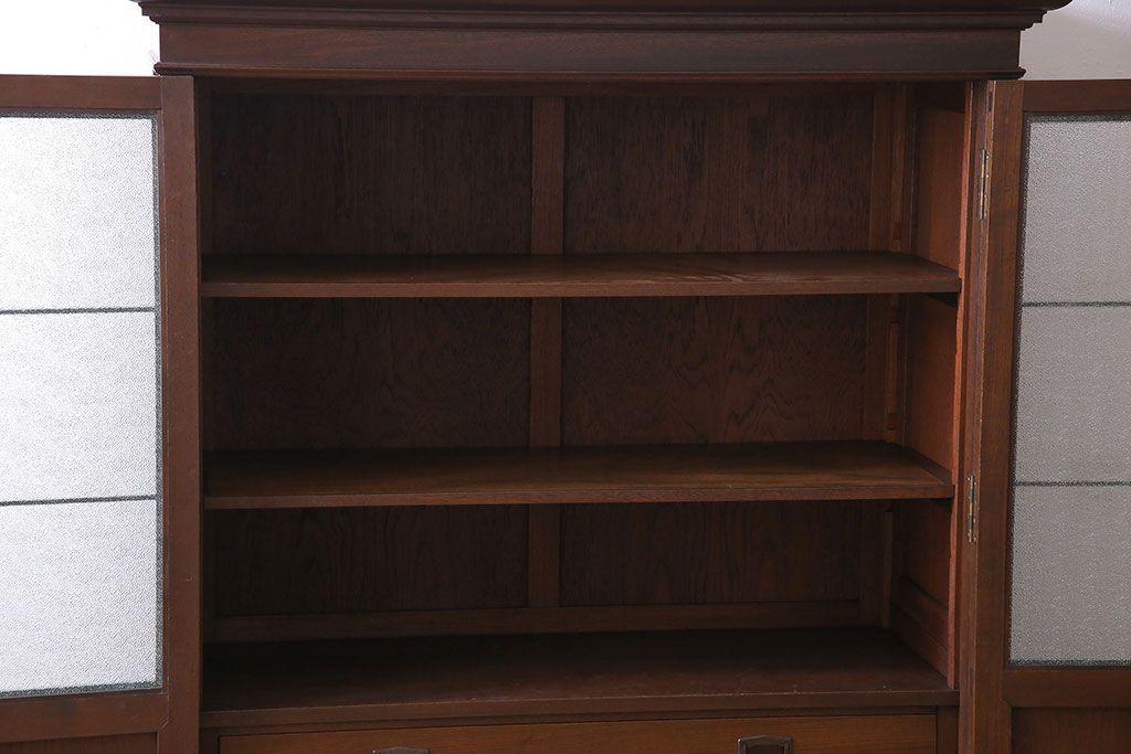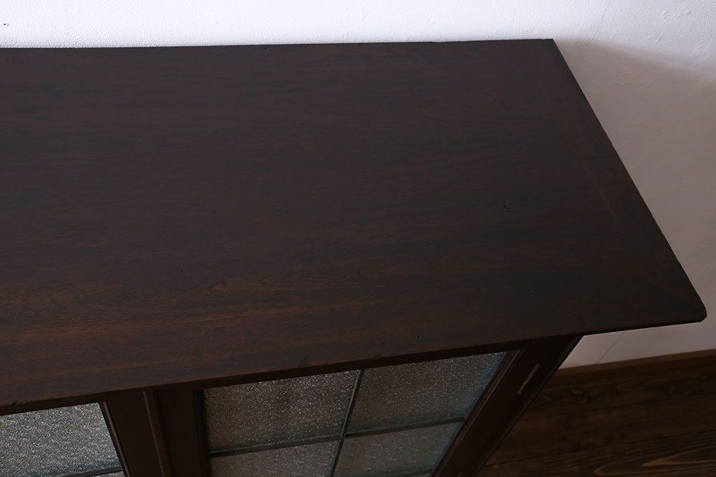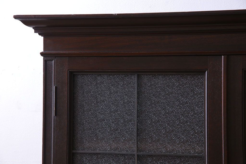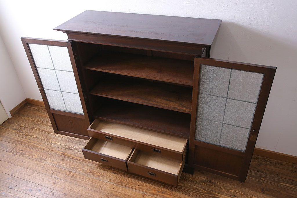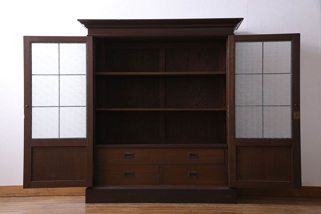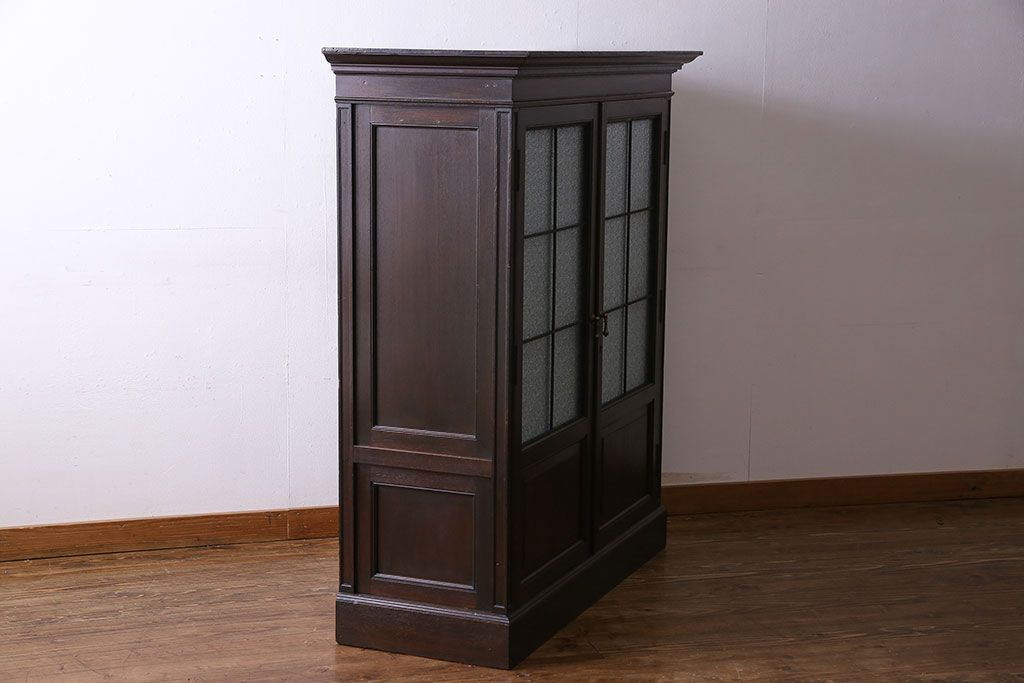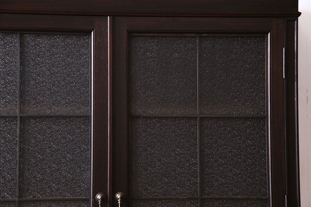 アンティーク家具 和製アンティーク プレスガラス入り 上品さが漂うシックな本箱(収納棚、戸棚、キャビネット)