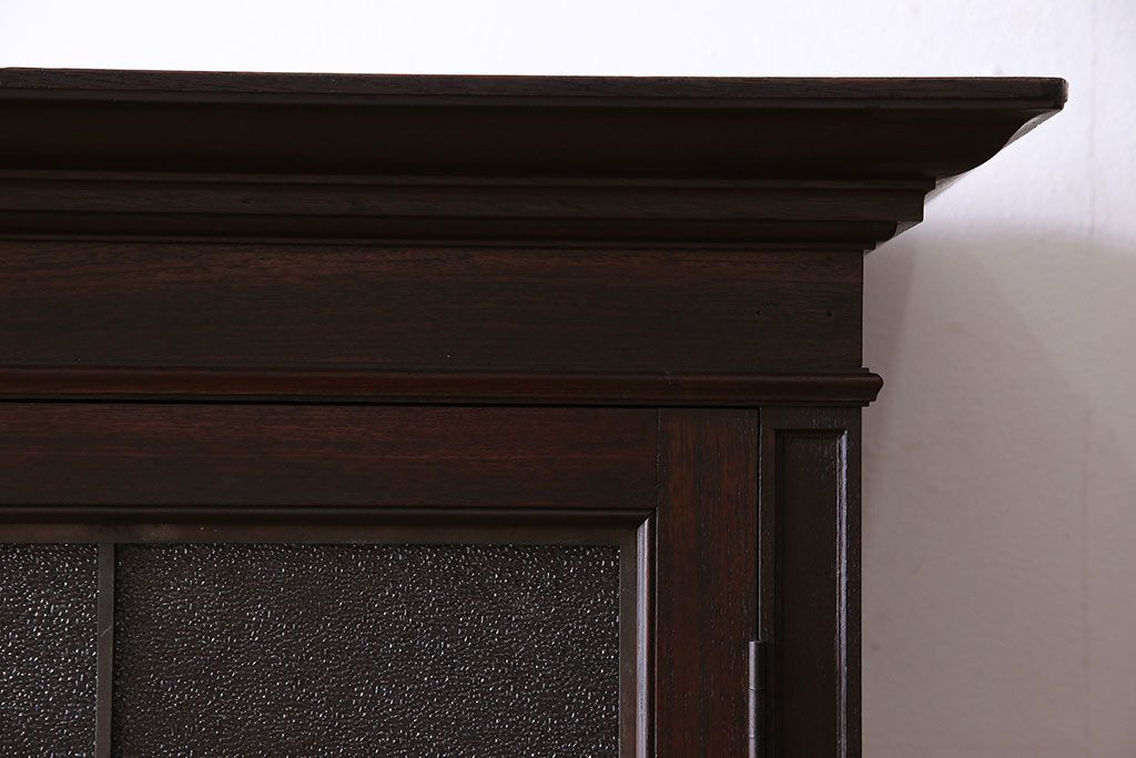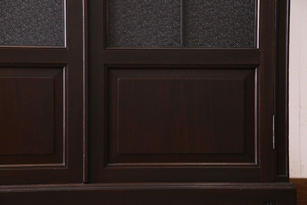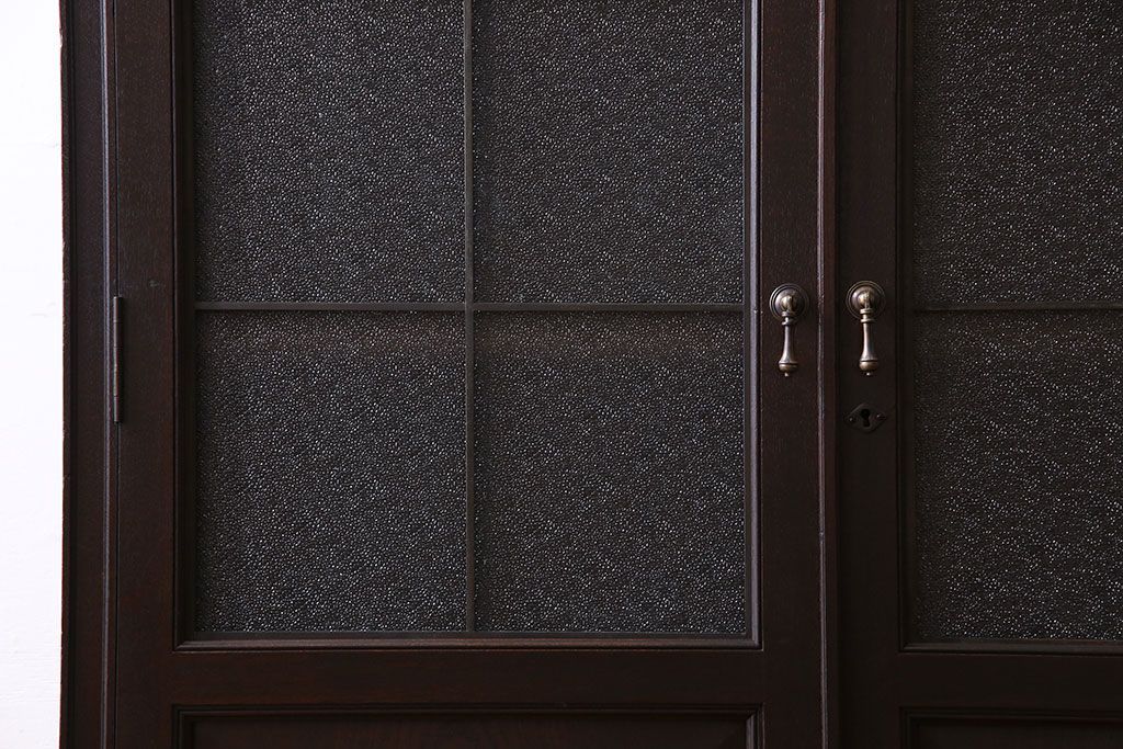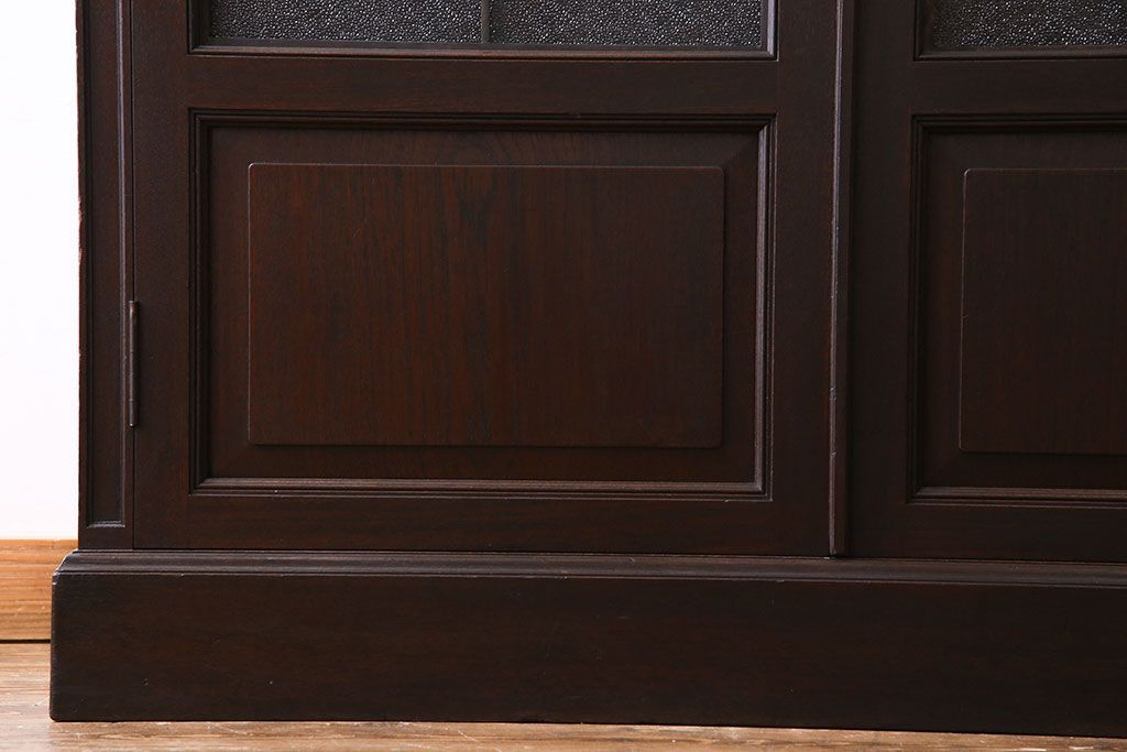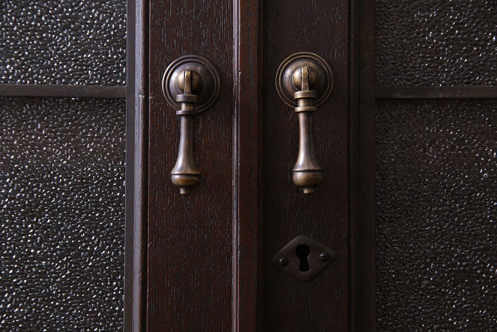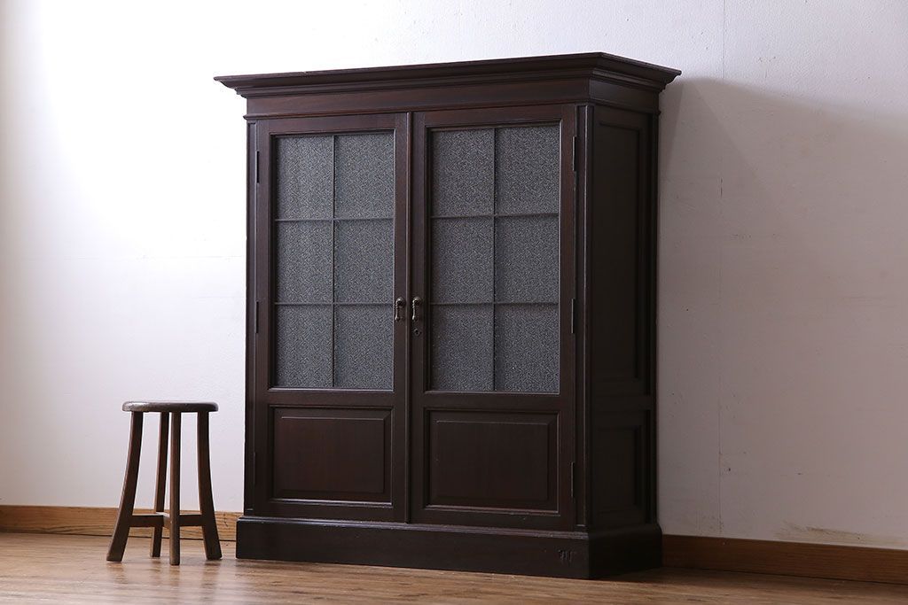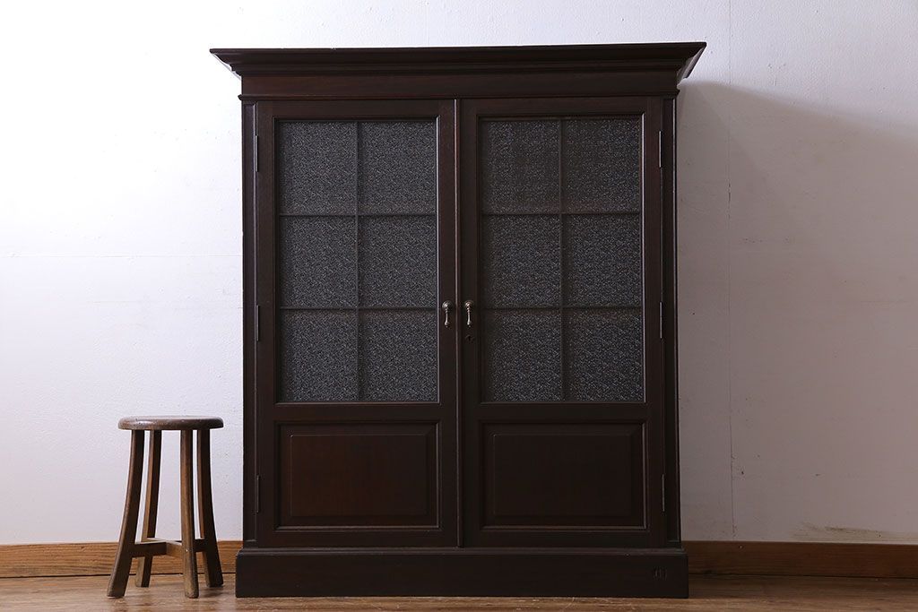 アンティーク家具 和製アンティーク プレスガラス入り 上品さが漂うシックな本箱(収納棚、戸棚、キャビネット)