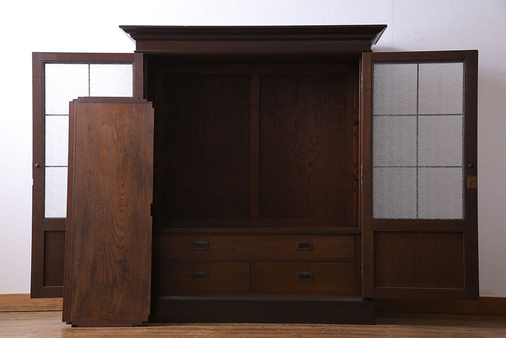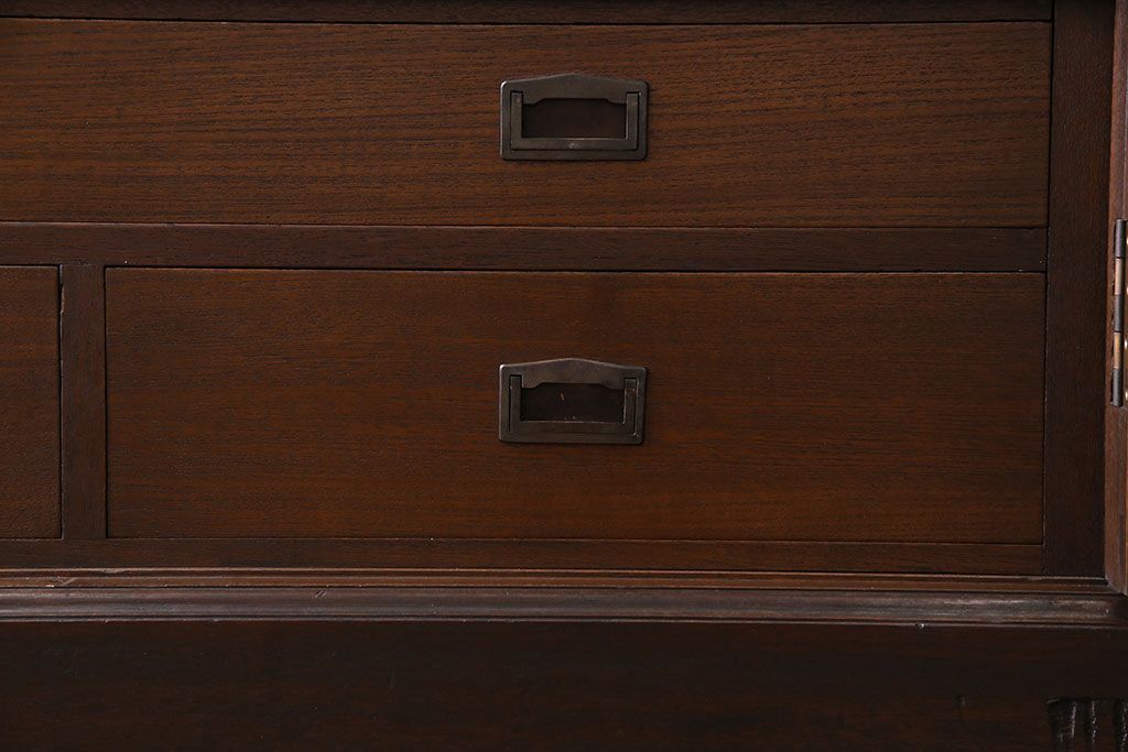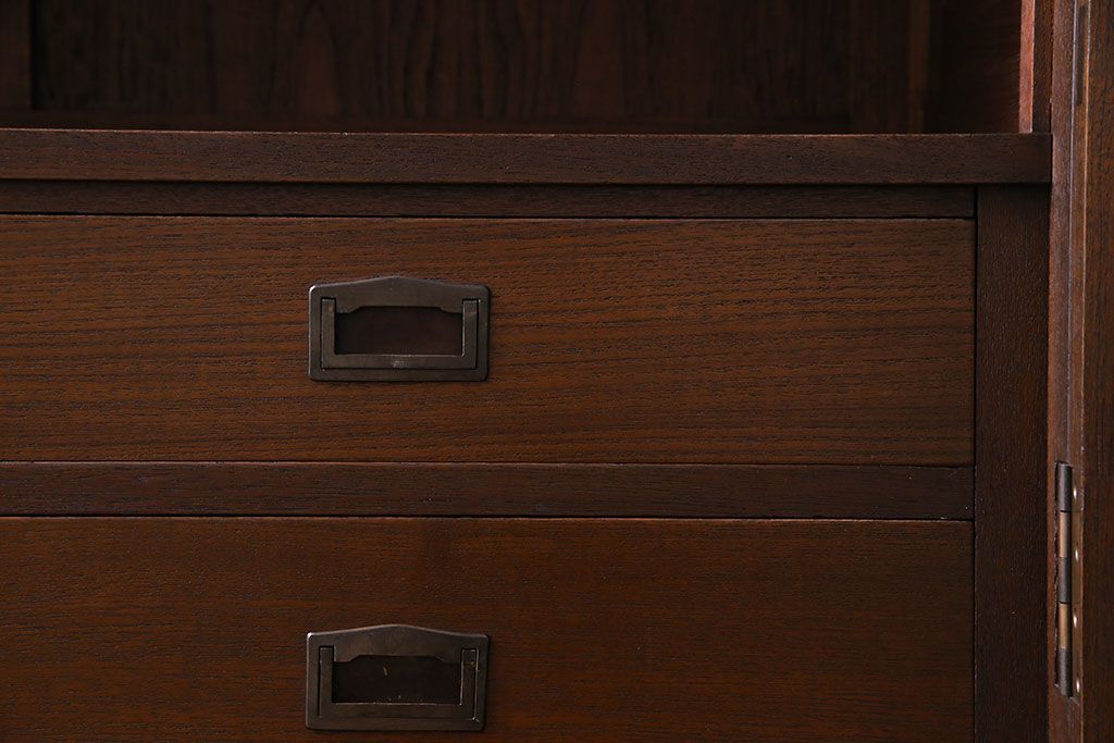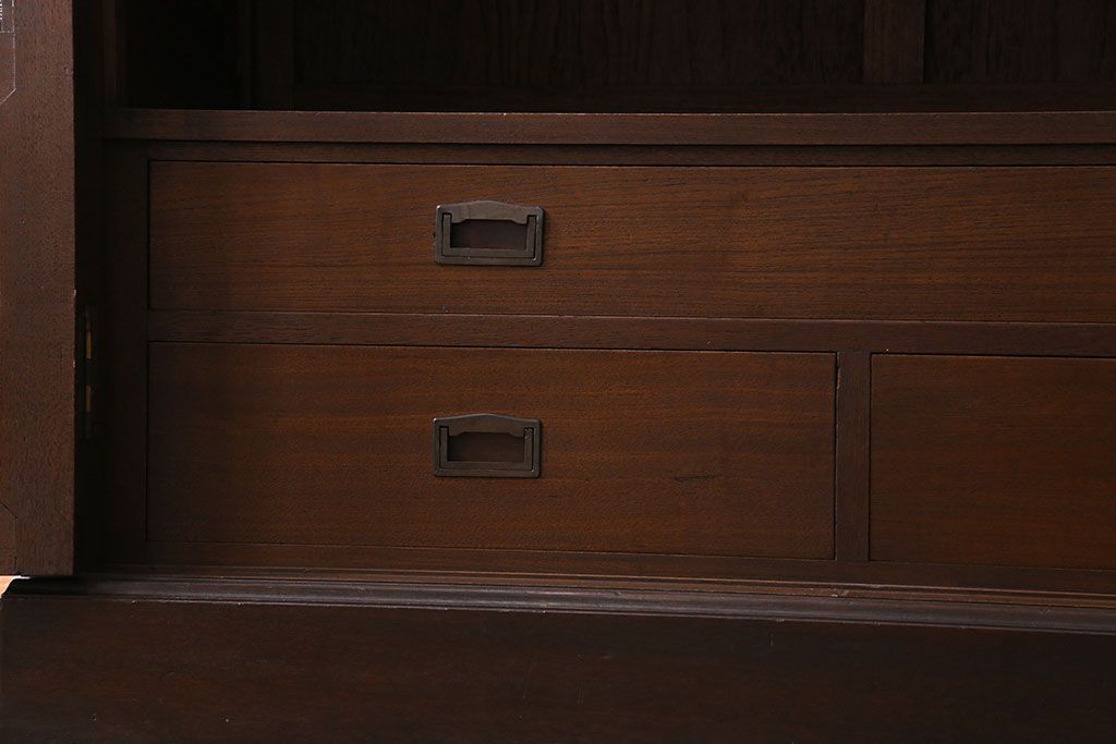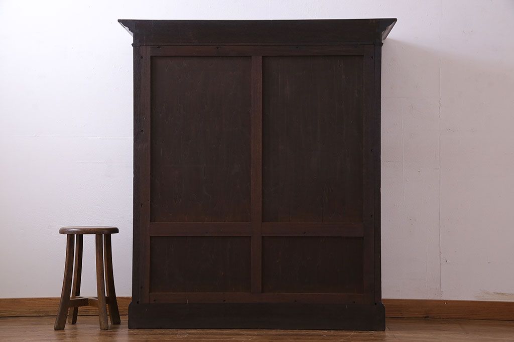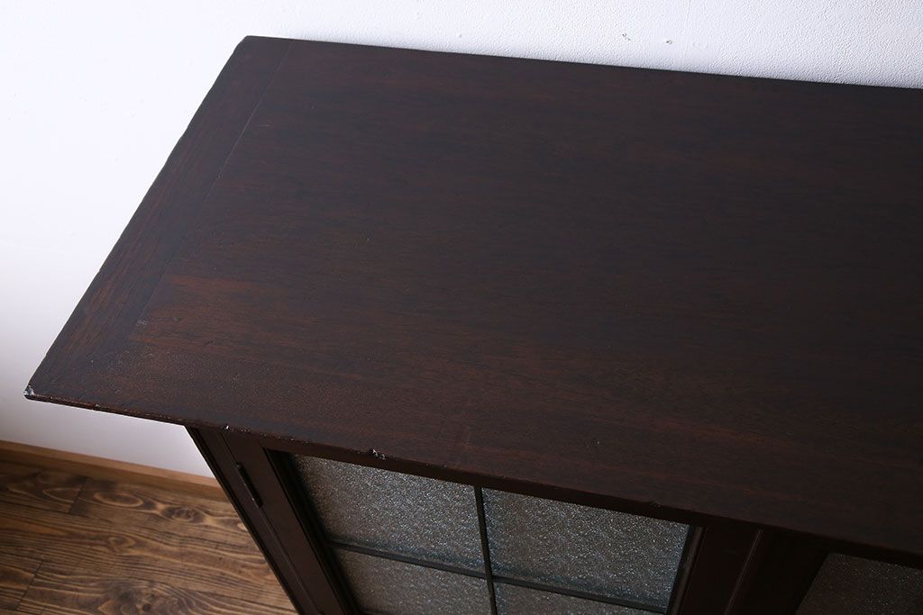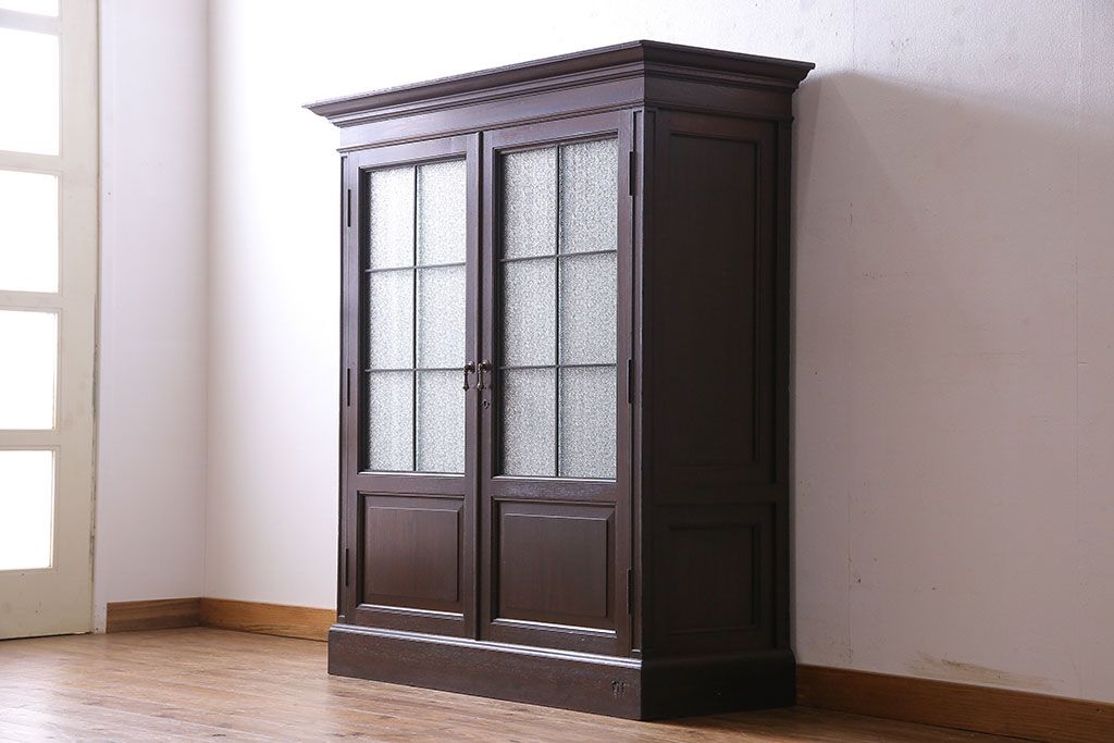 アンティーク家具 和製アンティーク プレスガラス入り 上品さが漂うシックな本箱(収納棚、戸棚、キャビネット)