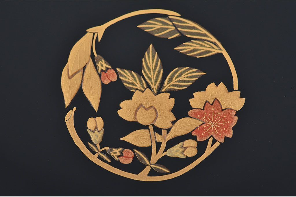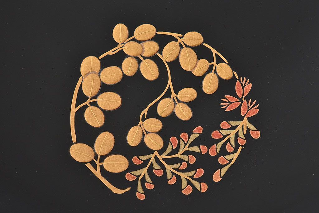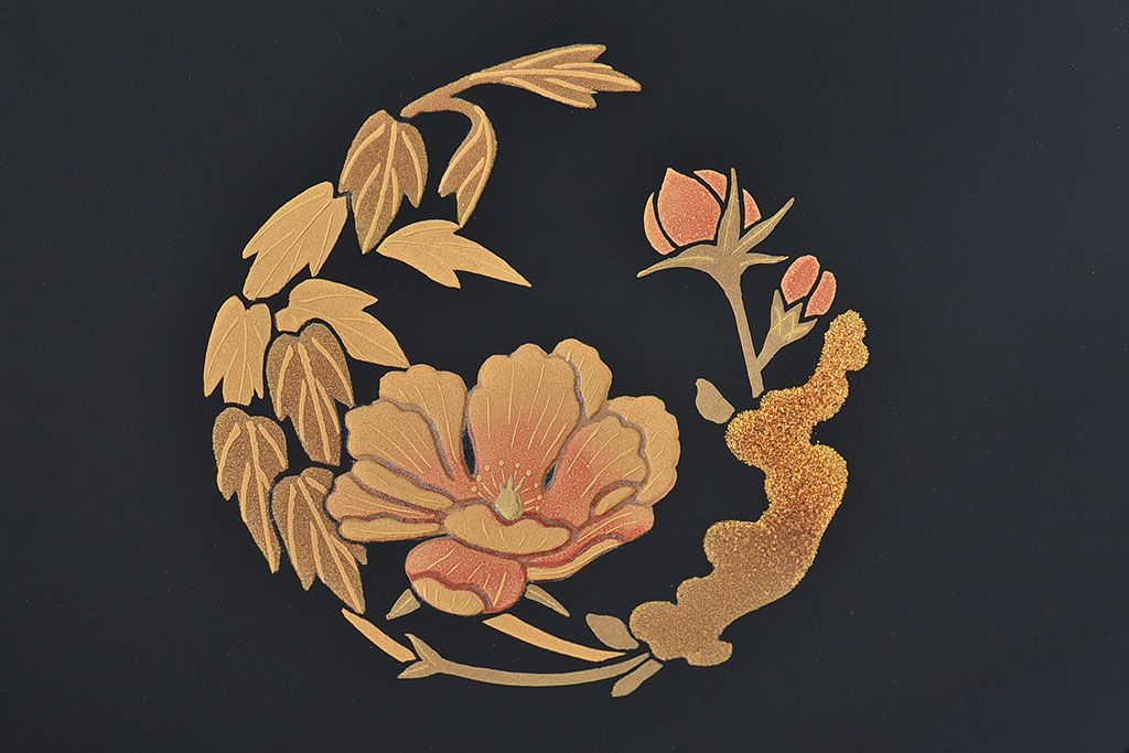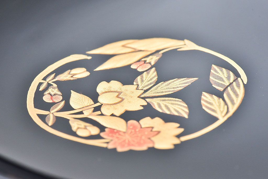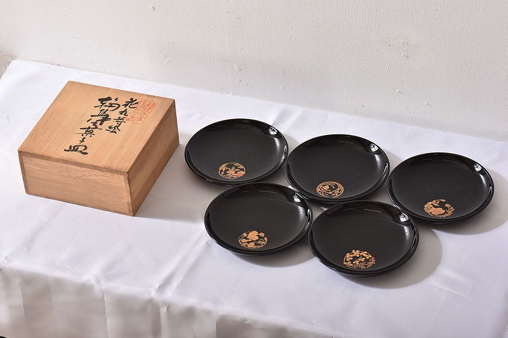 ラフジュ工房> 骨董・美術品> 骨董-漆器 > アンティーク雑貨 輪島塗 春帆造 花丸蒔絵 菓子皿(漆器)5枚セット