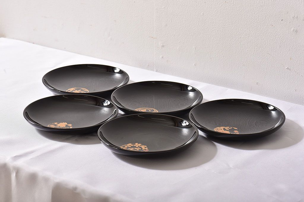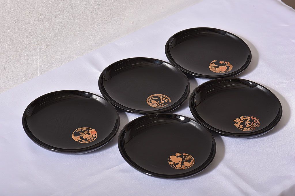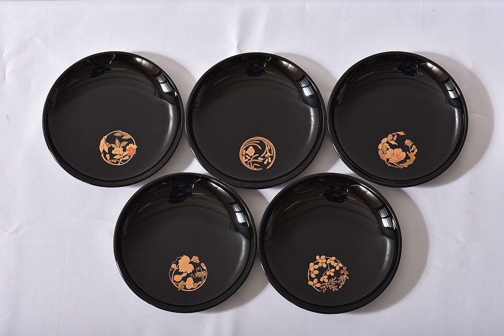 ラフジュ工房> 和食器・茶道具> 皿 > アンティーク雑貨 輪島塗 春帆造 花丸蒔絵 菓子皿(漆器)5枚セット