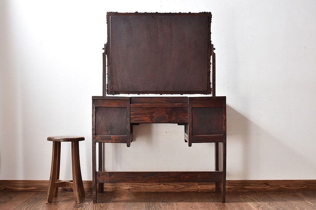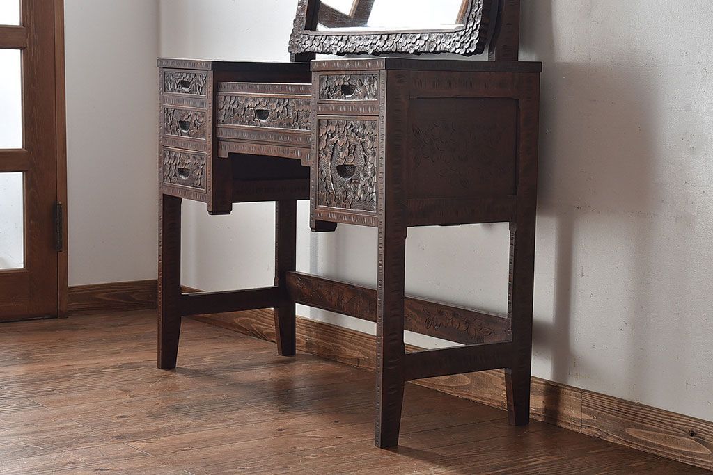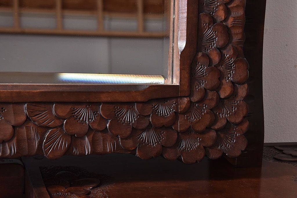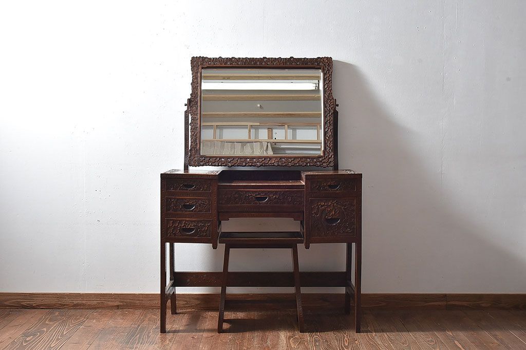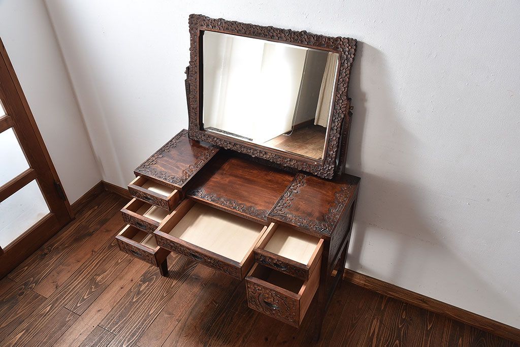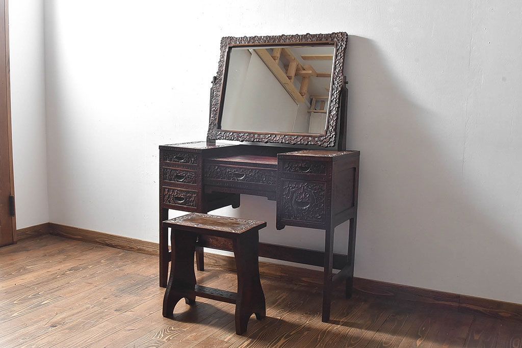 軽井沢彫り 桜の彫りが華やかな椅子付きドレッサー