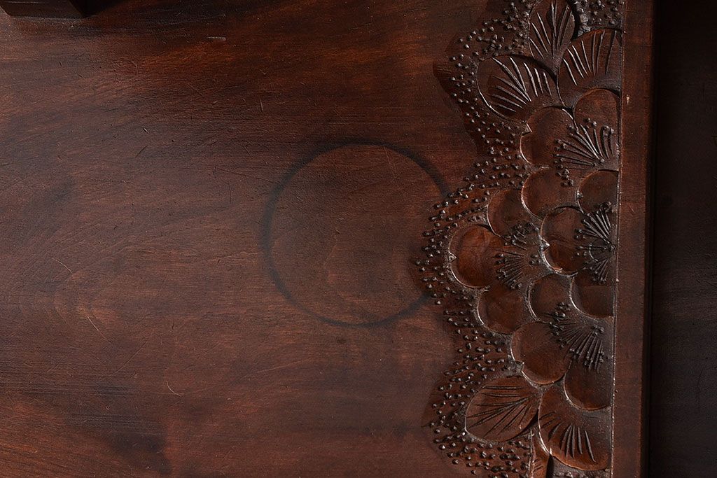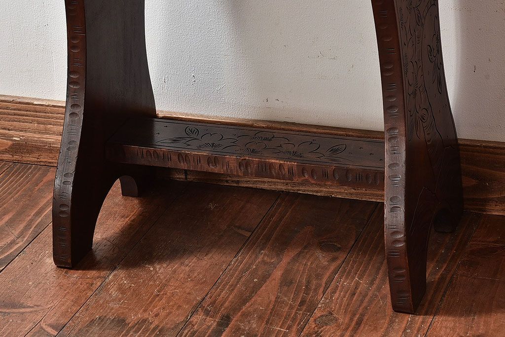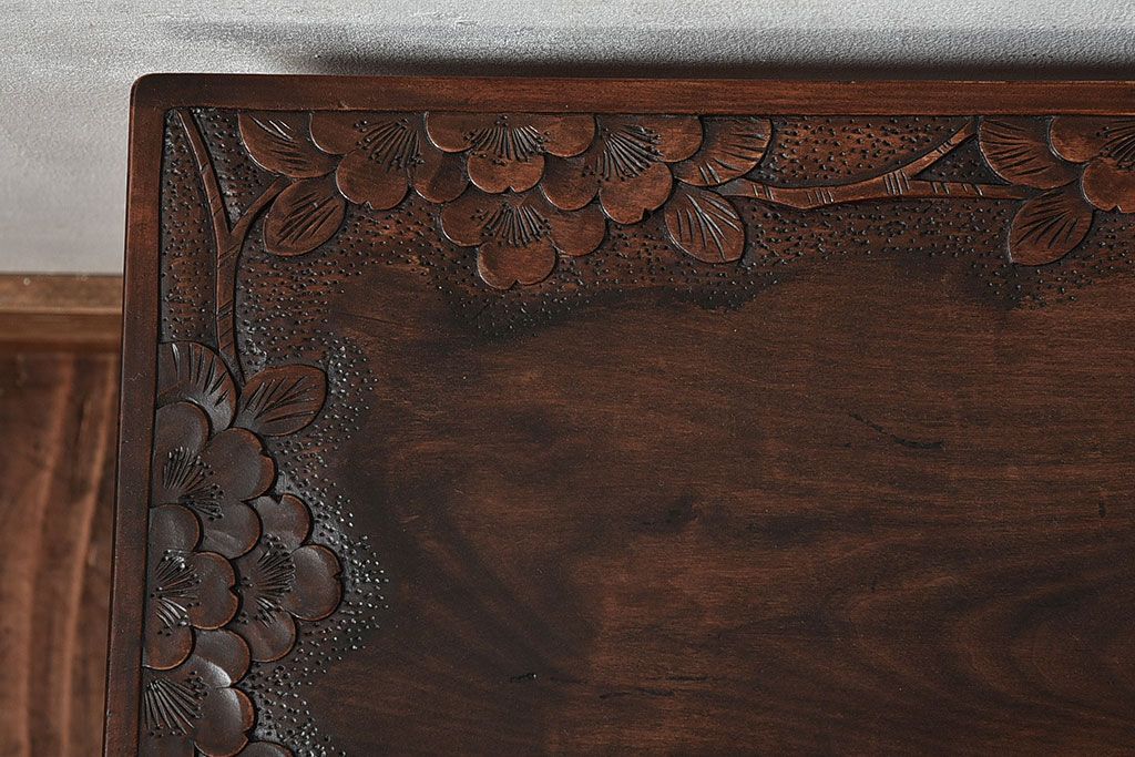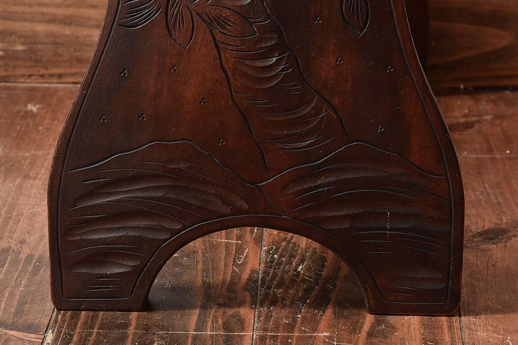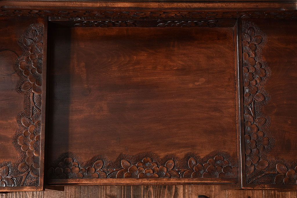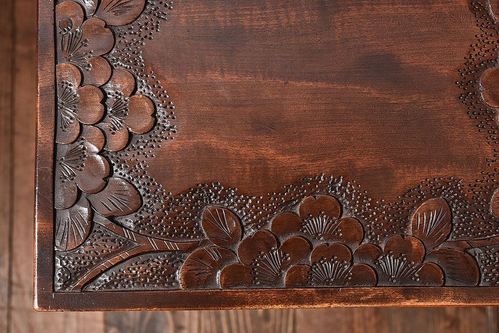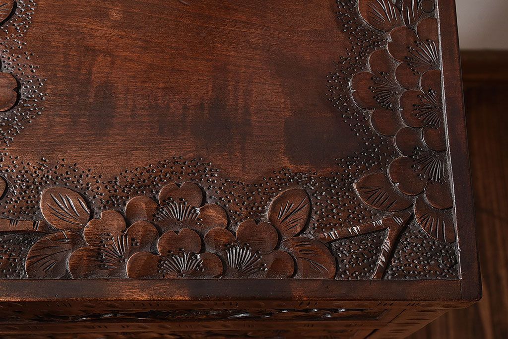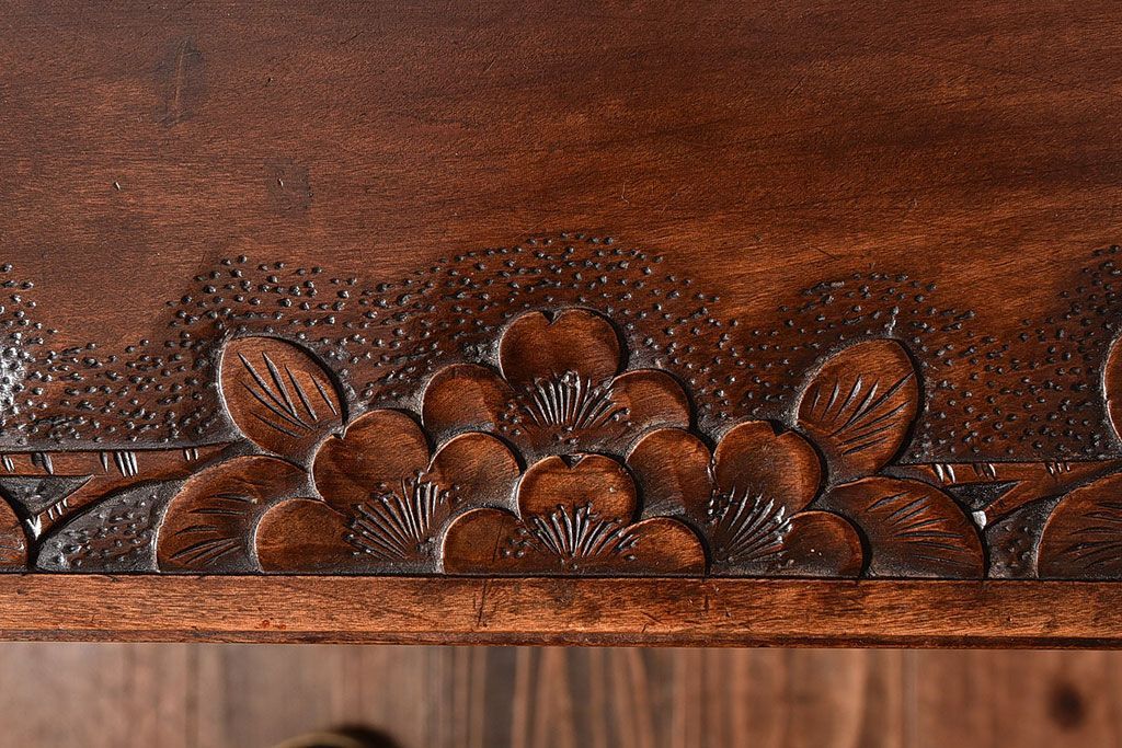 側面や脚部など、細かい部分にまで彫りが施されています。