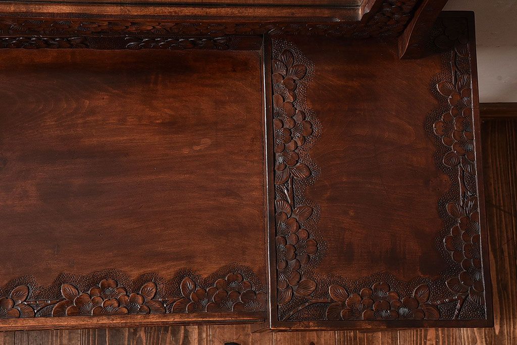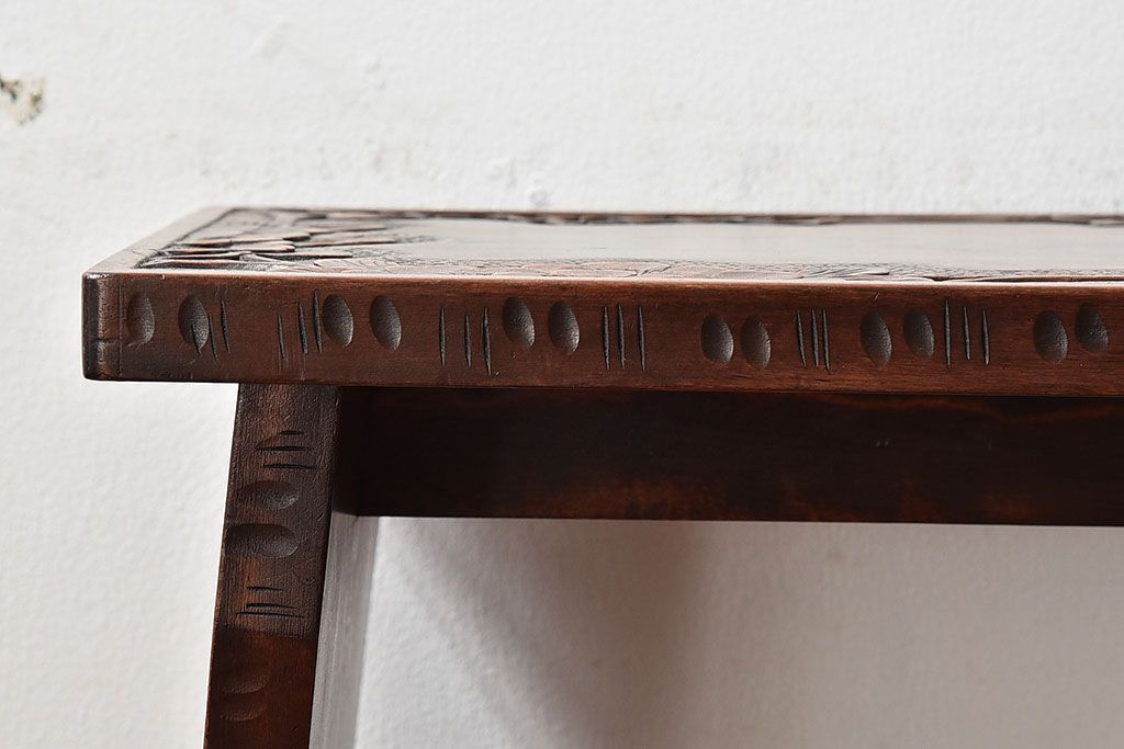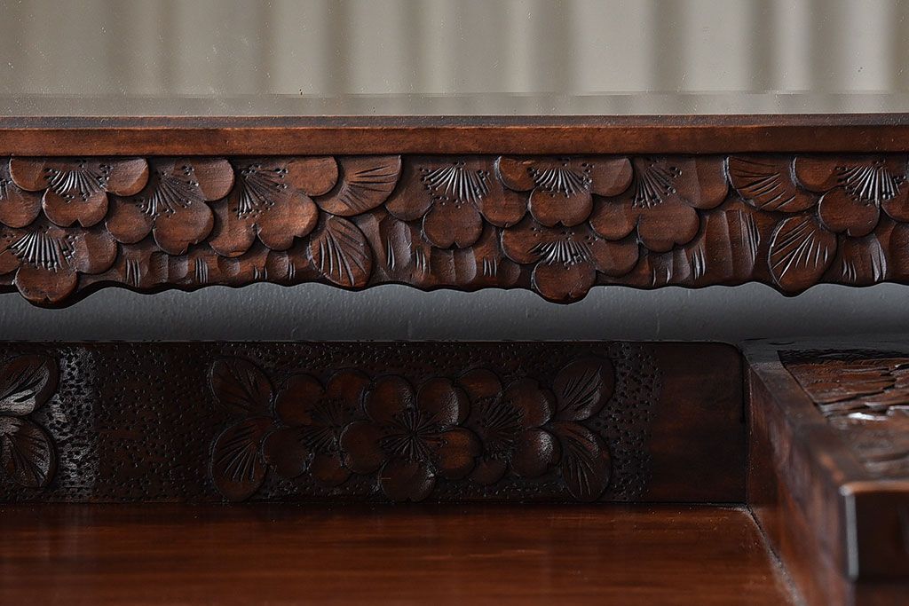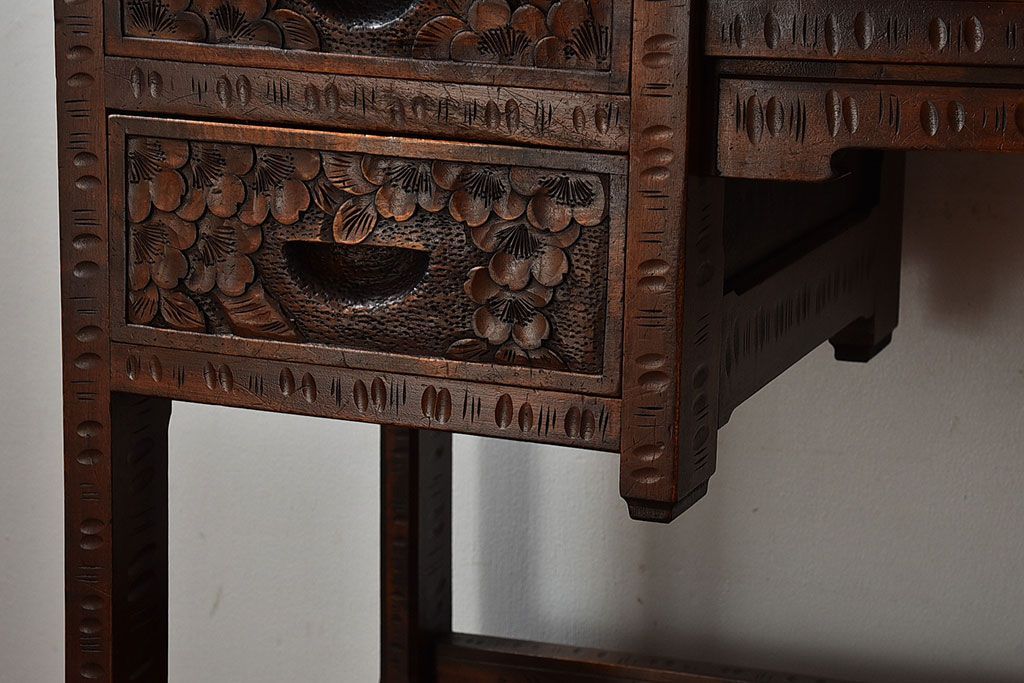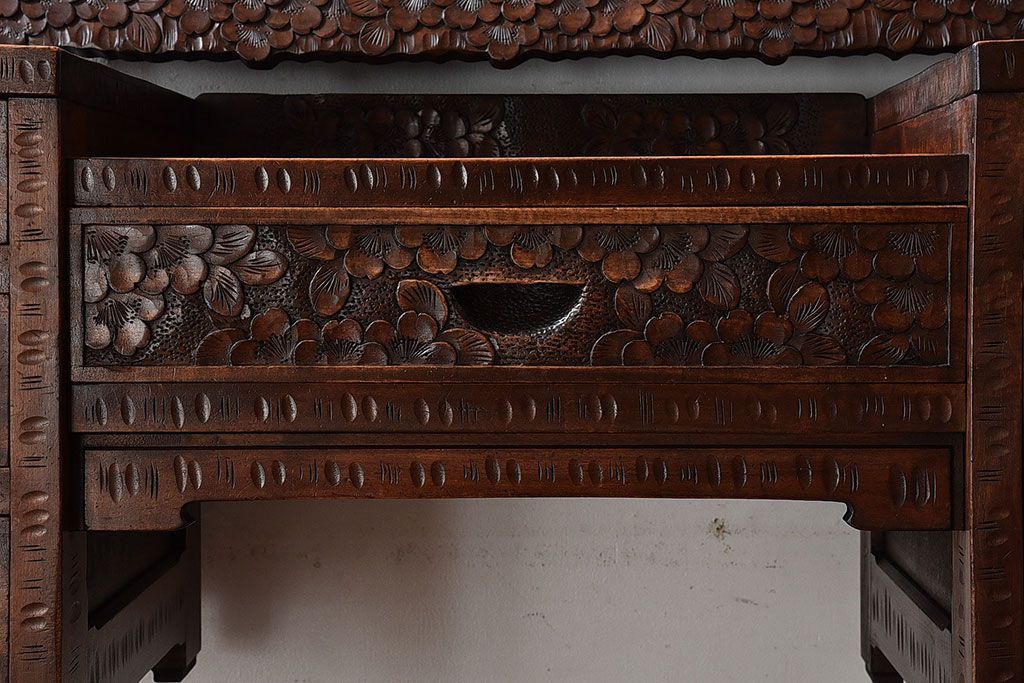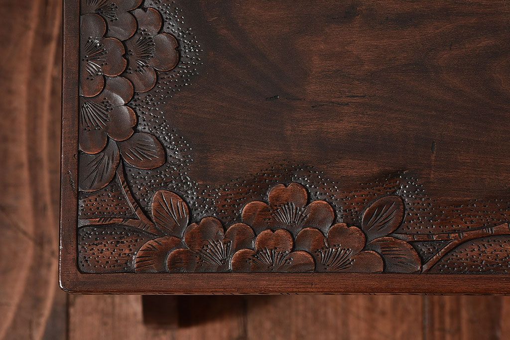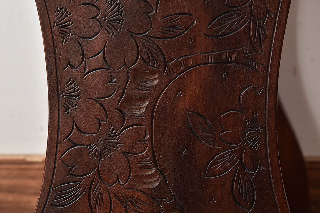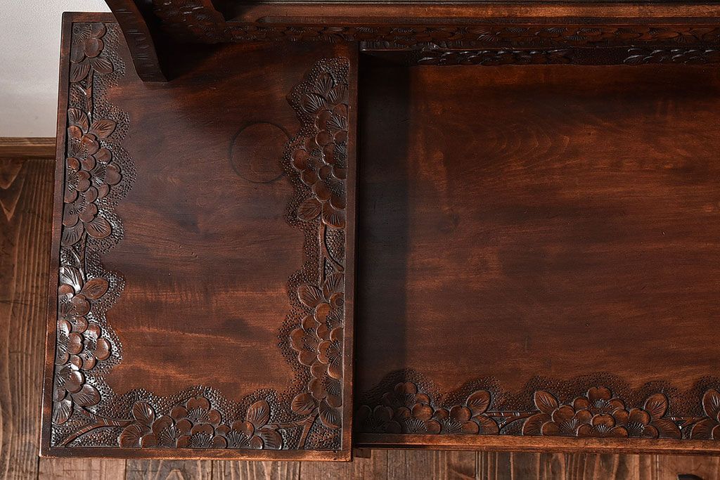 側面や脚部など、細かい部分にまで彫りが施されています。