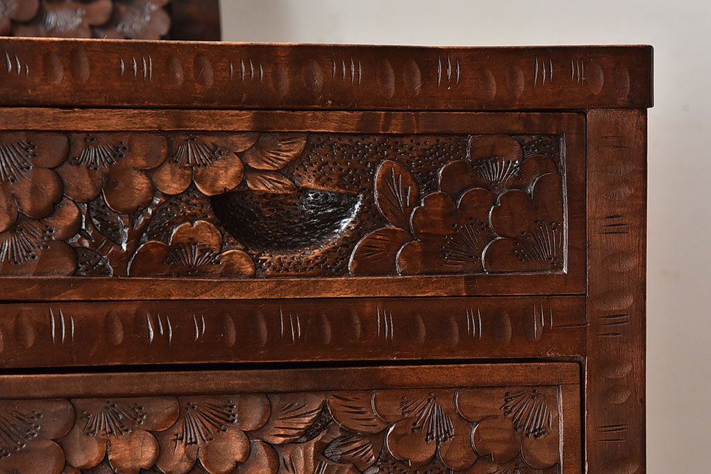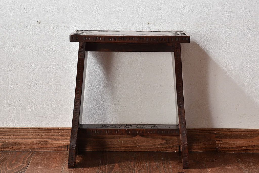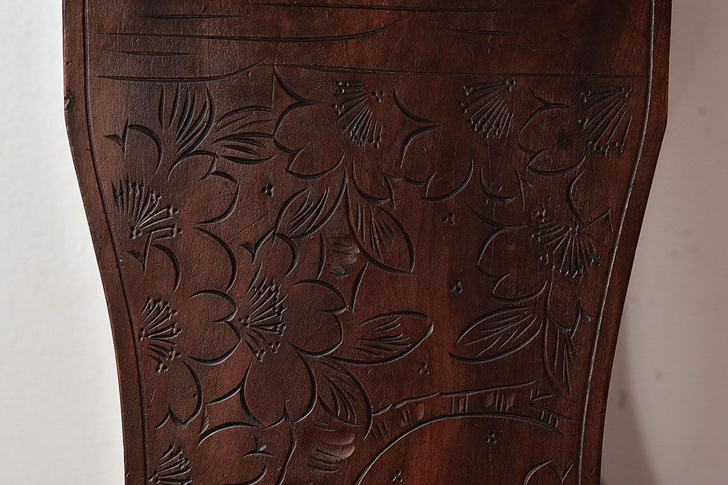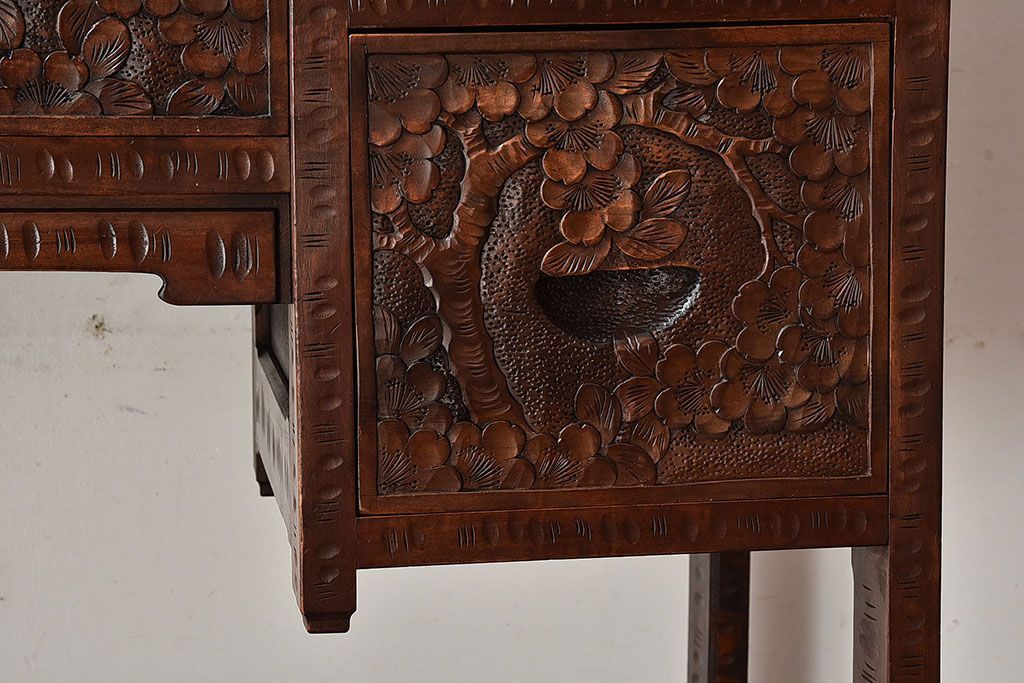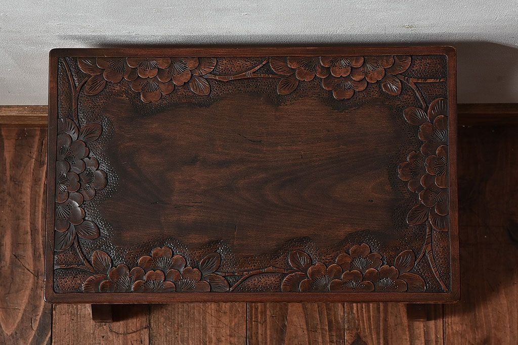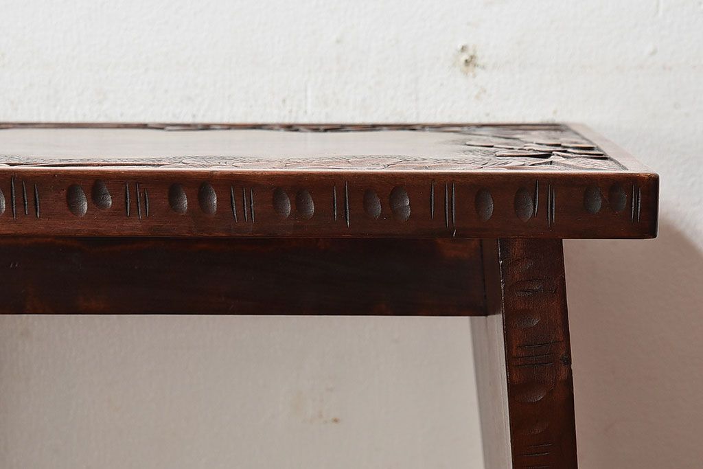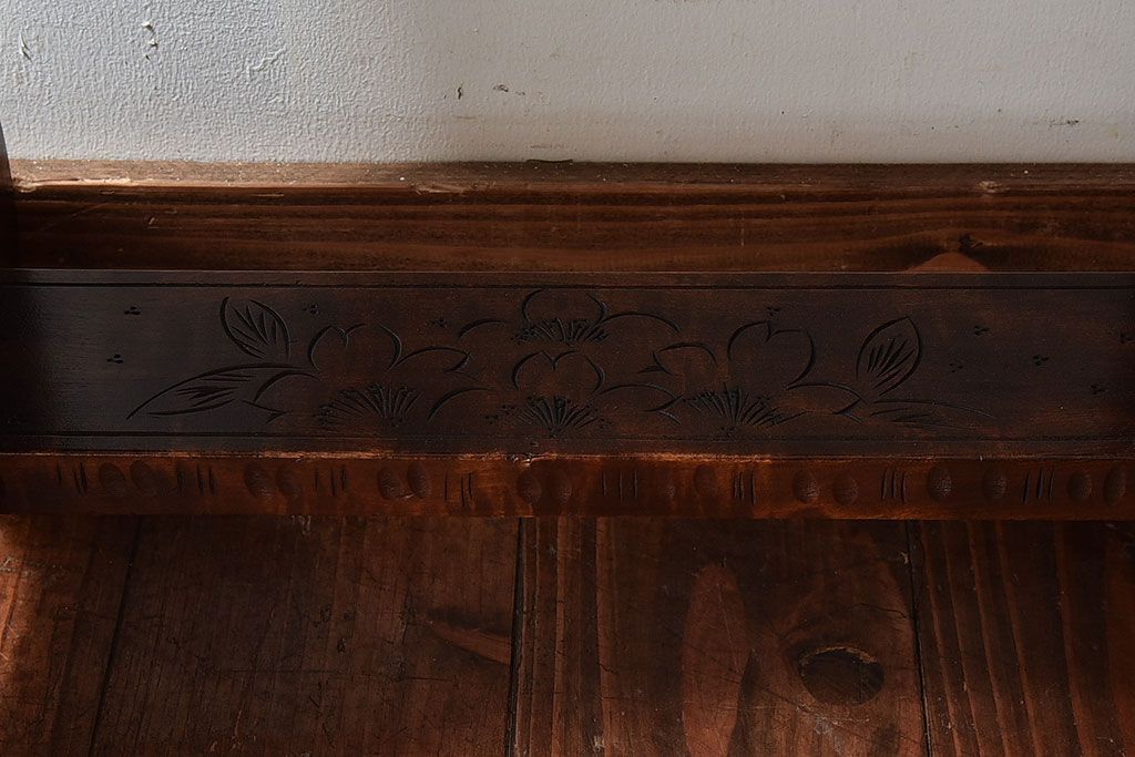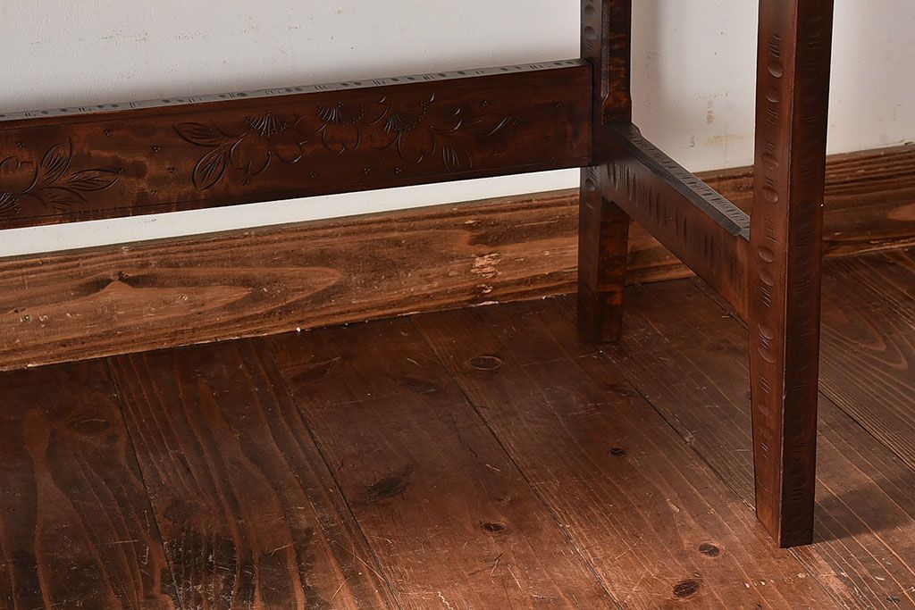 側面や脚部など、細かい部分にまで彫りが施されています。