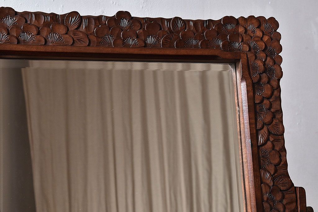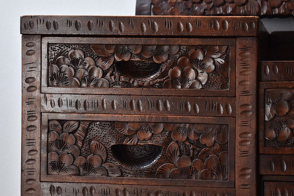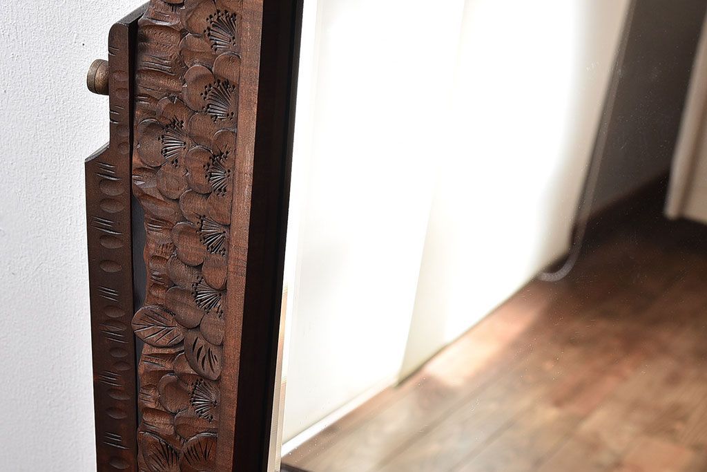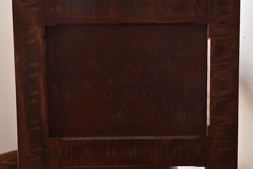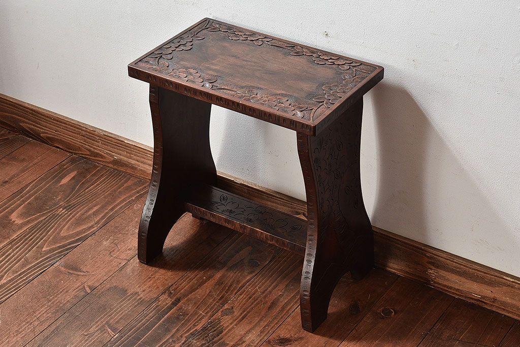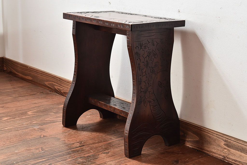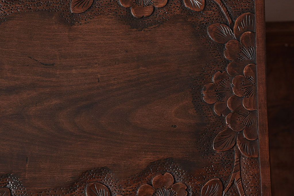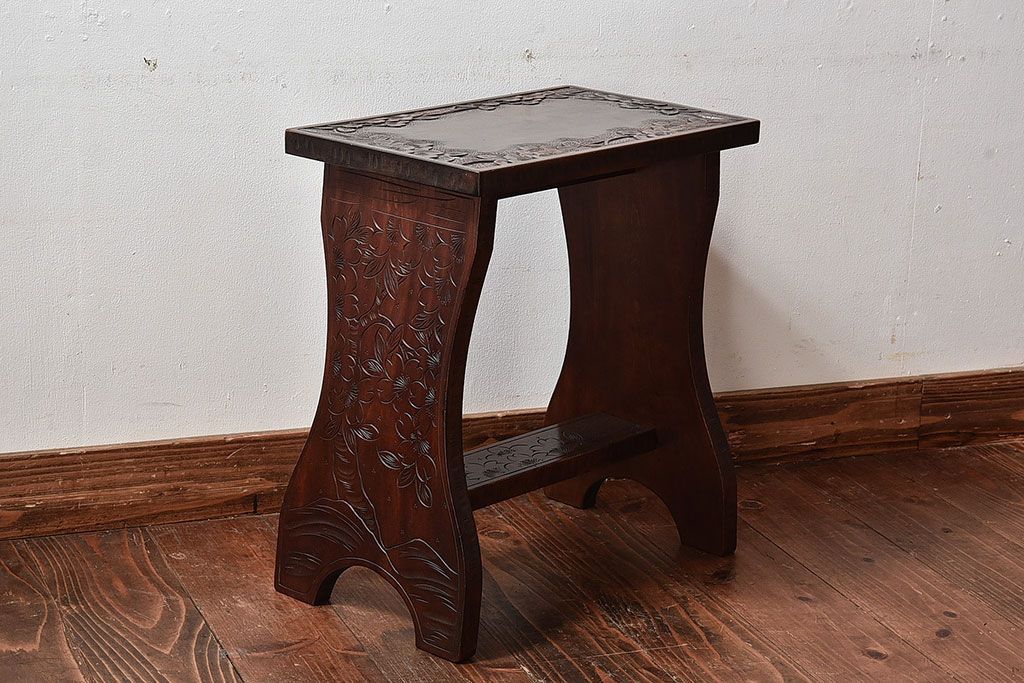 側面や脚部など、細かい部分にまで彫りが施されています。