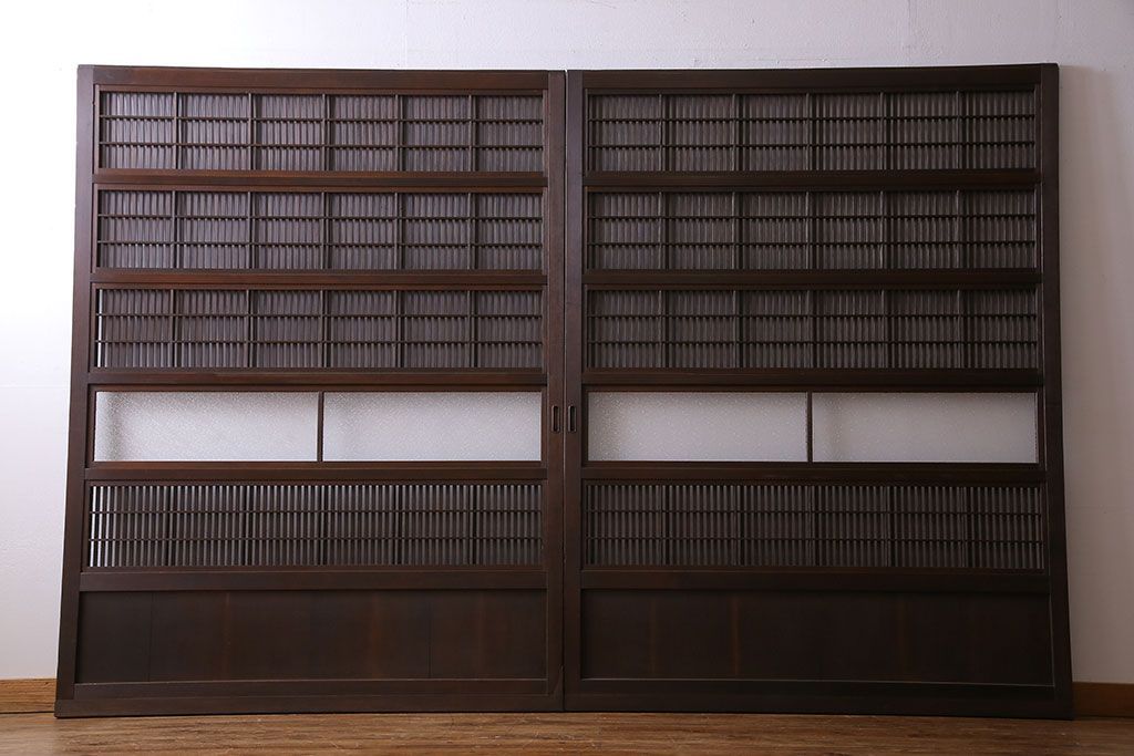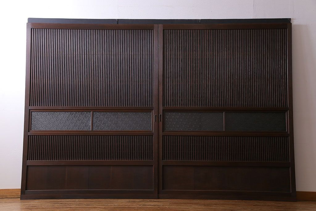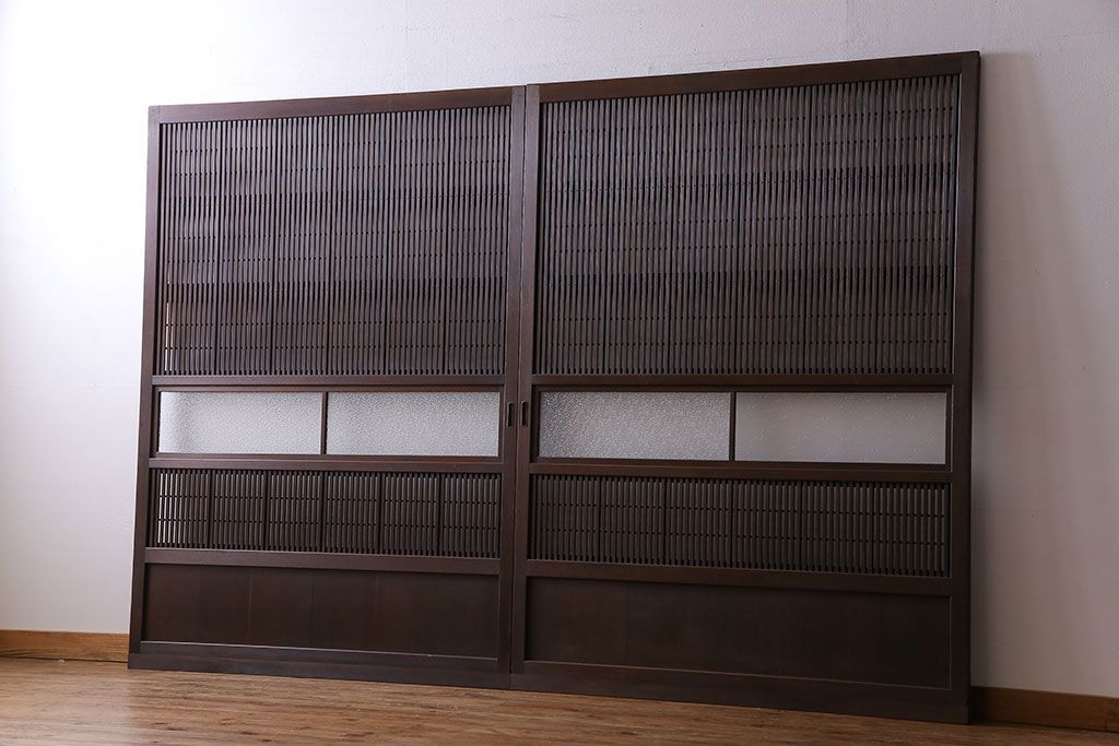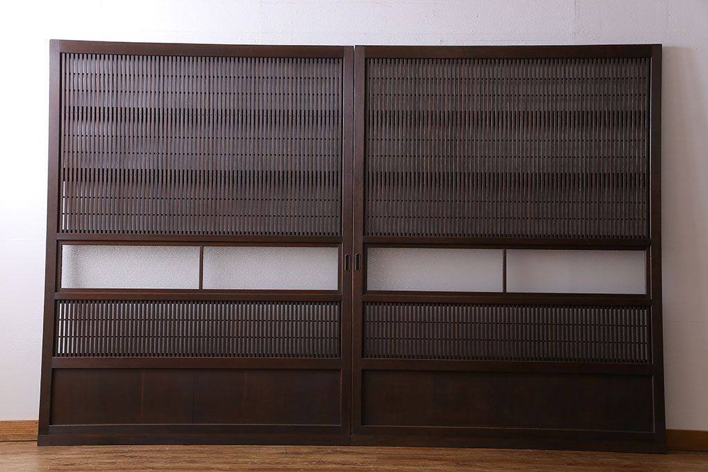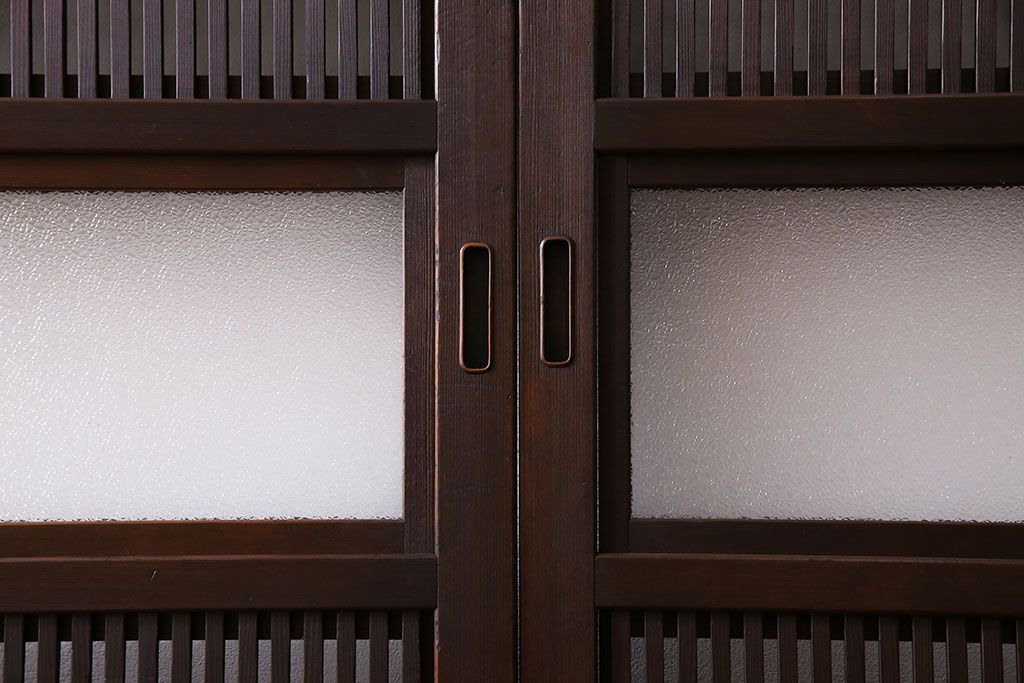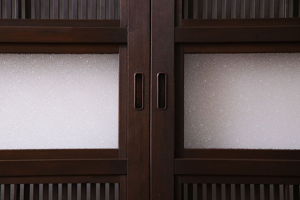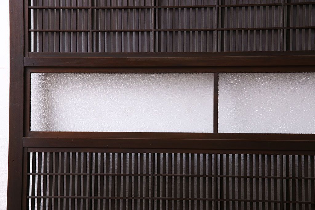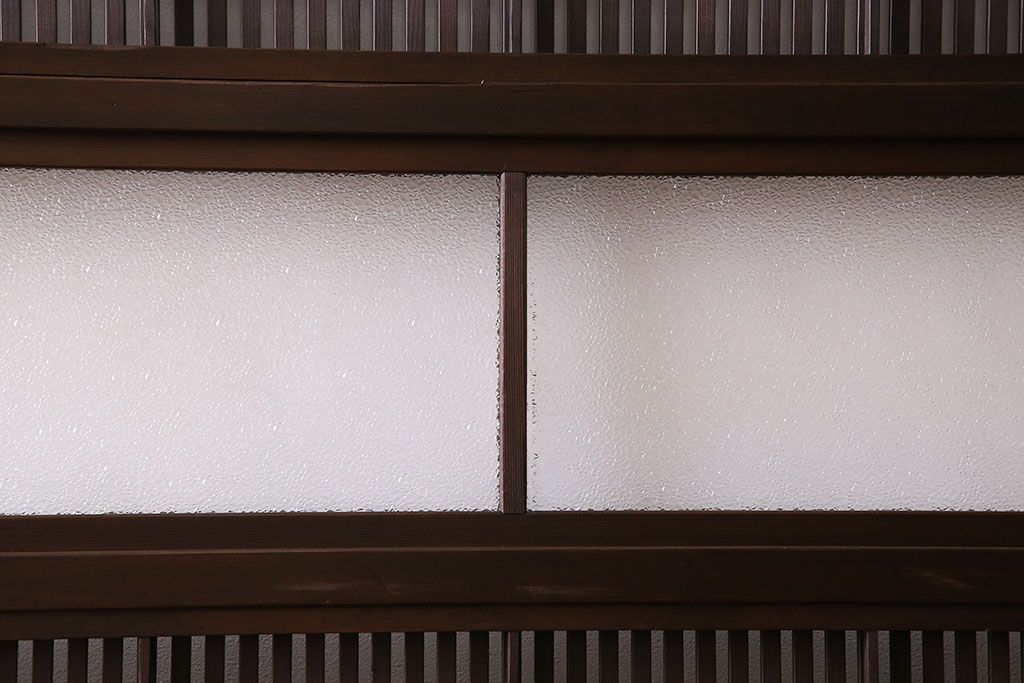 和製アンティーク 裏障子付き モダンな雰囲気漂うガラス帯格子戸(引き戸、建具)2枚セット