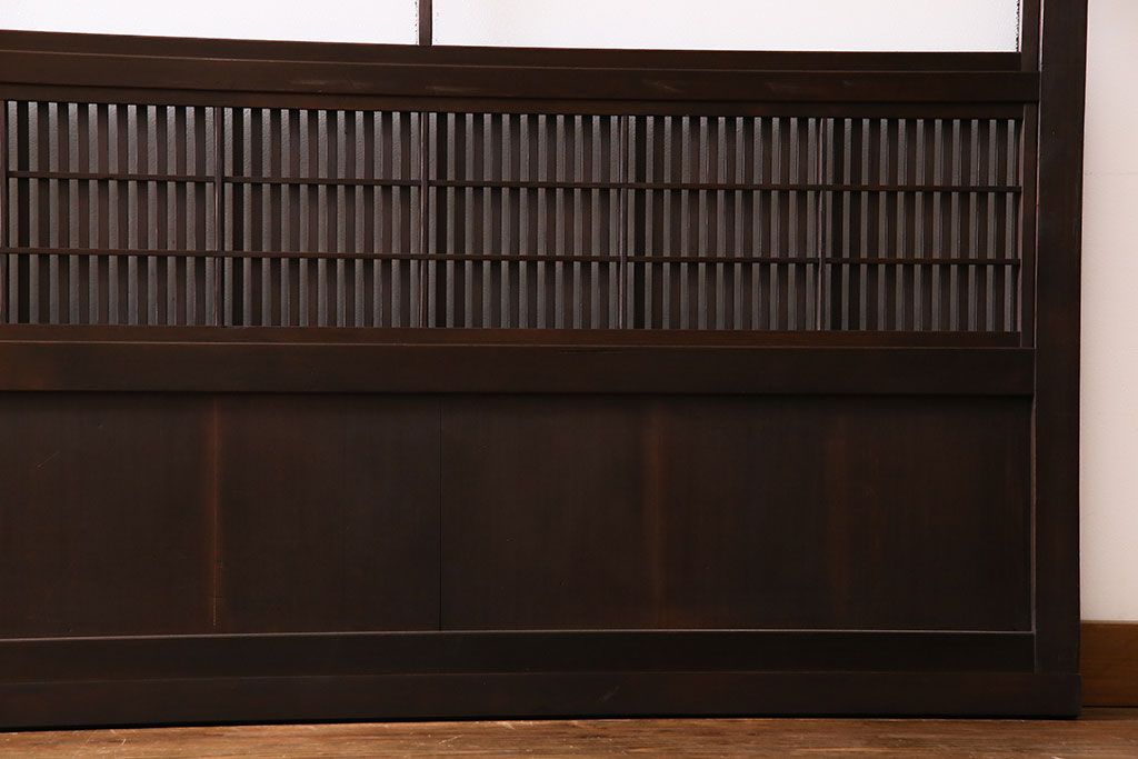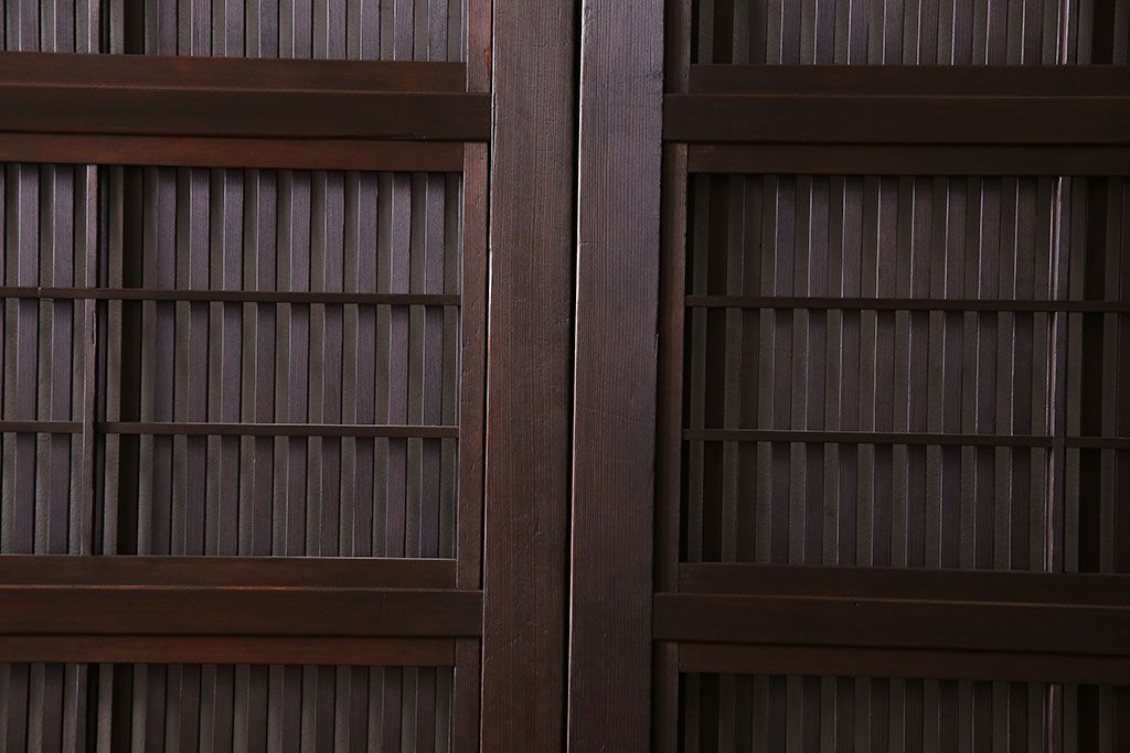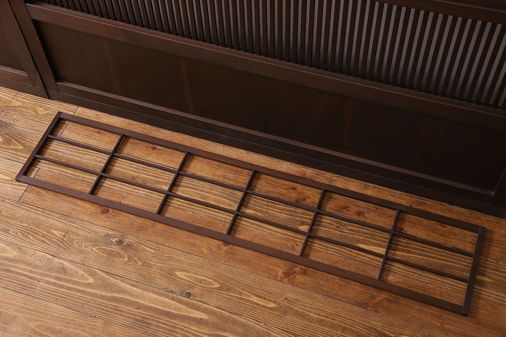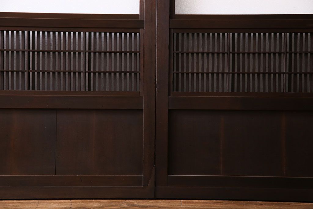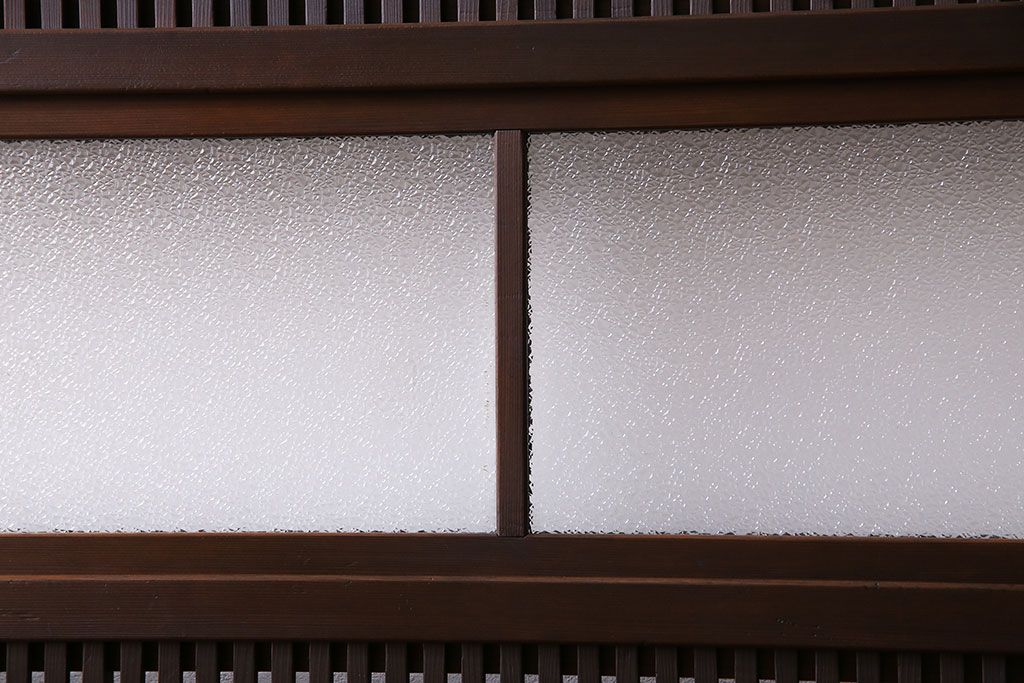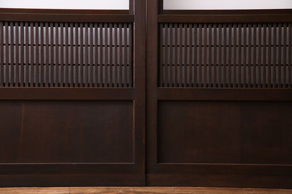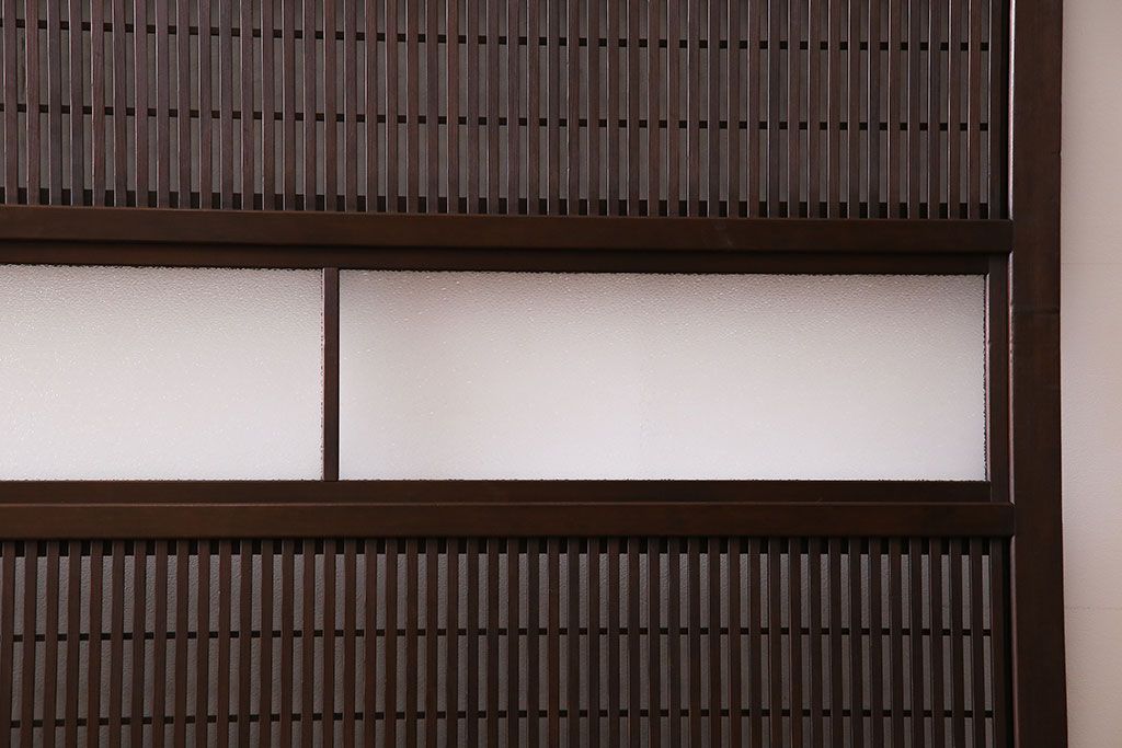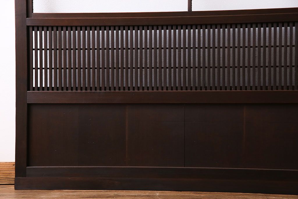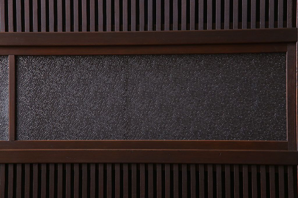 和製アンティーク 裏障子付き モダンな雰囲気漂うガラス帯格子戸(引き戸、建具)2枚セット