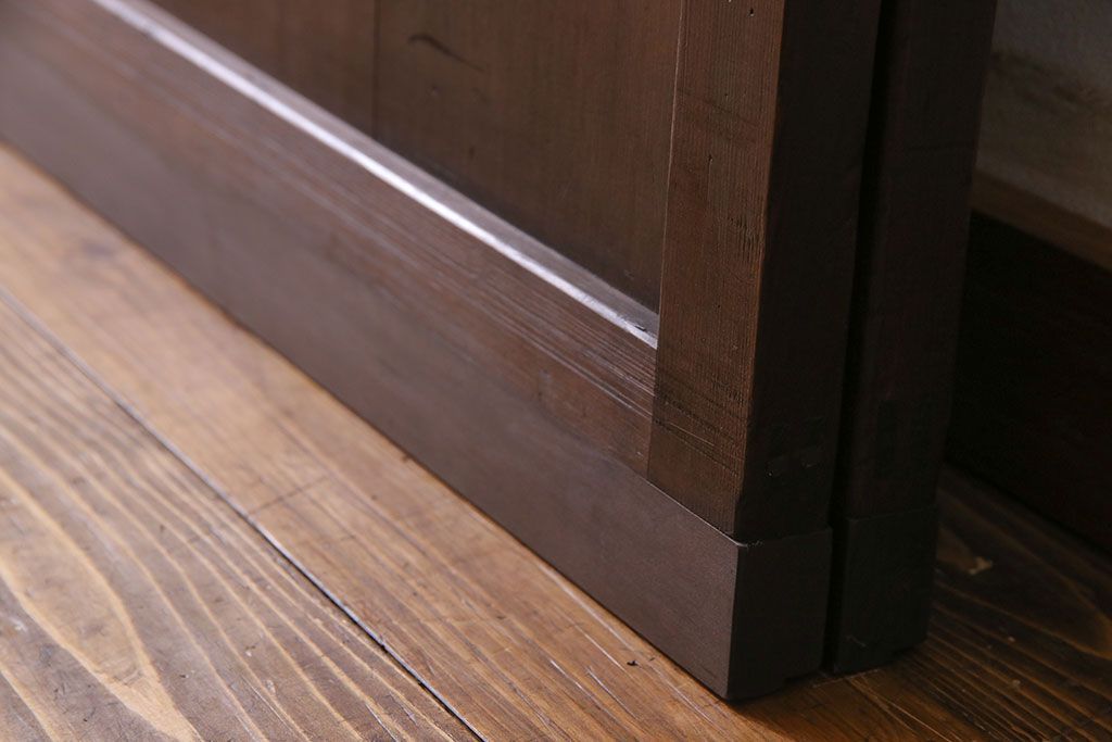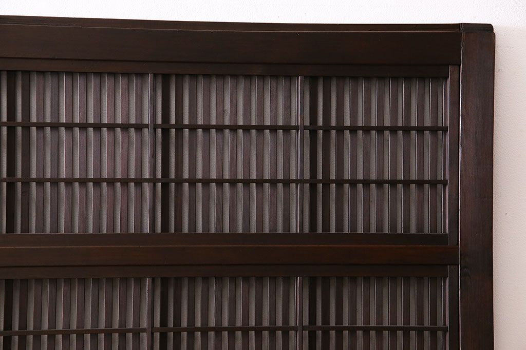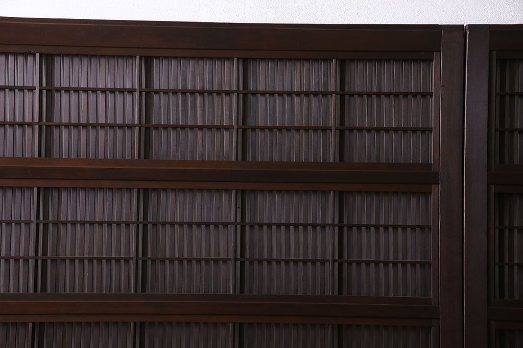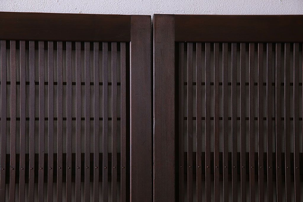 和製アンティーク 裏障子付き モダンな雰囲気漂うガラス帯格子戸(引き戸、建具)2枚セットです。