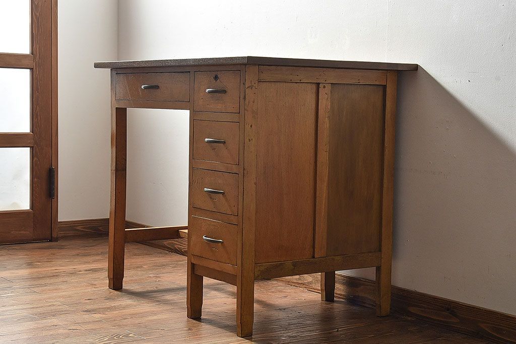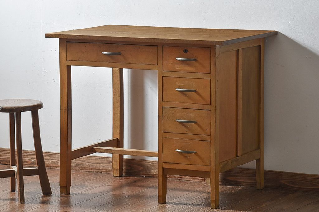レトロ家具 昭和レトロ シンプルなビンテージデスク(片袖机、在宅ワーク、在宅用ワークデスク、作業台)