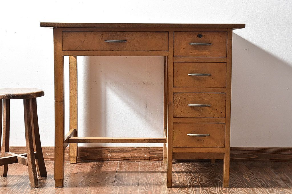 ラフジュ工房> デスク> 片袖机・両袖机 > レトロ家具 昭和レトロ シンプルなビンテージデスク(片袖机、在宅ワーク、在宅用ワークデスク、作業台)