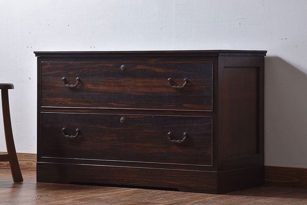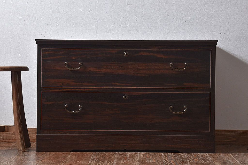 アンティーク家具 和製アンティーク 前面黒檀 落ち着いた雰囲気漂うタンスローボード(引き出し、テレビボード)