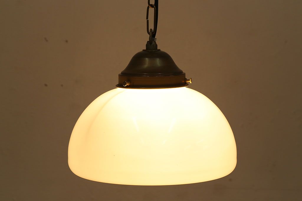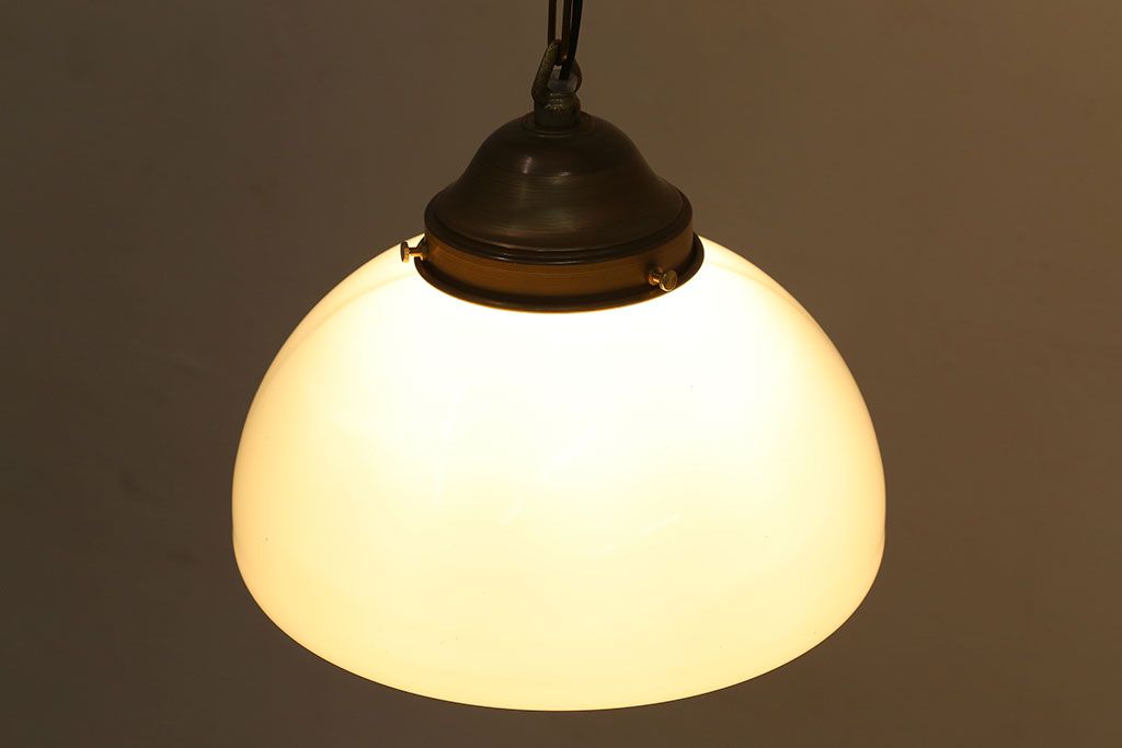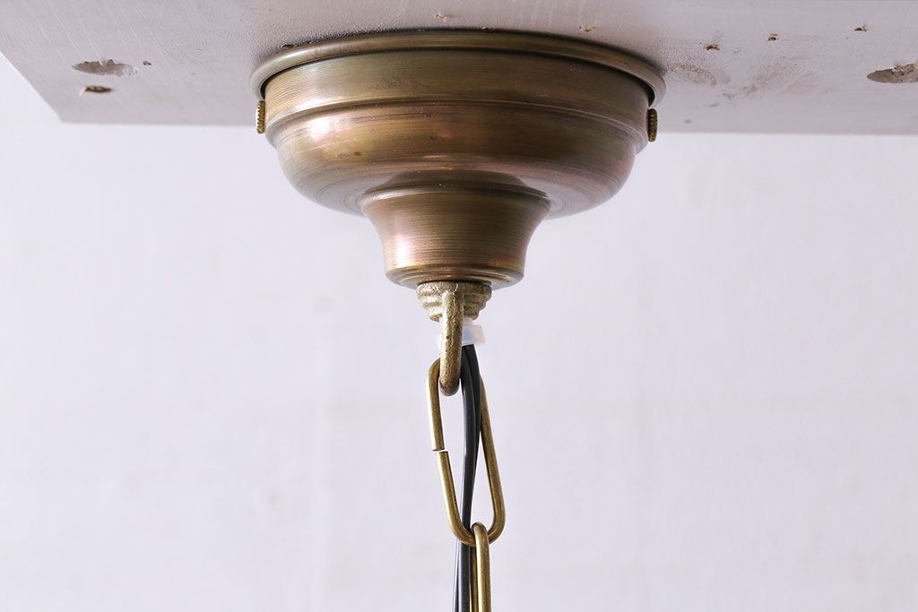 アンティーク 古い真鍮ブラケットの天井照明(吊り下げ照明、ペンダントライト)です。