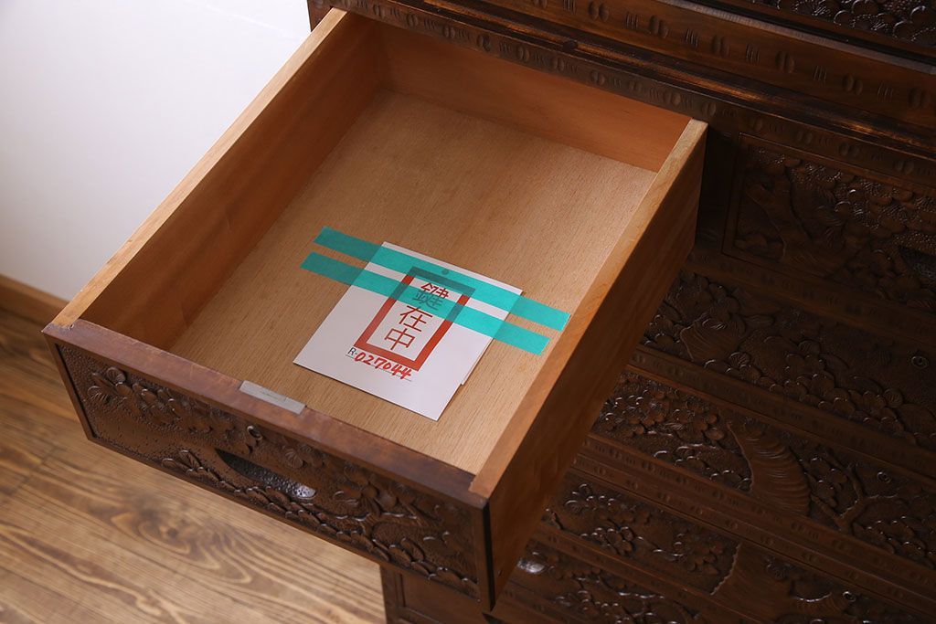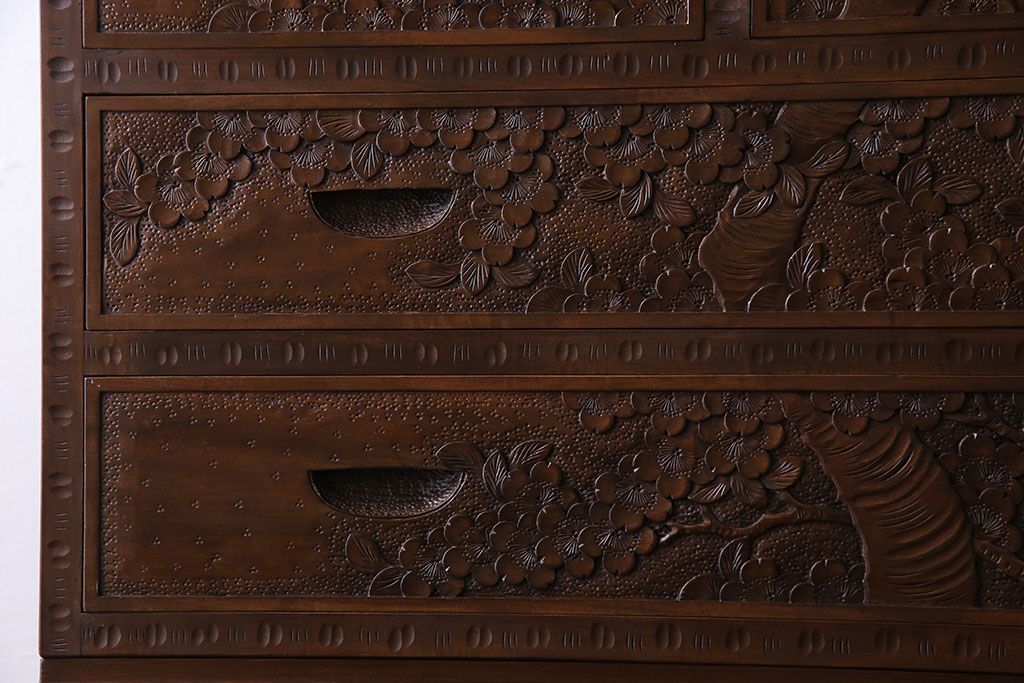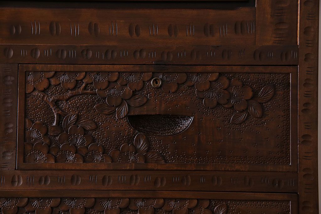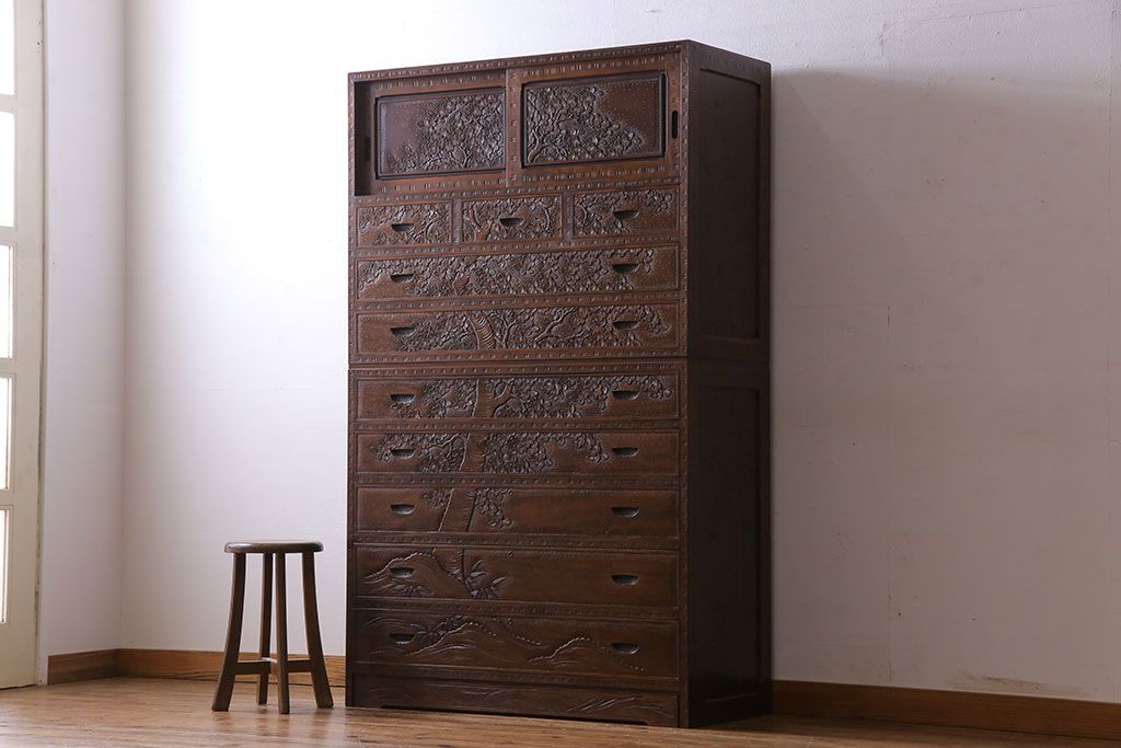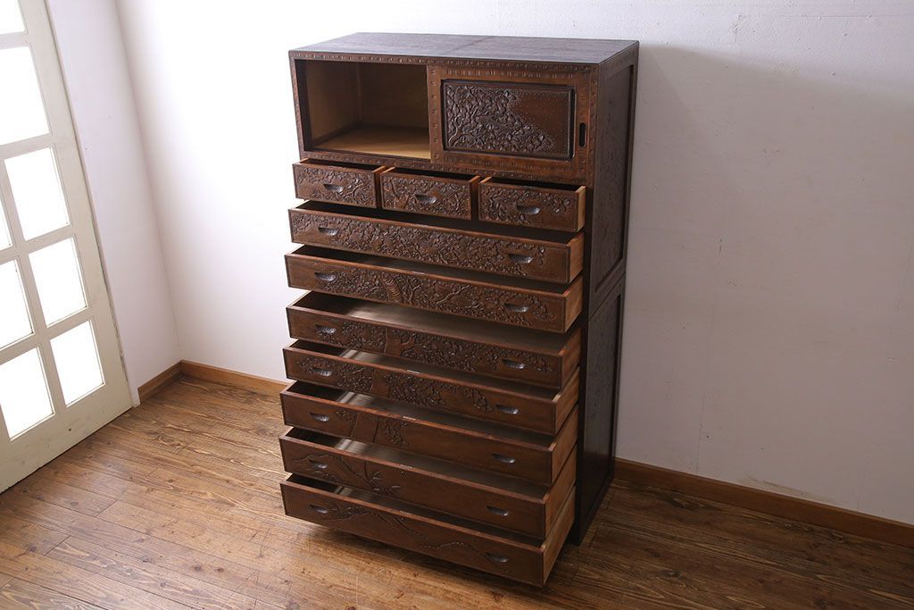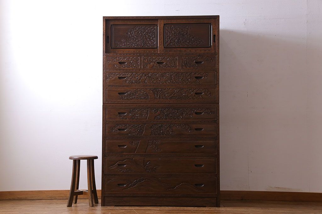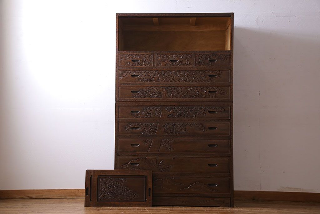 中古 伝統工芸 軽井沢彫り 高級感あふれる大振りな衣装箪笥(収納棚、洋服タンス)