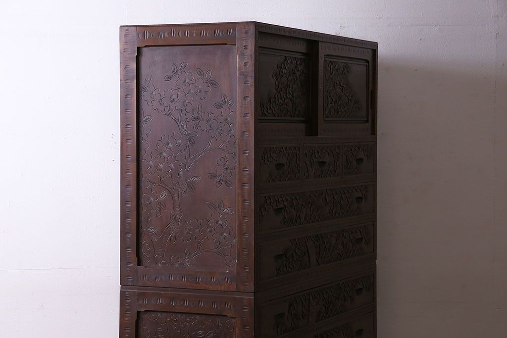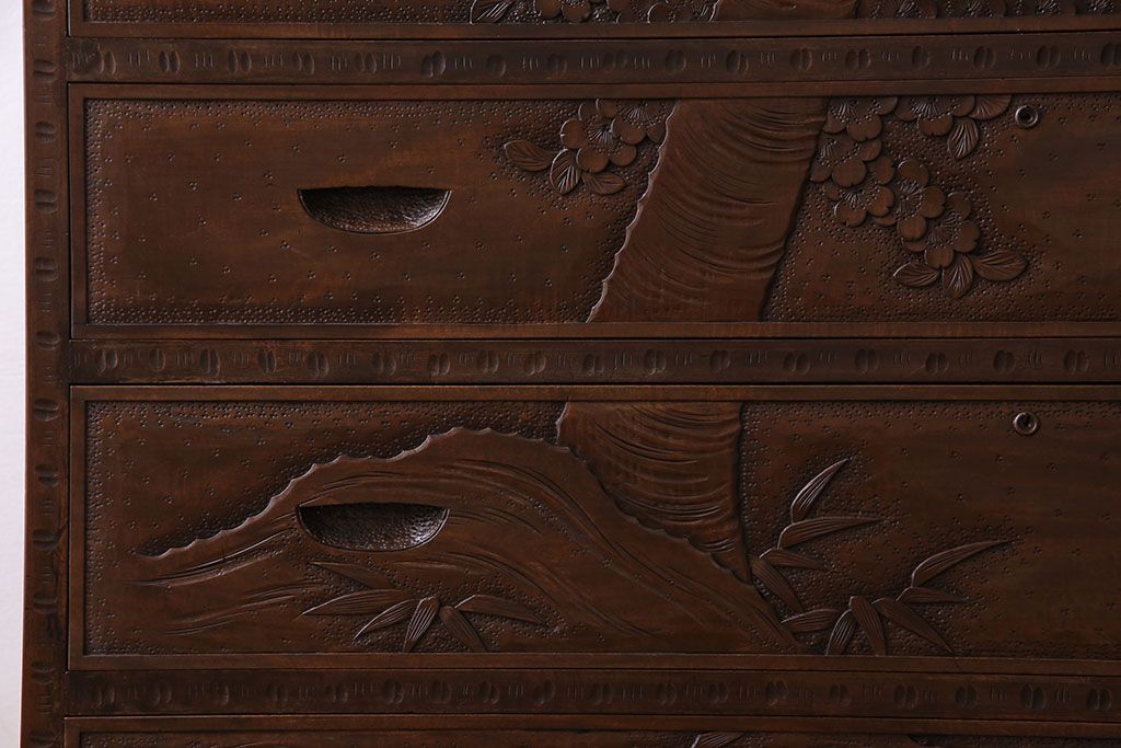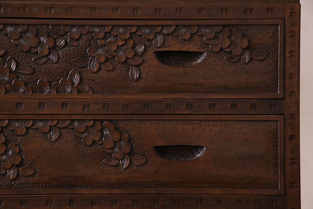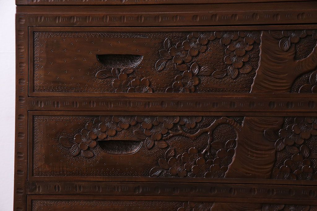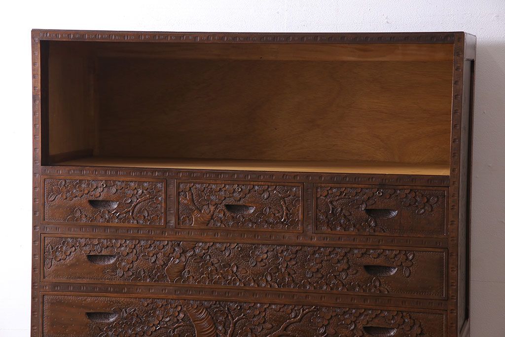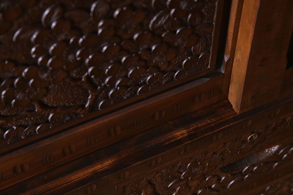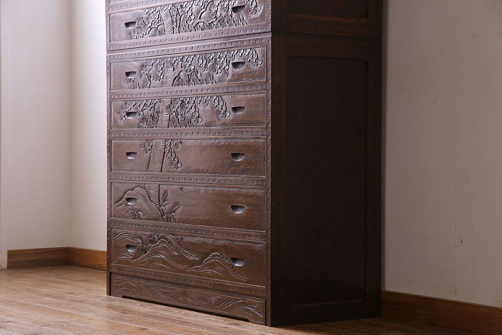中古 伝統工芸 軽井沢彫り 高級感あふれる大振りな衣装箪笥(収納棚、洋服タンス)